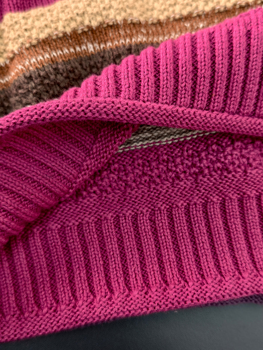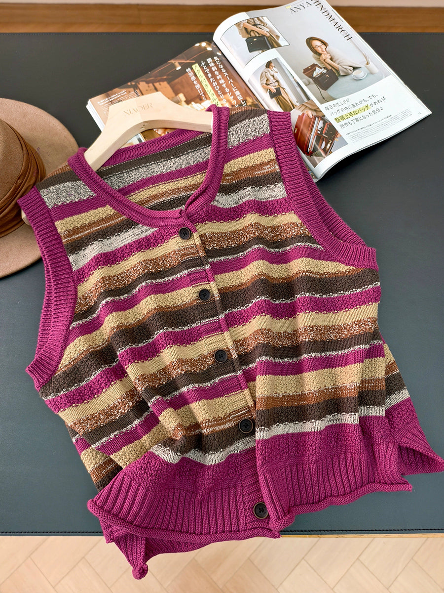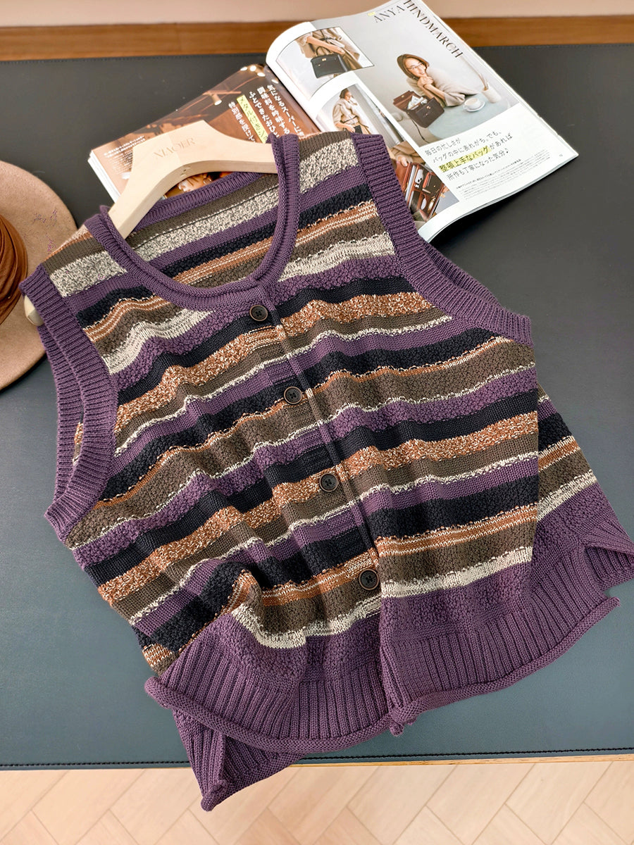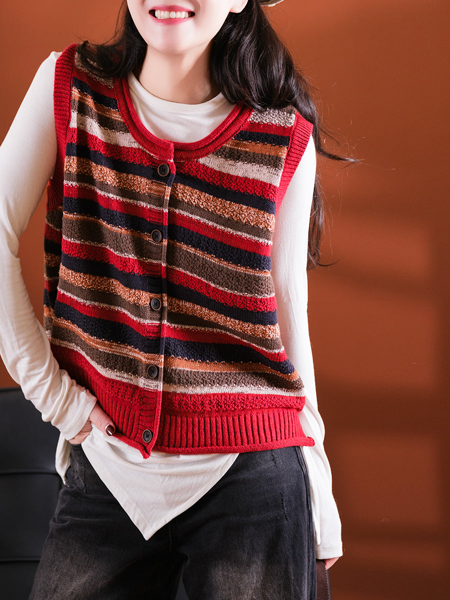 Colete feminino listrado artístico de gola redonda para o outono