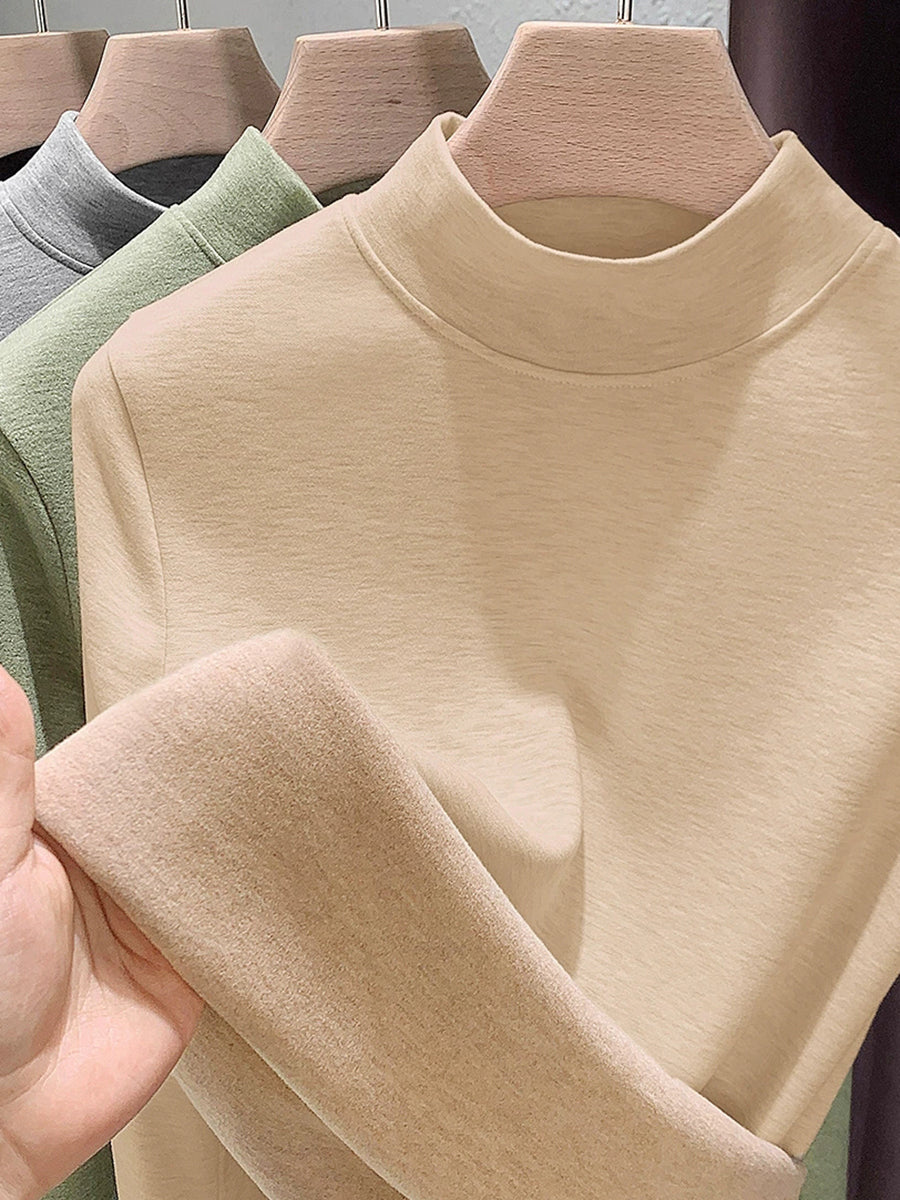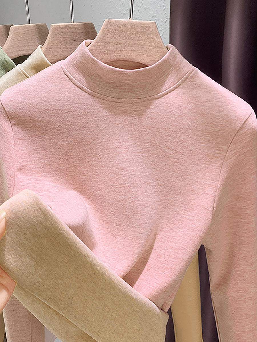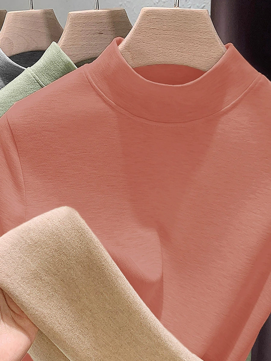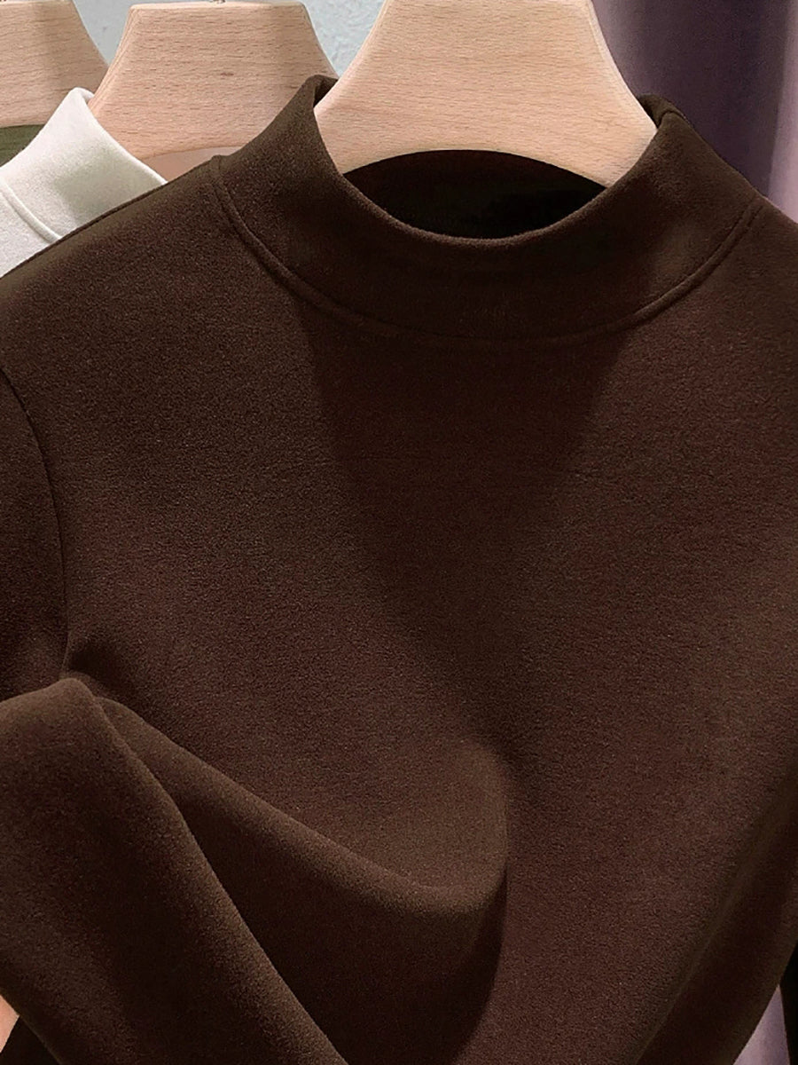Blusa feminina casual de outono em cor lisa com gola alta.