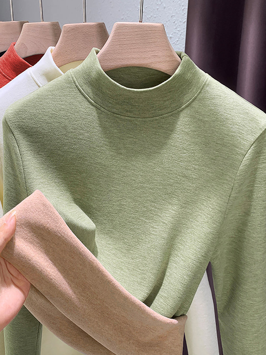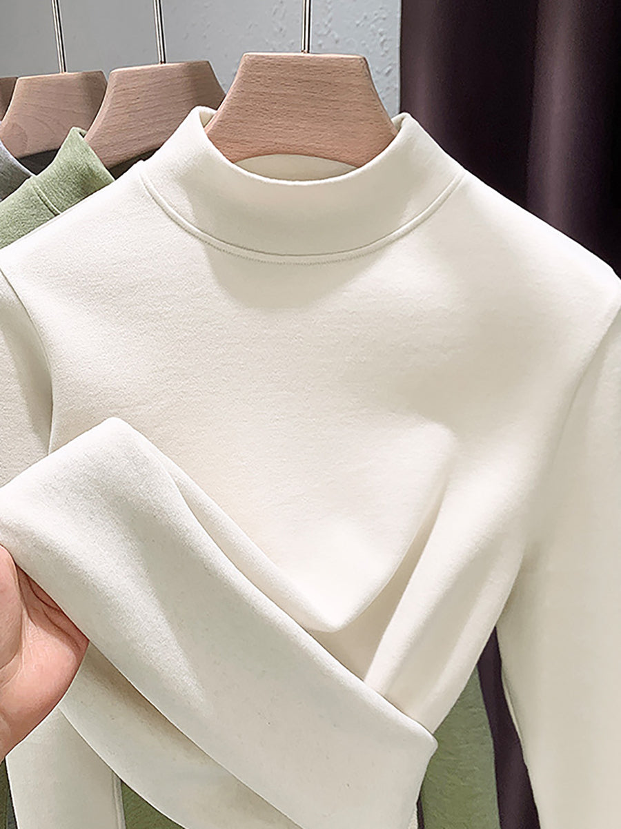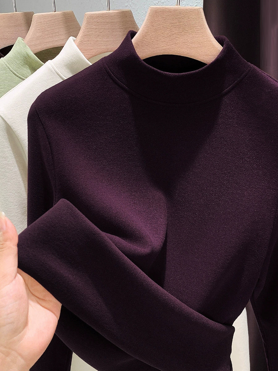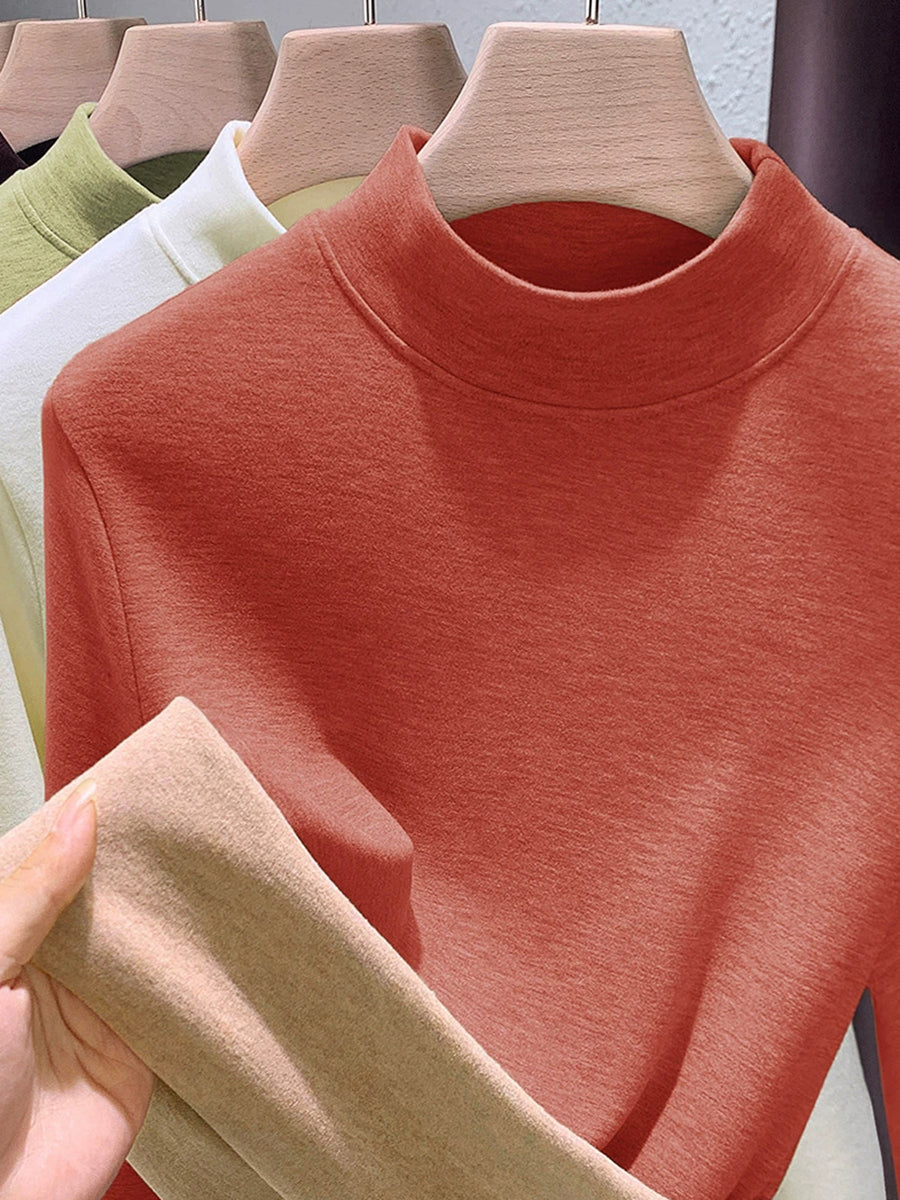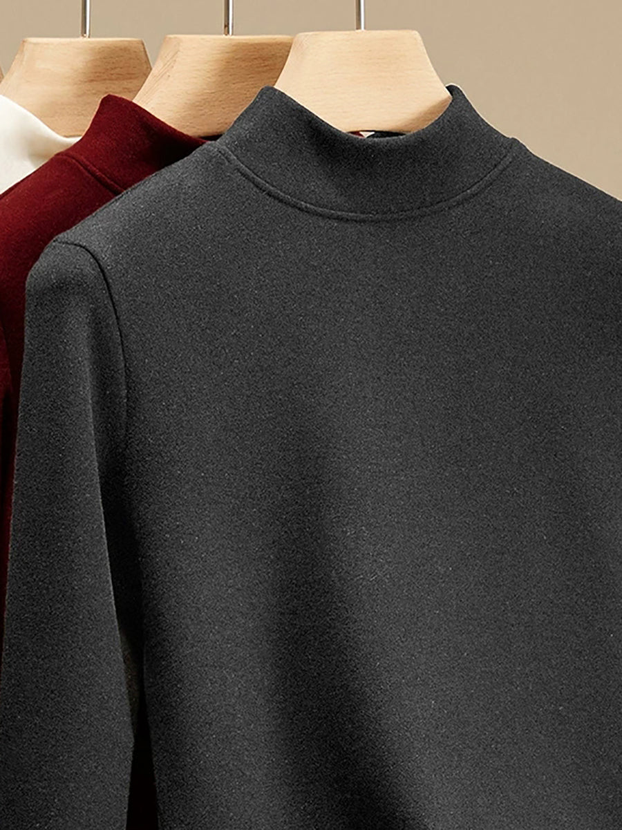 Blusa feminina casual de outono em cor lisa com gola alta.