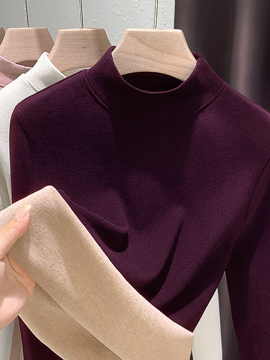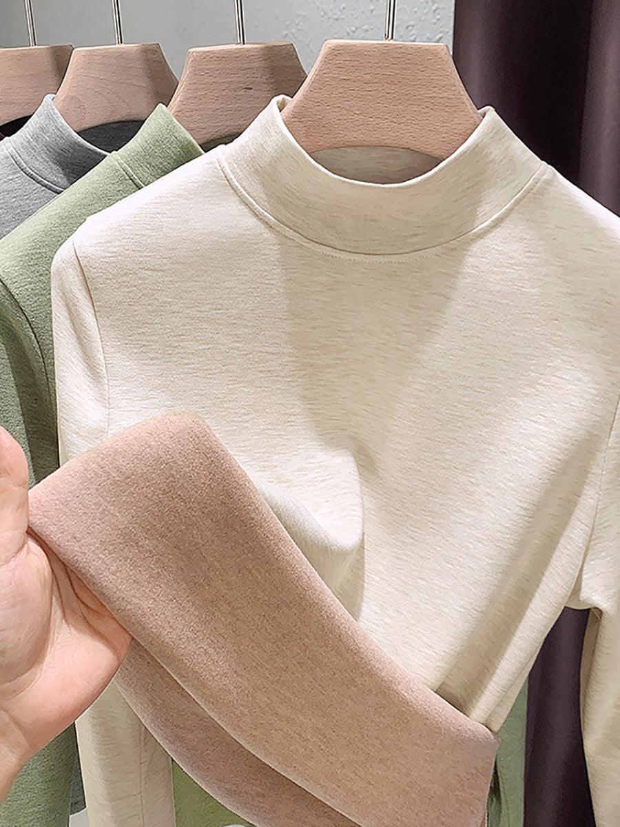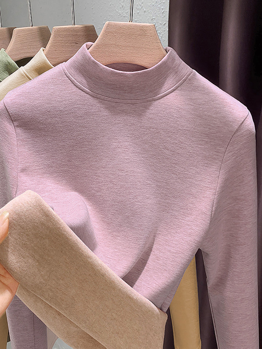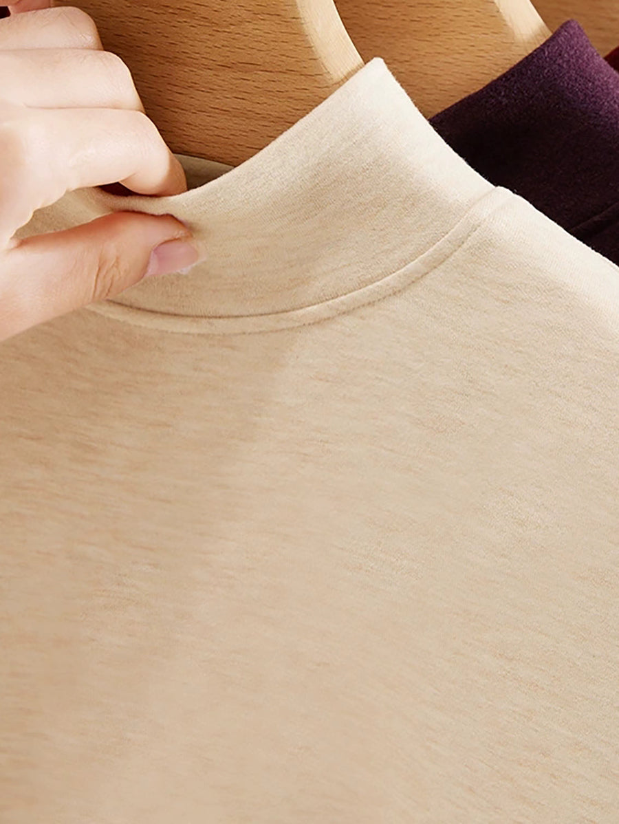 Blusa feminina casual de outono em cor lisa com gola alta.