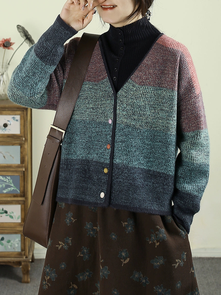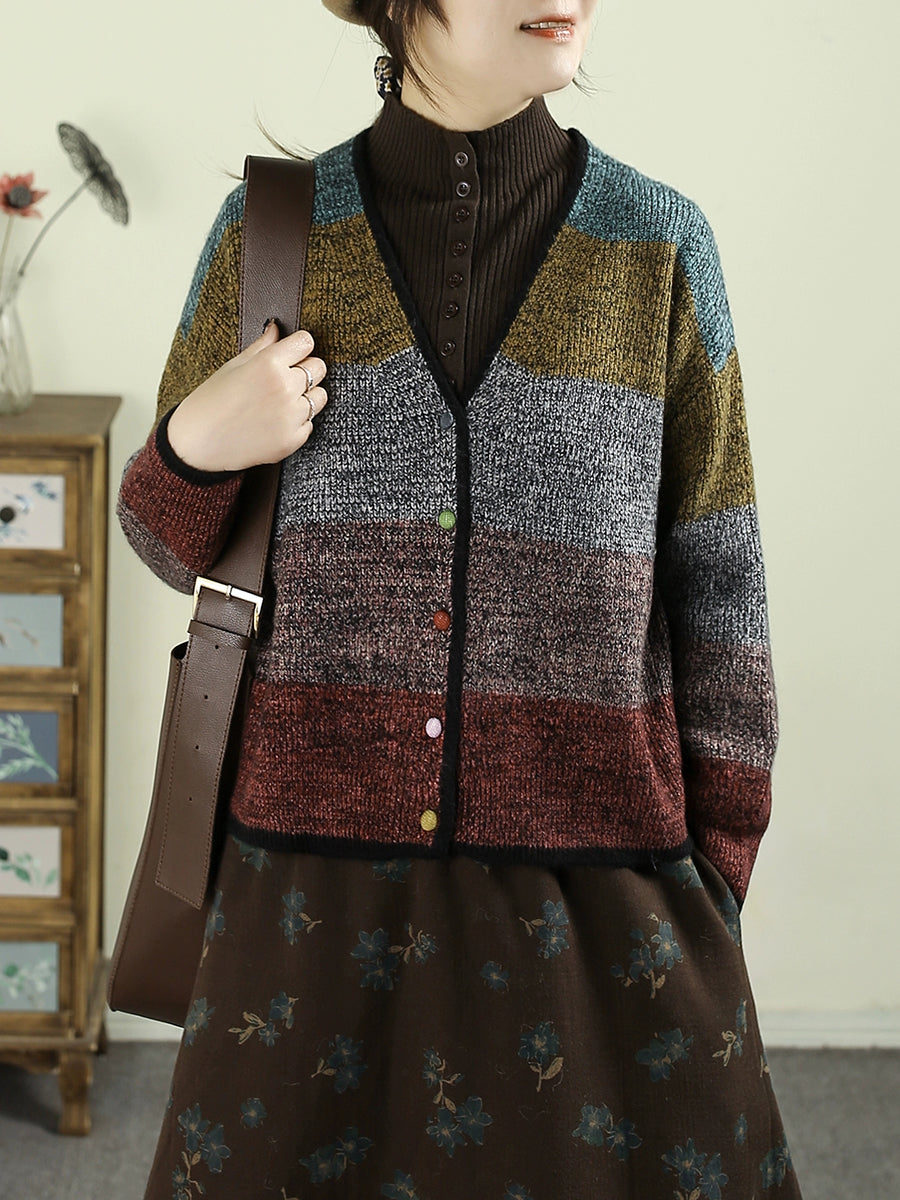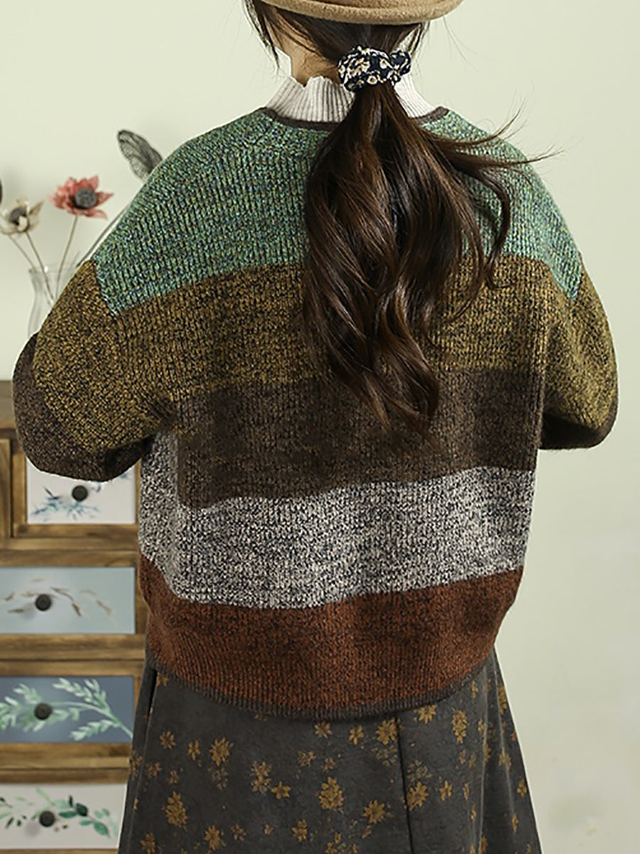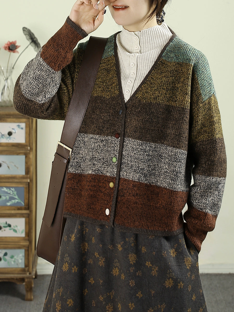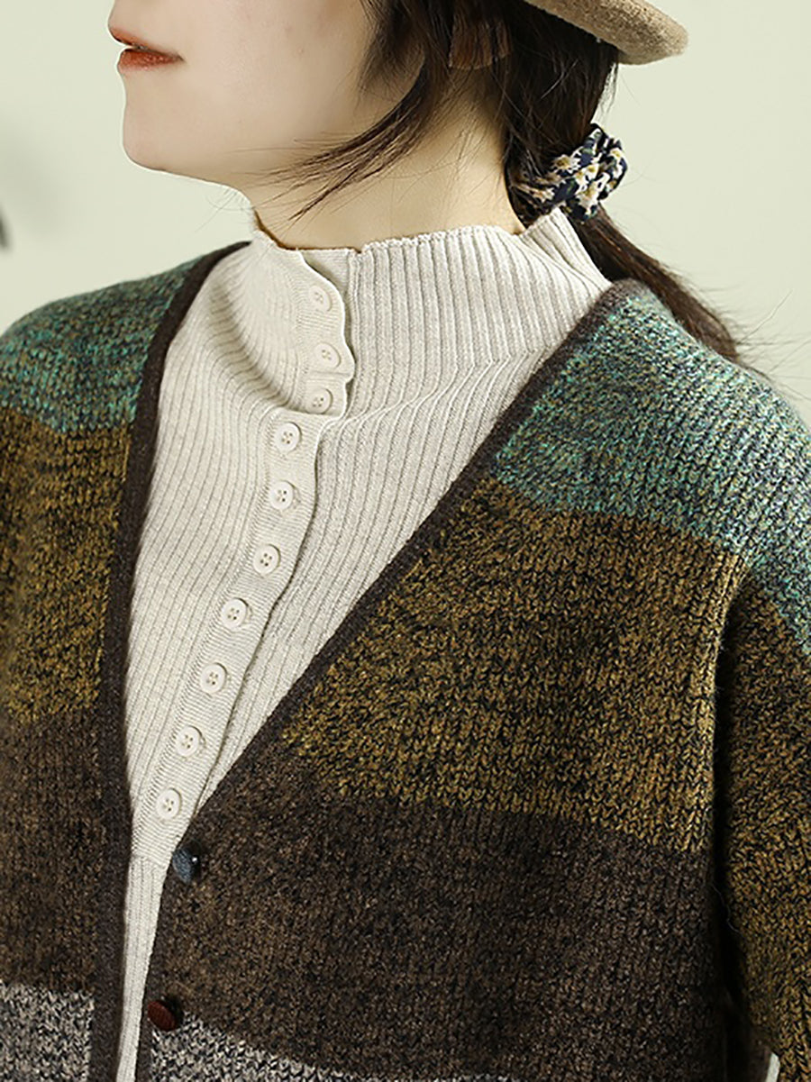 Suéter feminino de tricô com decote em V e blocos de cores para o outono
