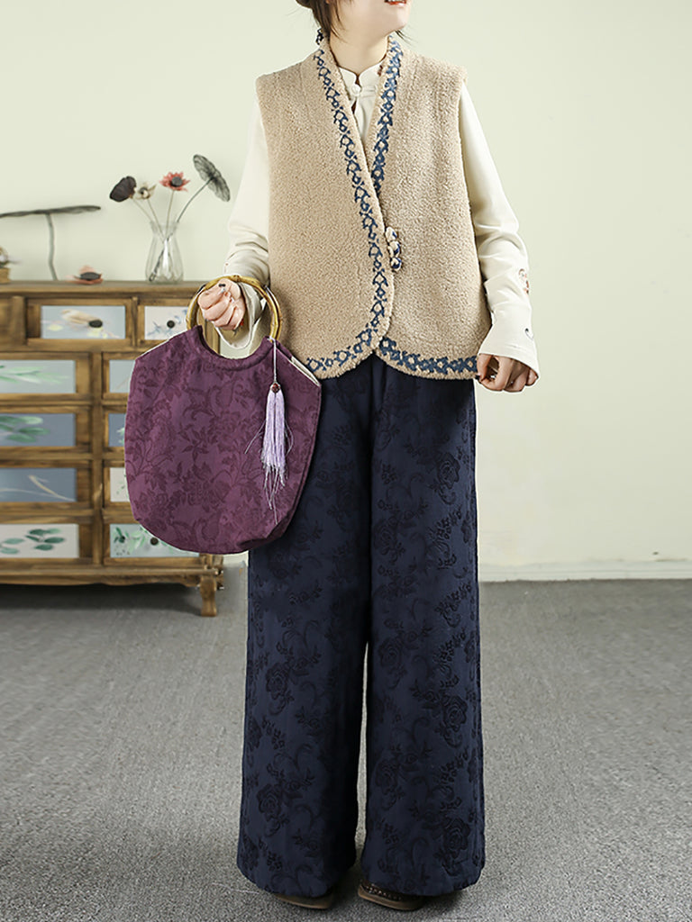 Este colete de malha versátil combina a estética retrô atemporal com um design contemporâneo. Com uma gola floral diferenciada e uma cor sólida e elegante, ele oferece uma sobreposição sofisticada para as estações de transição. A construção irregular com recortes no decote em V adiciona interesse visual e um toque moderno, enquanto o tecido de malha estruturado garante durabilidade. Ideal para guarda-roupas de outono e inverno, esta peça transita facilmente entre diferentes estações.