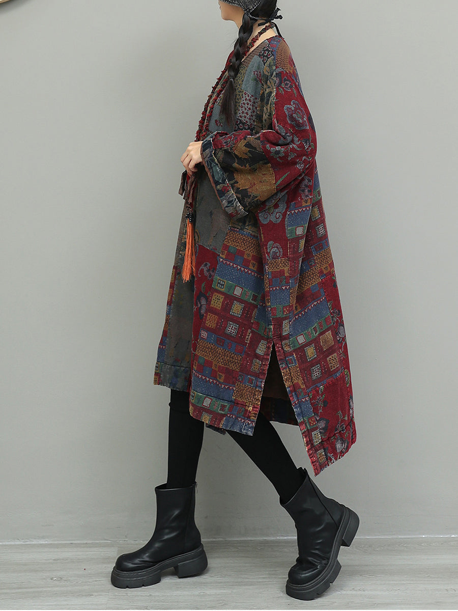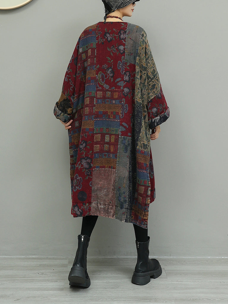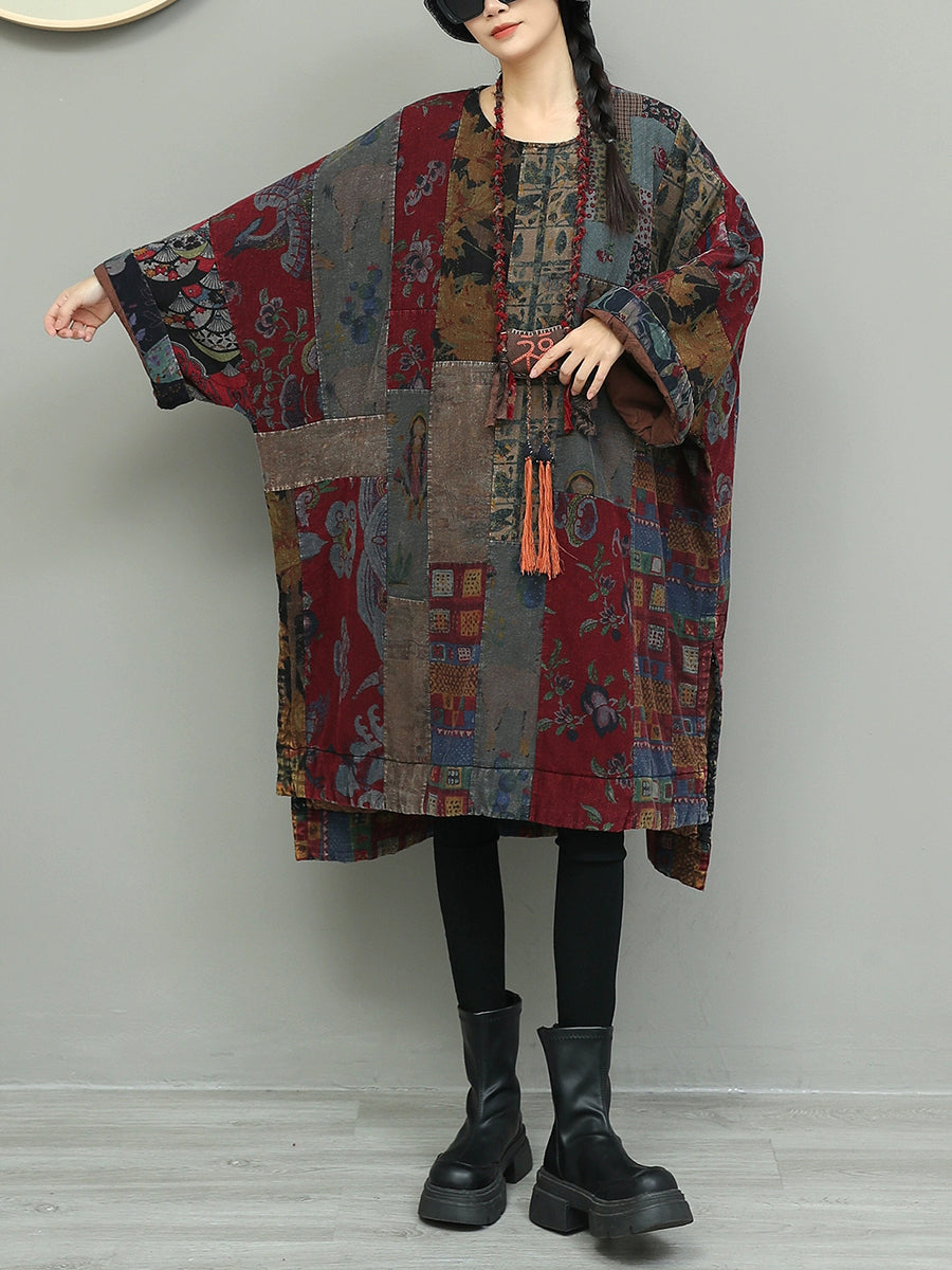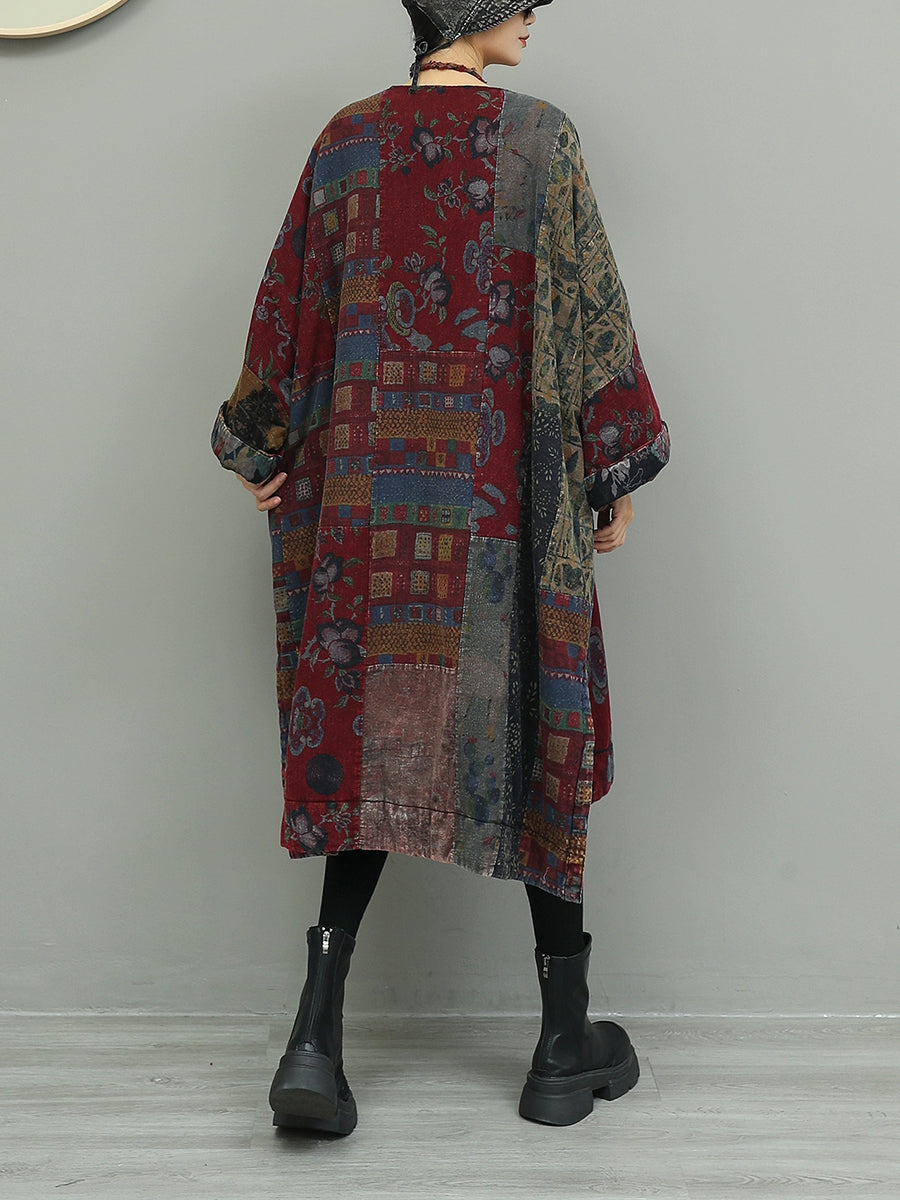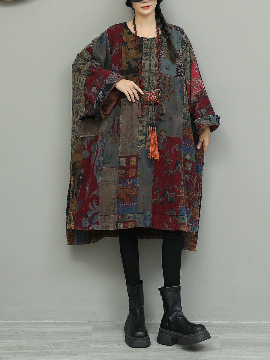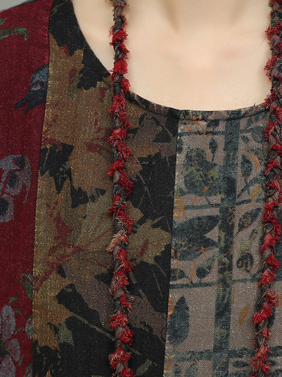 Vestido feminino de algodão com estampa floral outonal