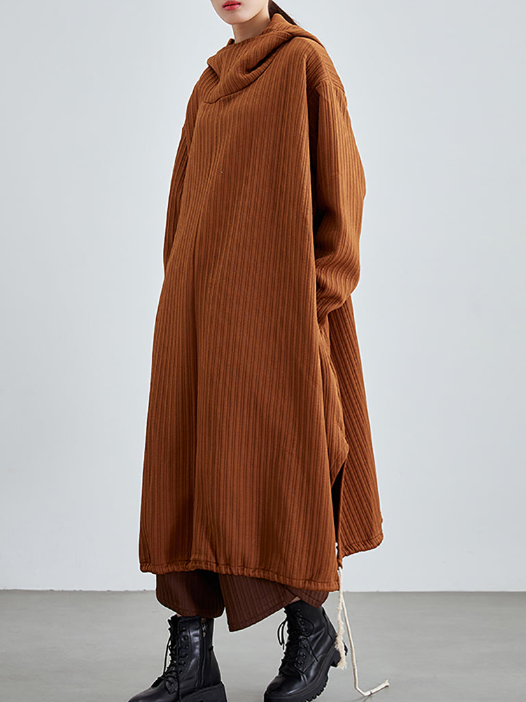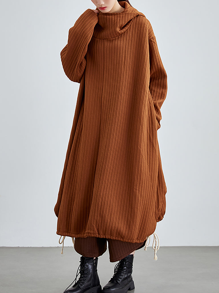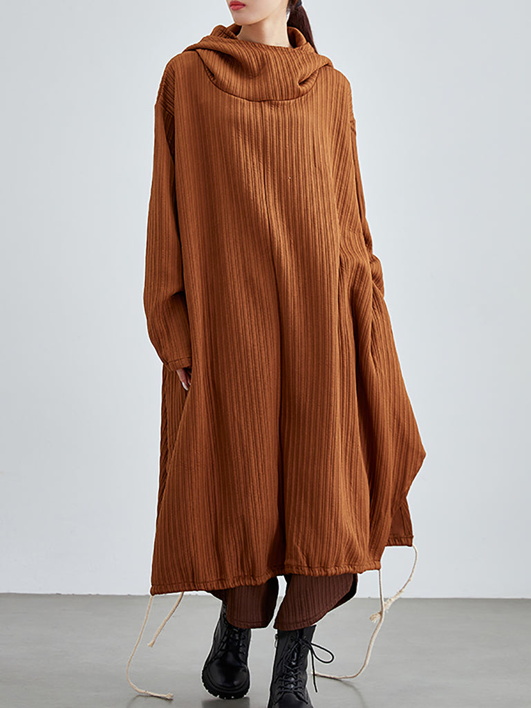 Vestido feminino de algodão com capuz, cor lisa, para o outono.