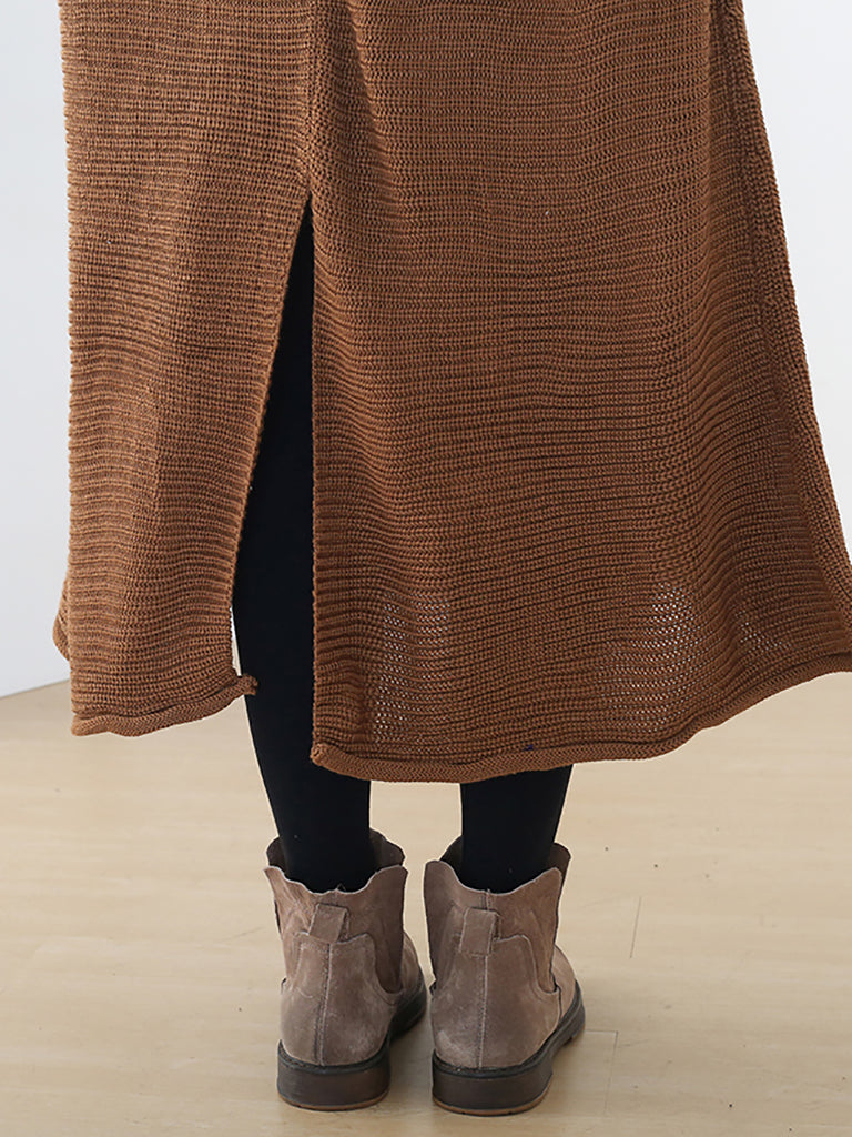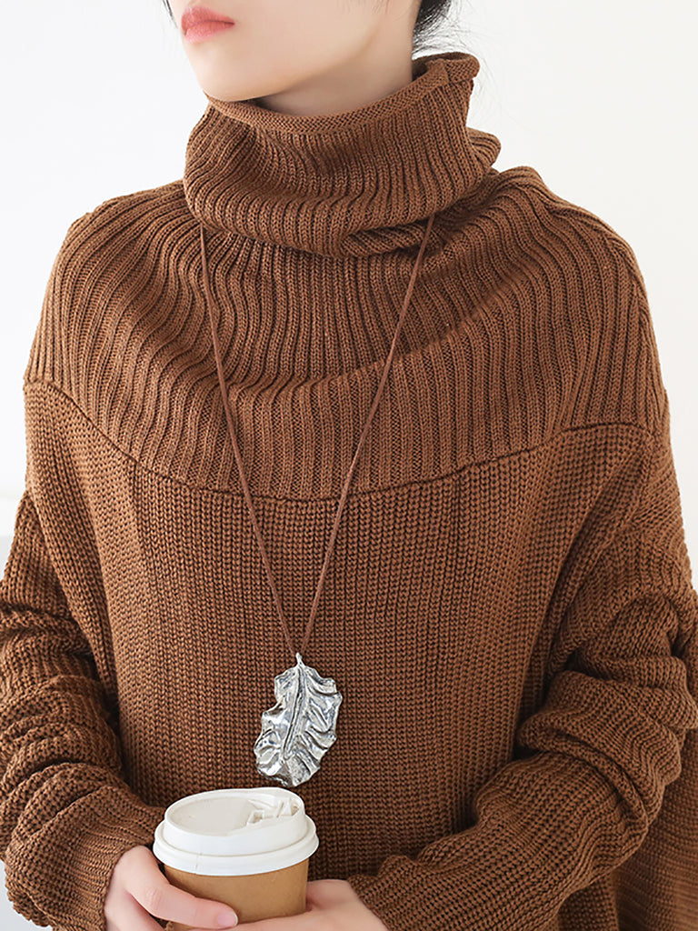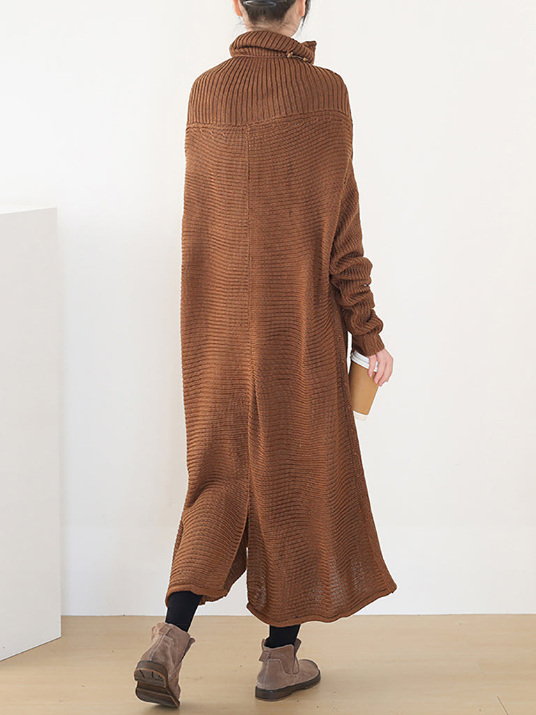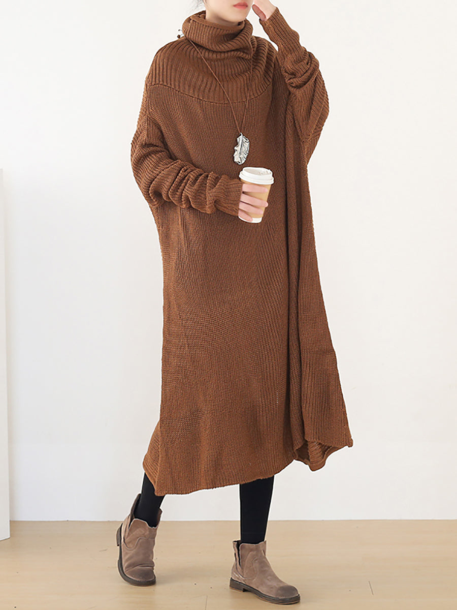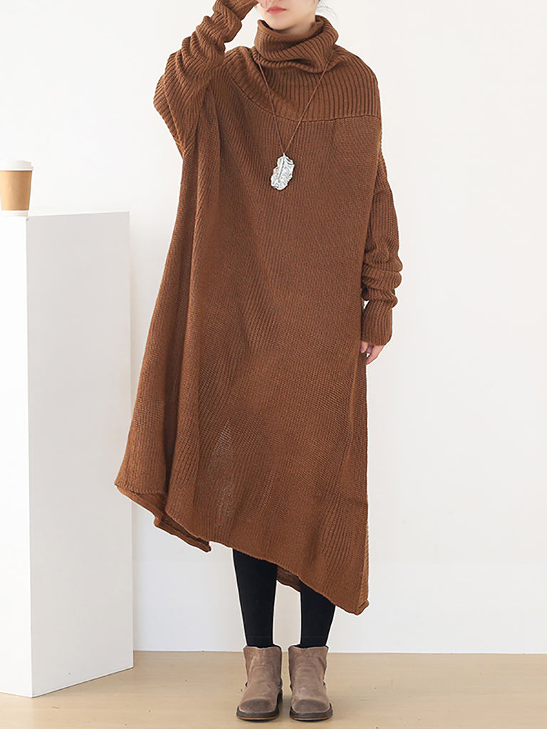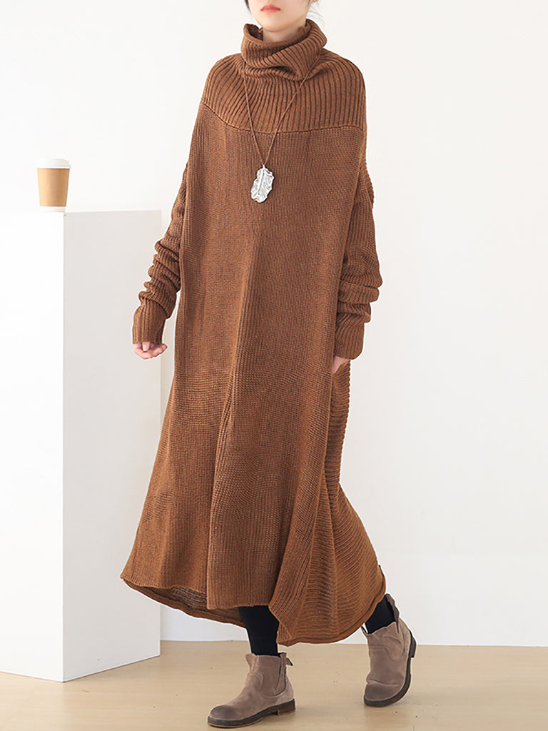 Vestido feminino de gola alta em malha de algodão, cor lisa, estilo outono.