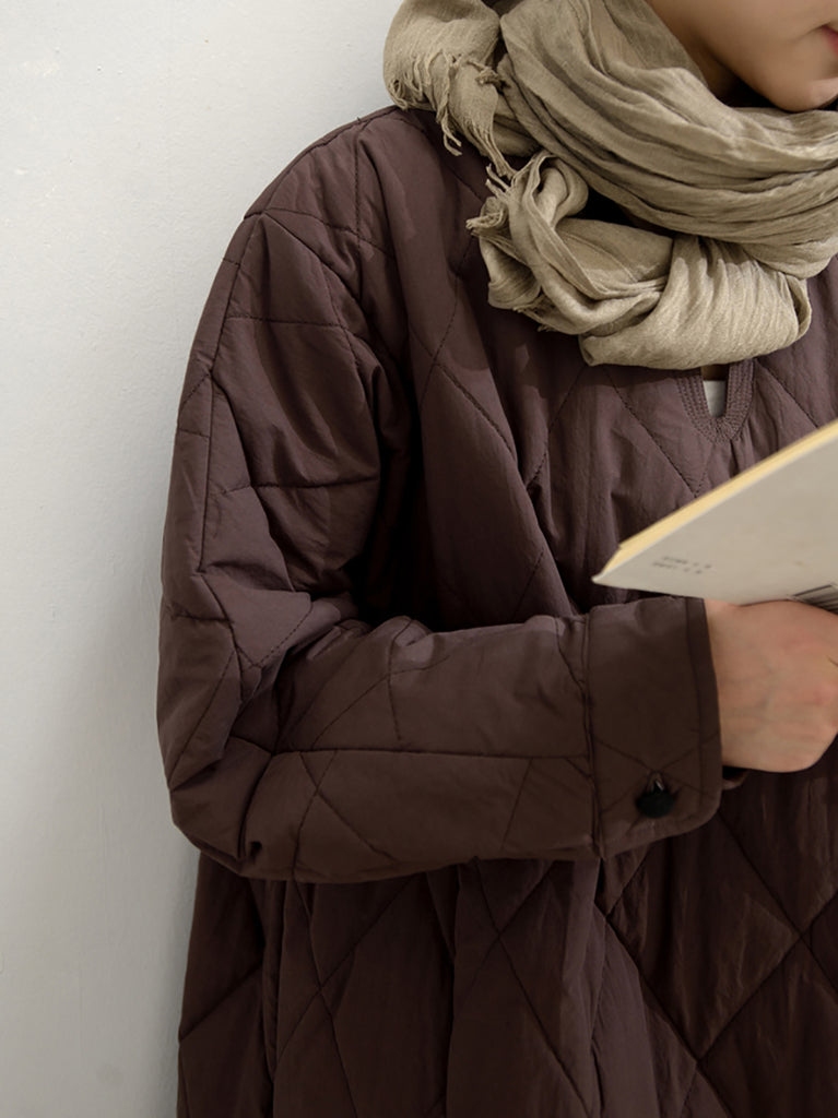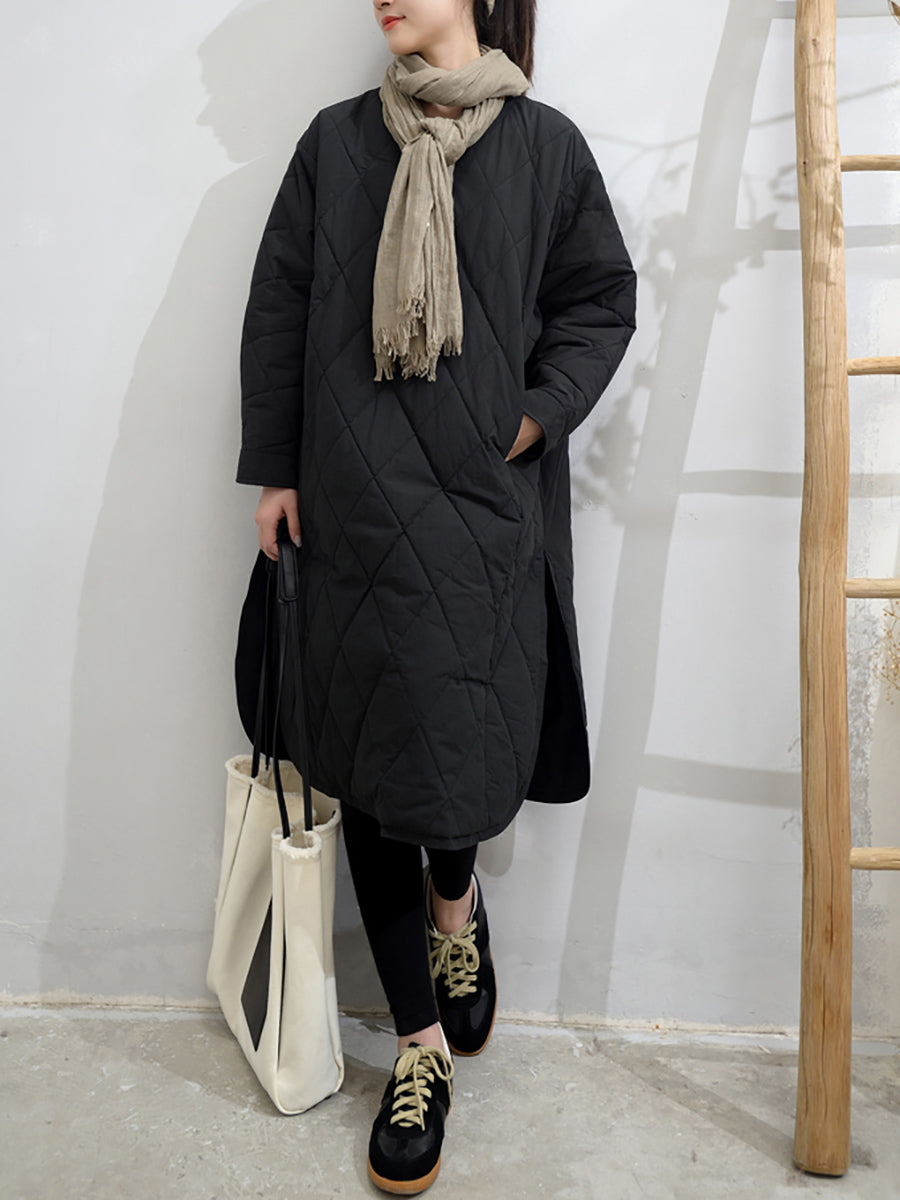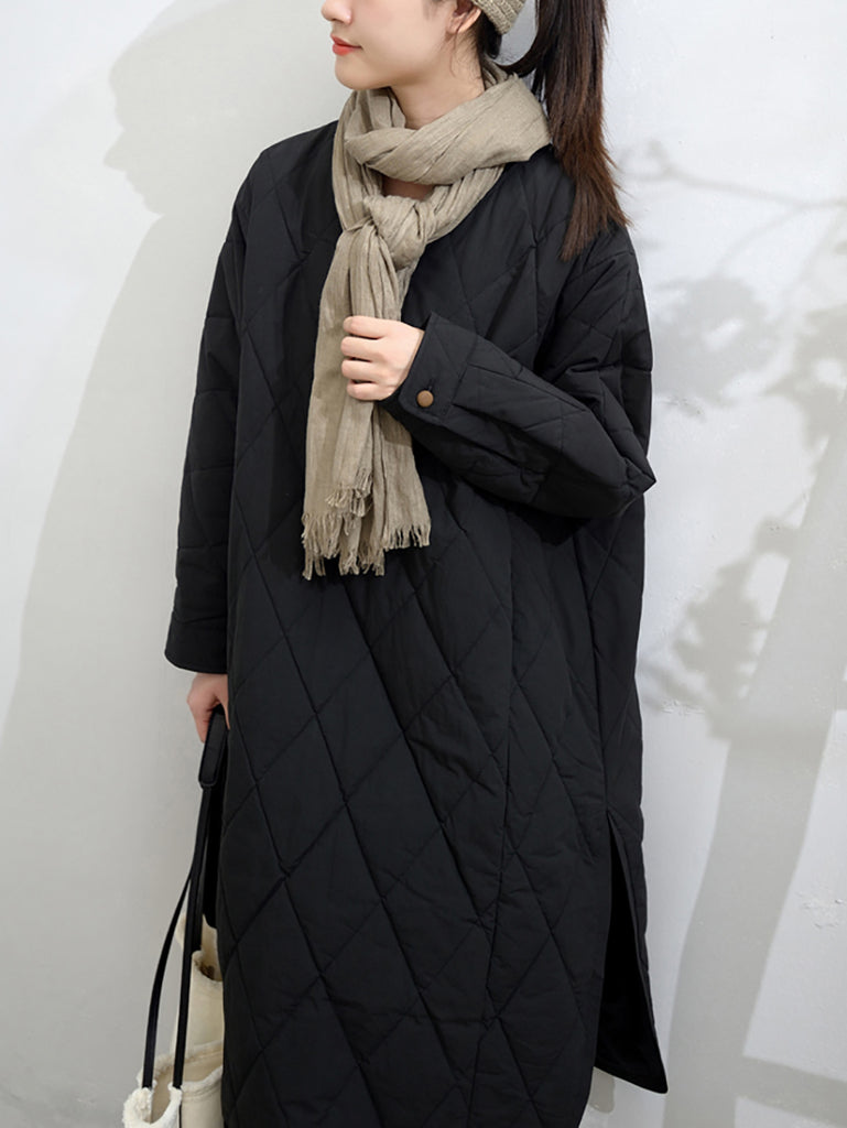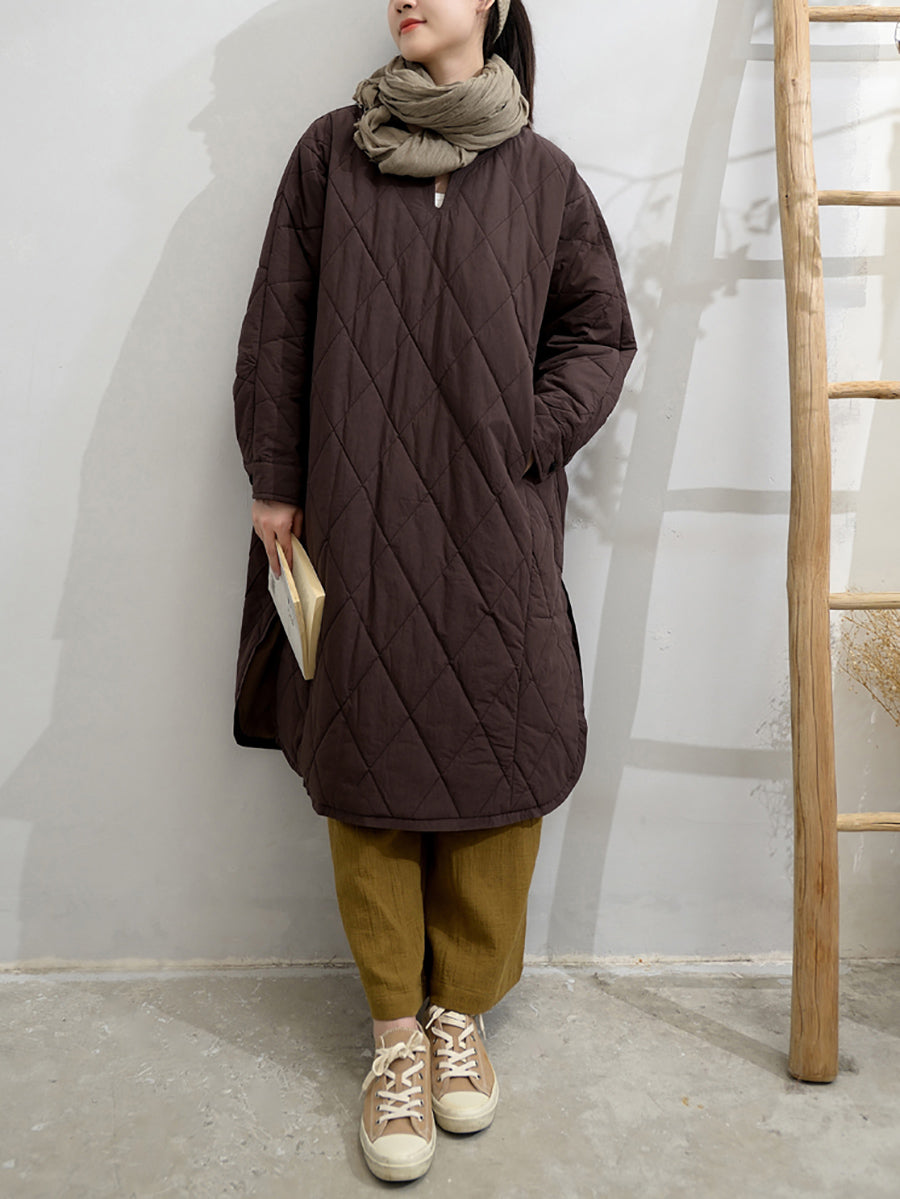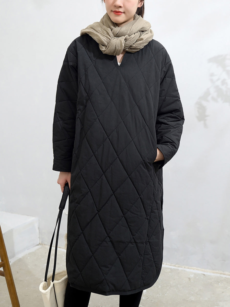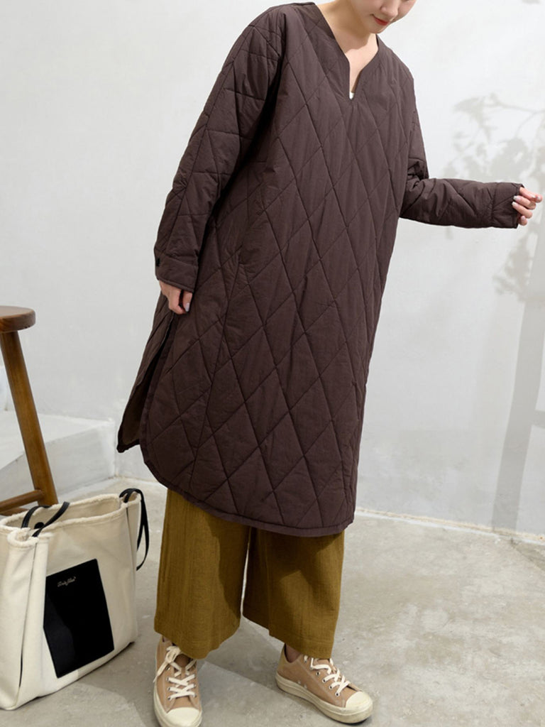 Vestido feminino de outono em cor lisa com decote em V e bojo.