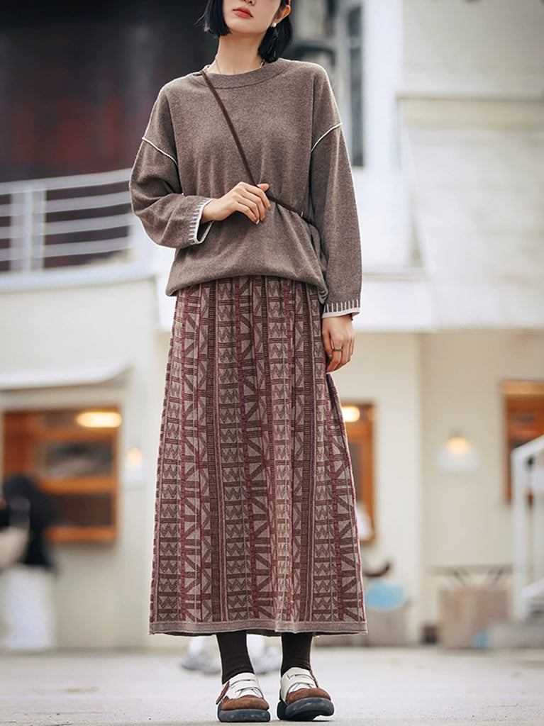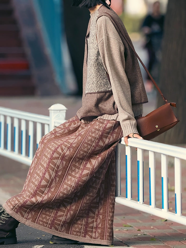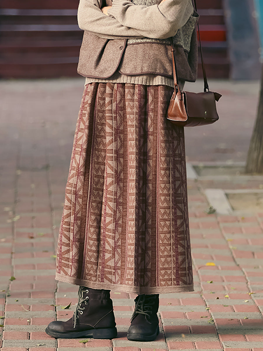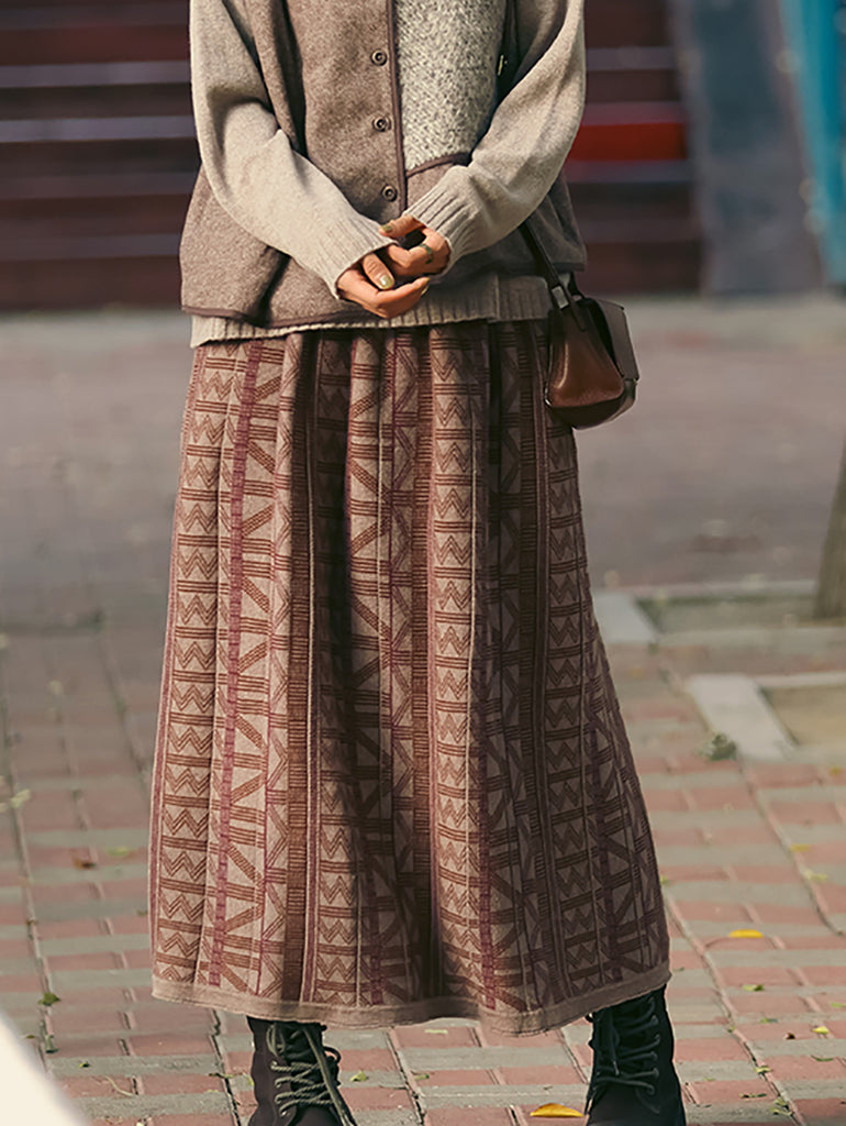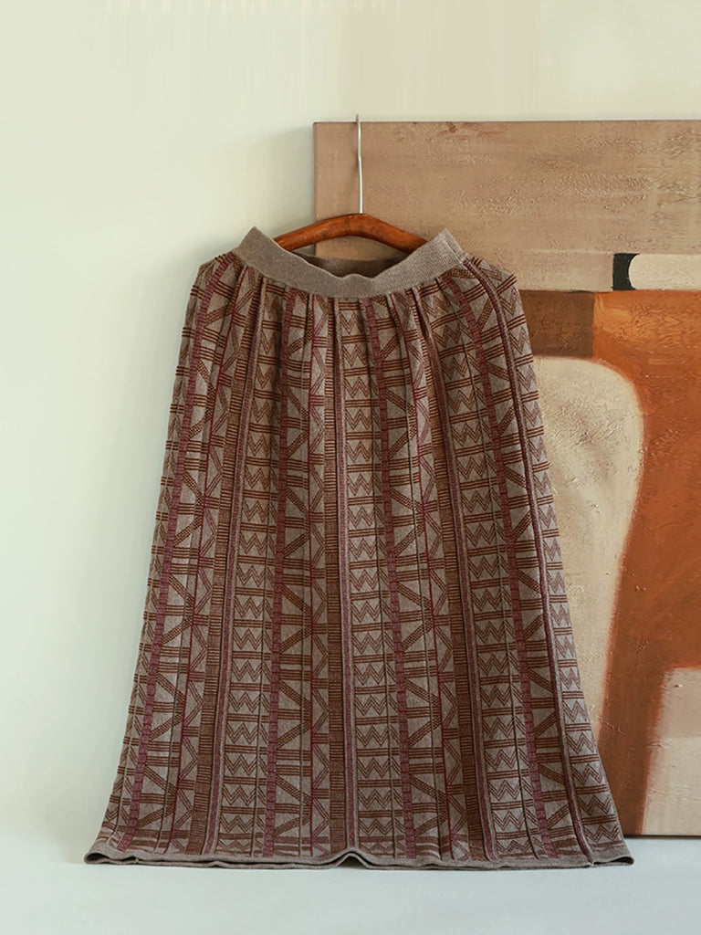 Saia feminina de algodão jacquard retrô em formato A para o outono