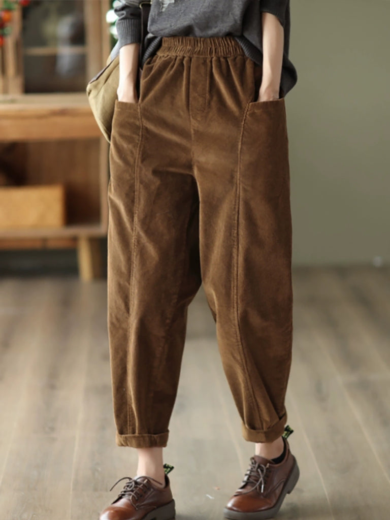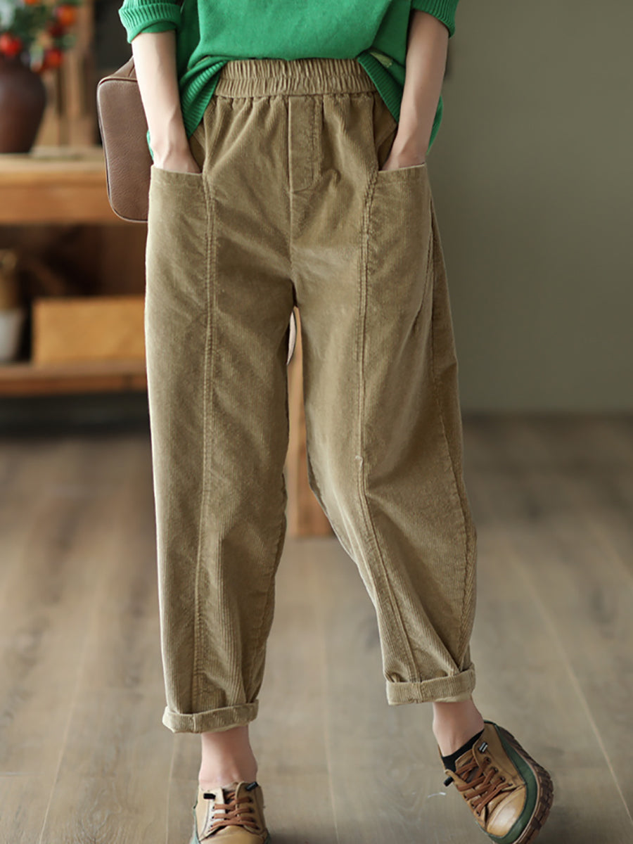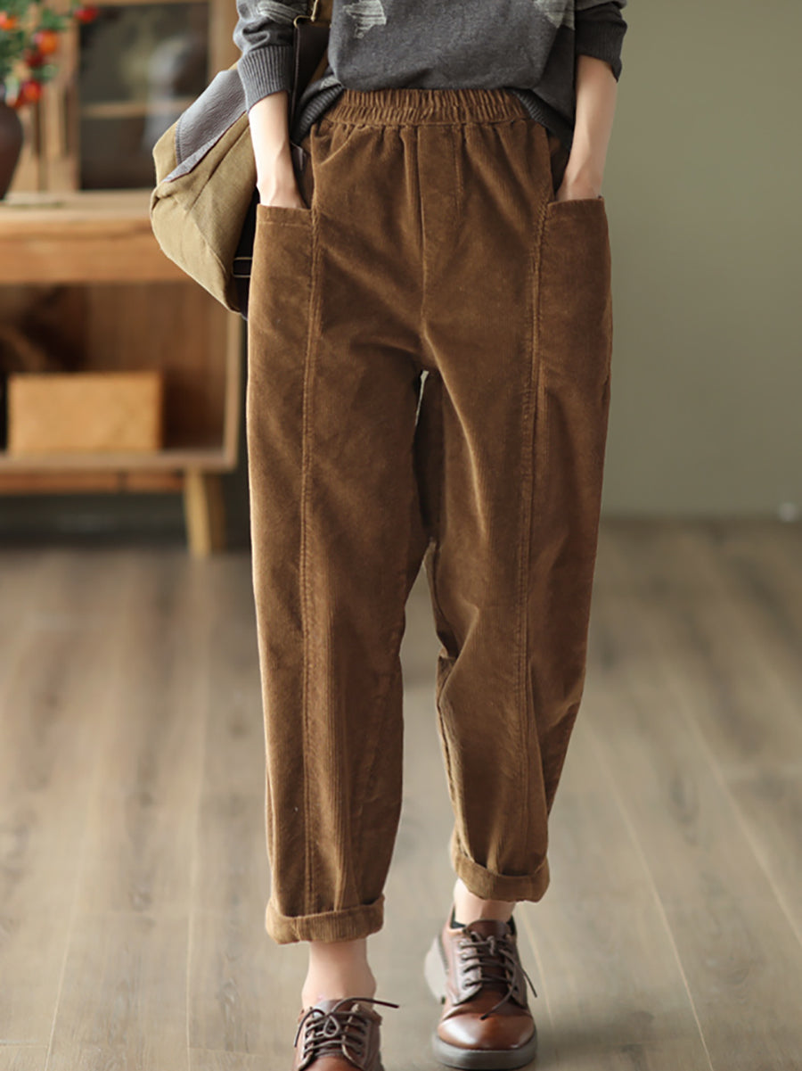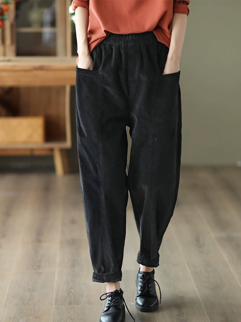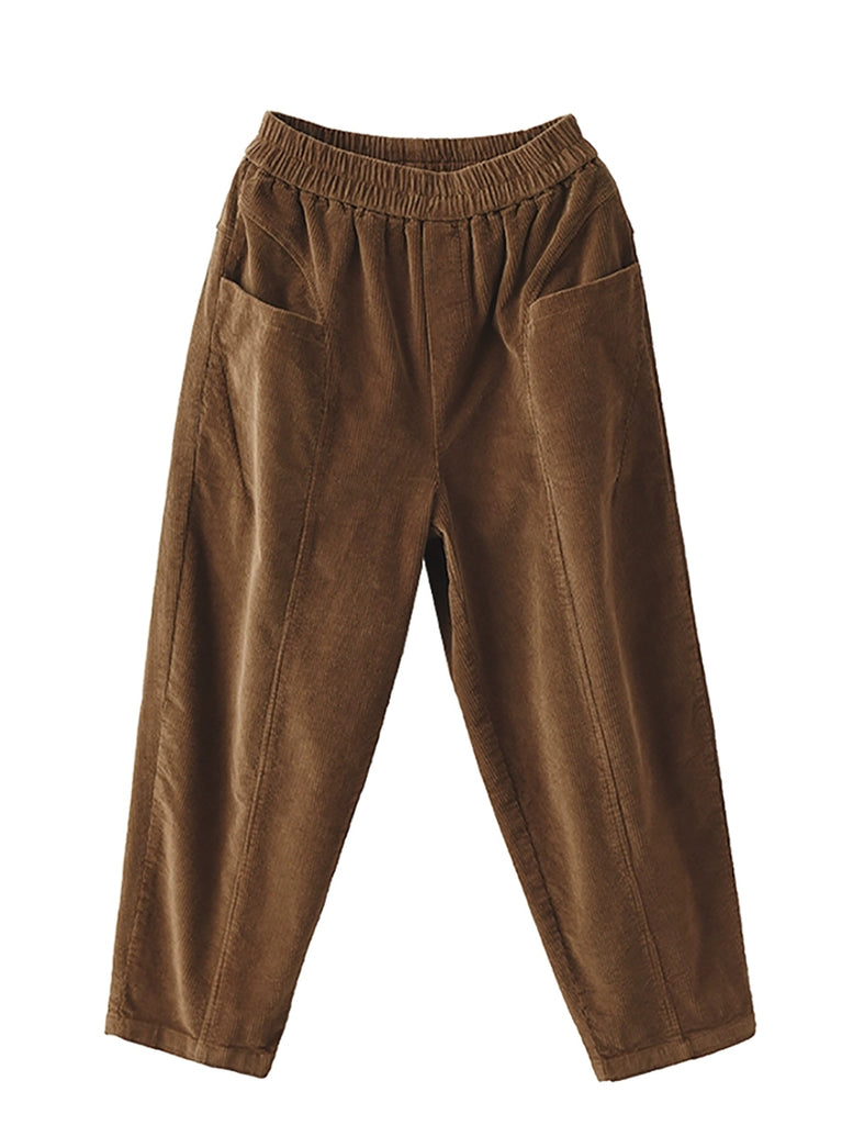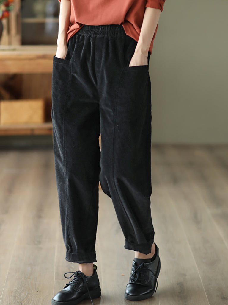 Calça Harem Feminina de Veludo Cotelê Retrô em Cores Lisas para Outono