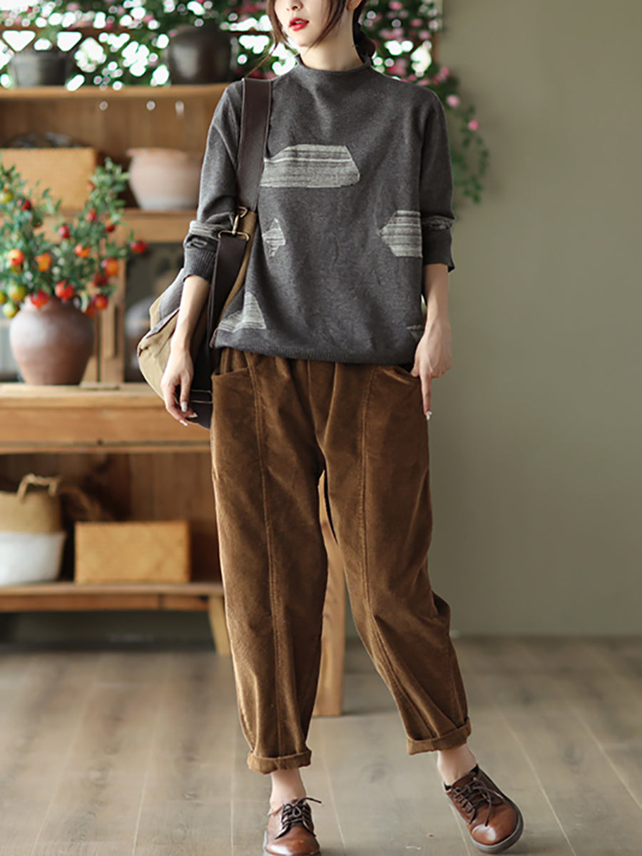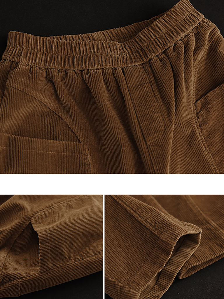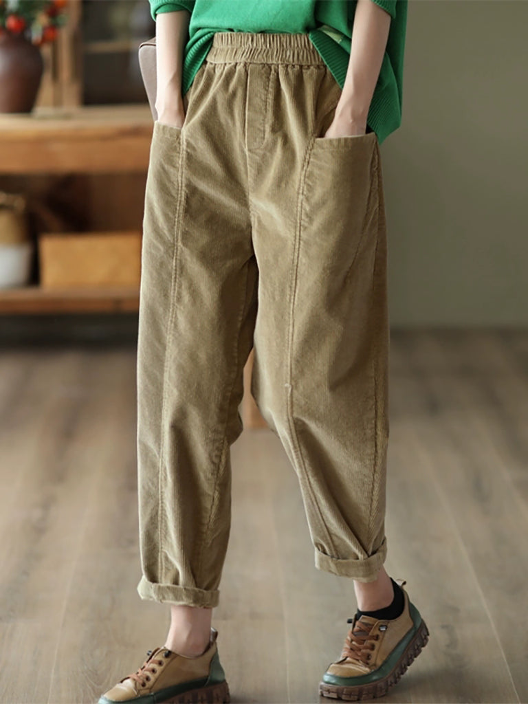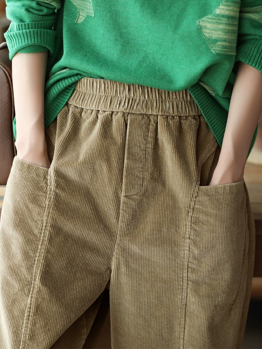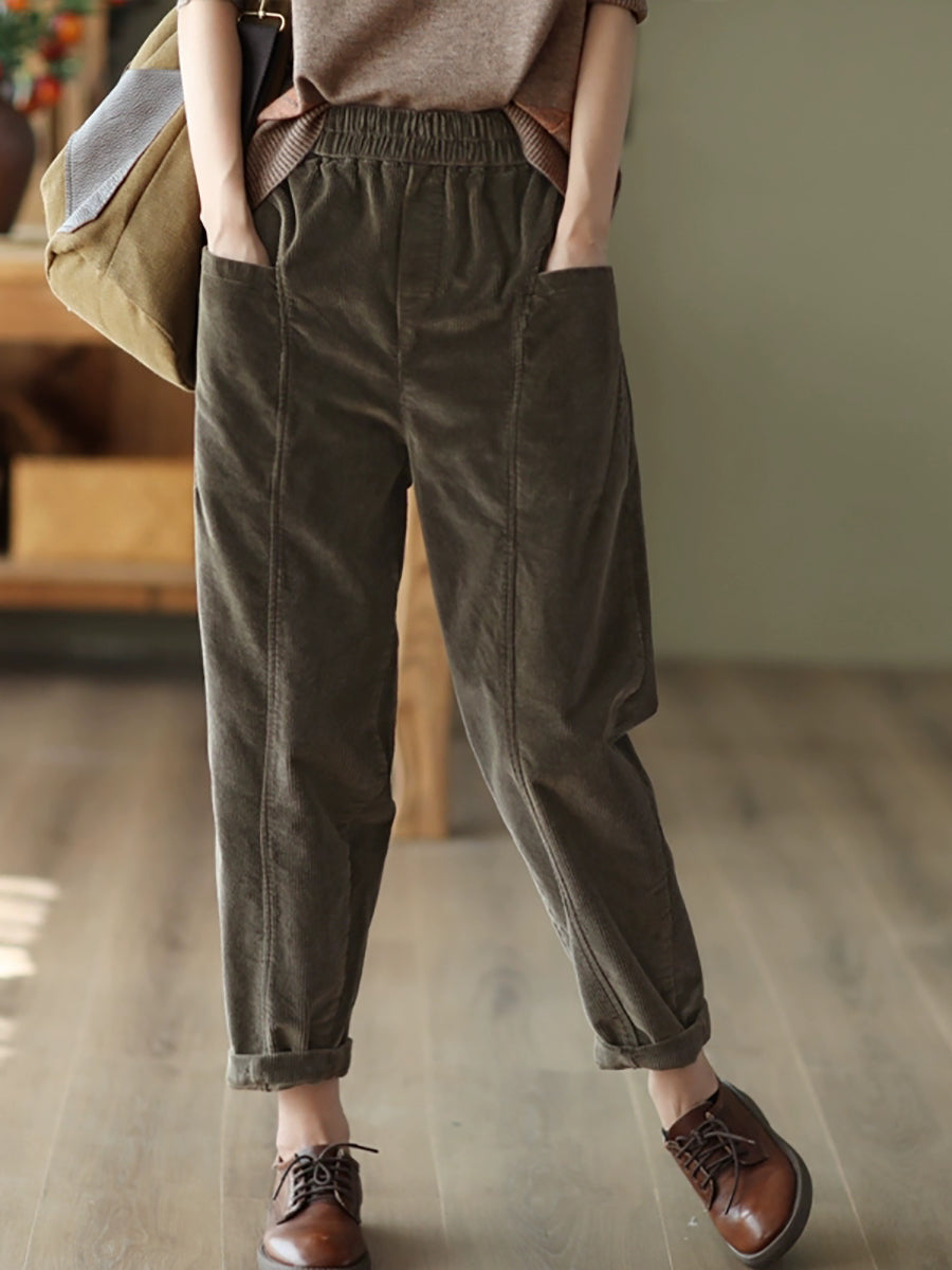 Calça Harem Feminina de Veludo Cotelê Retrô em Cores Lisas para Outono