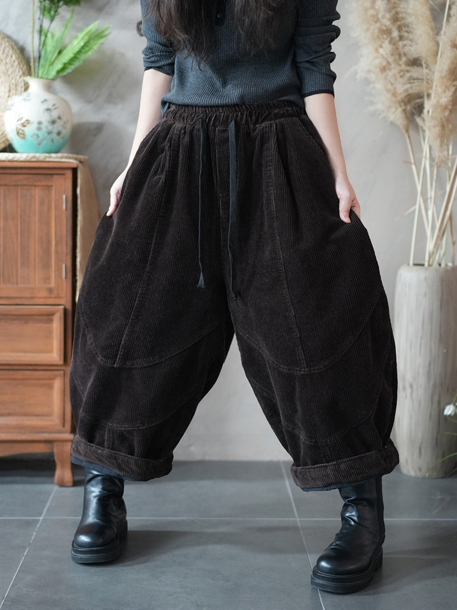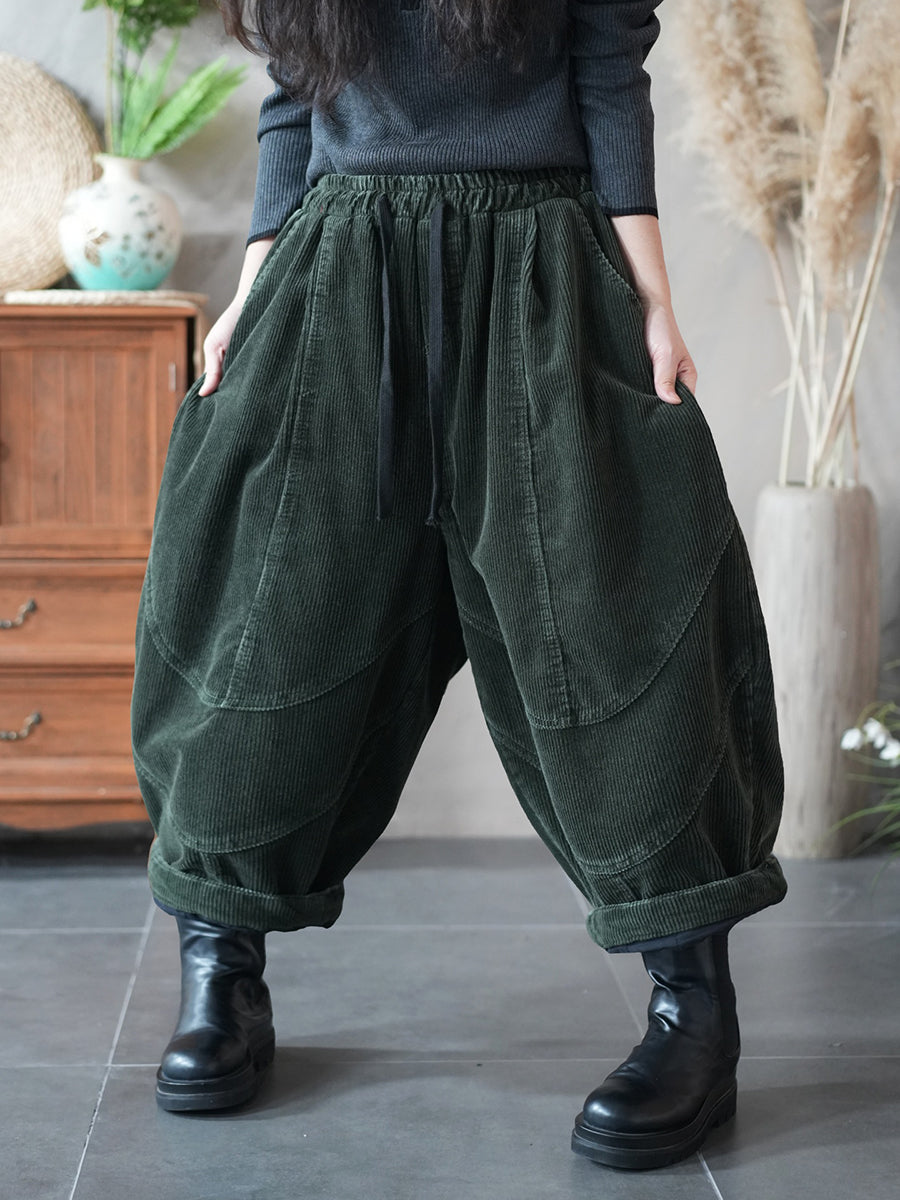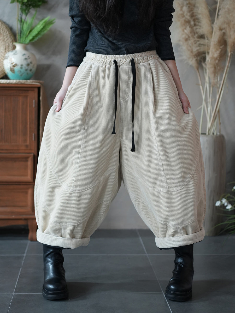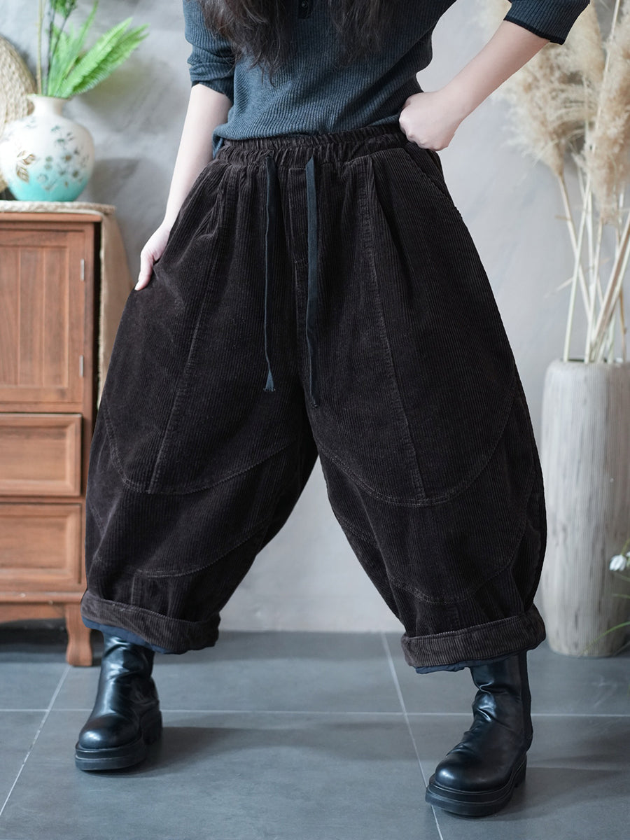 Calça Harem Feminina de Veludo Cotelê Retrô em Cores Lisas para Outono