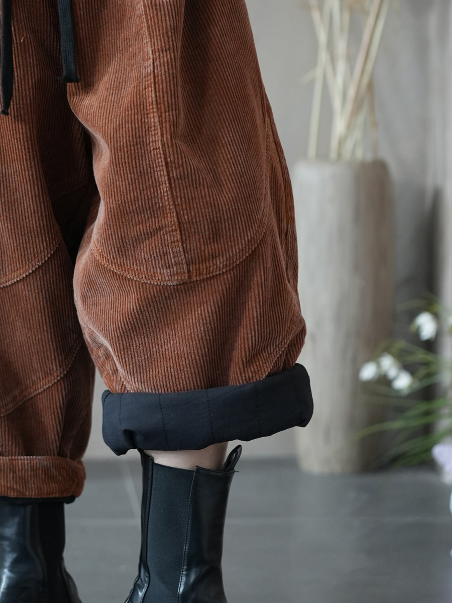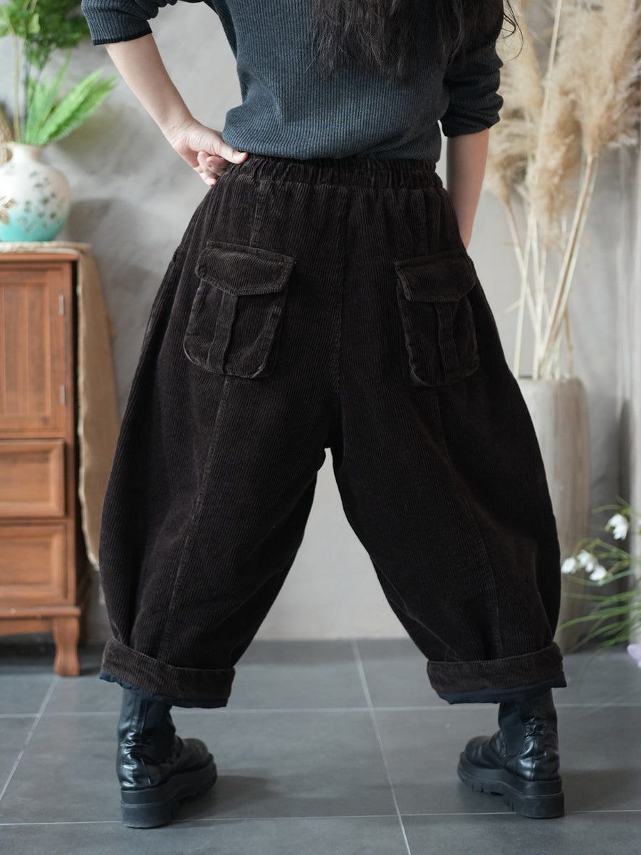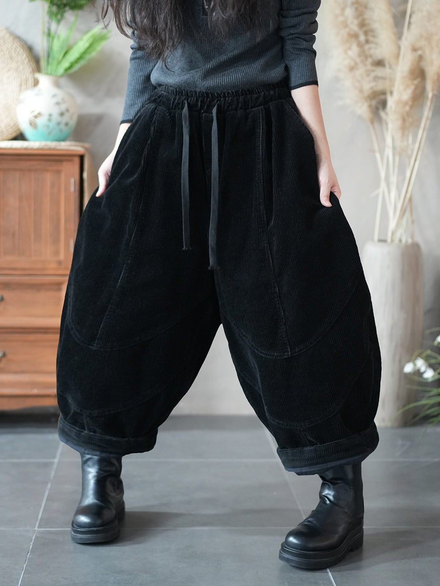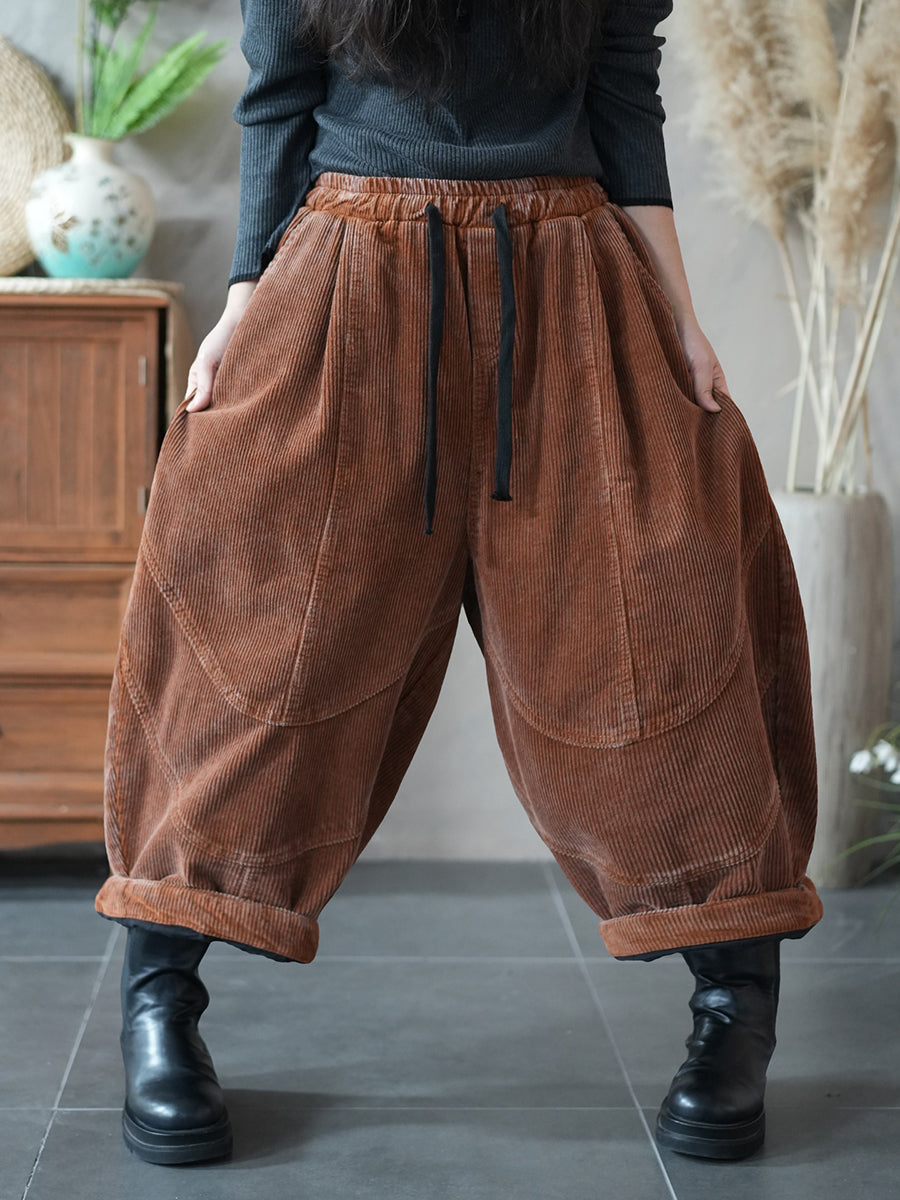 Calça Harem Feminina de Veludo Cotelê Retrô em Cores Lisas para Outono