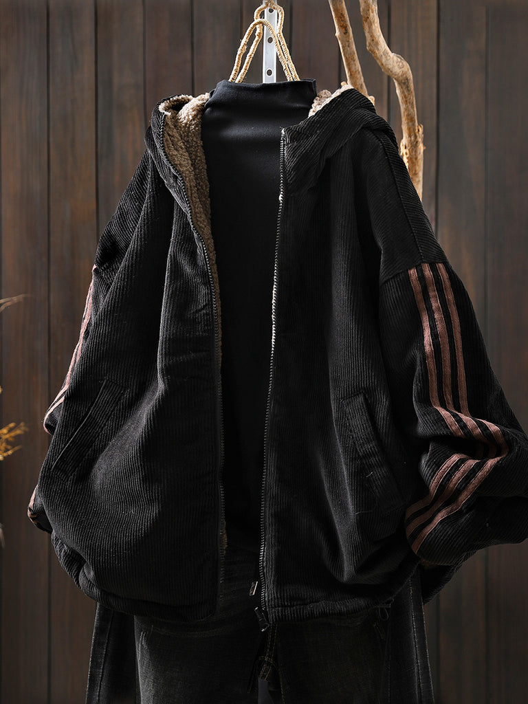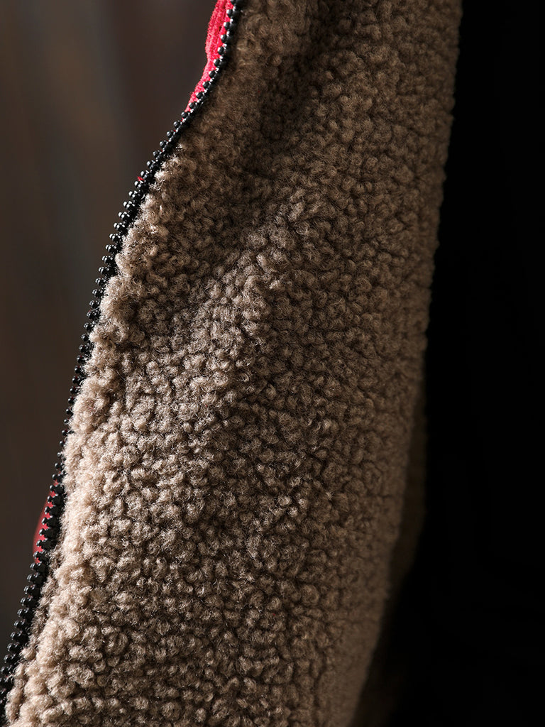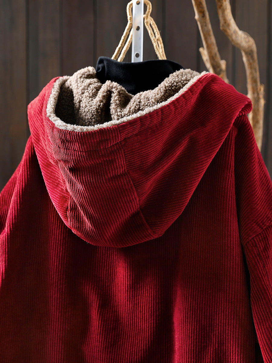 Casaco de lã polar com capuz, estilo retrô, para mulheres, em cores lisas, para o outono.
