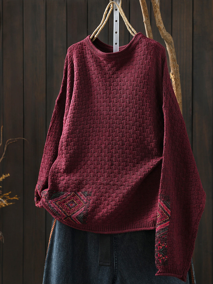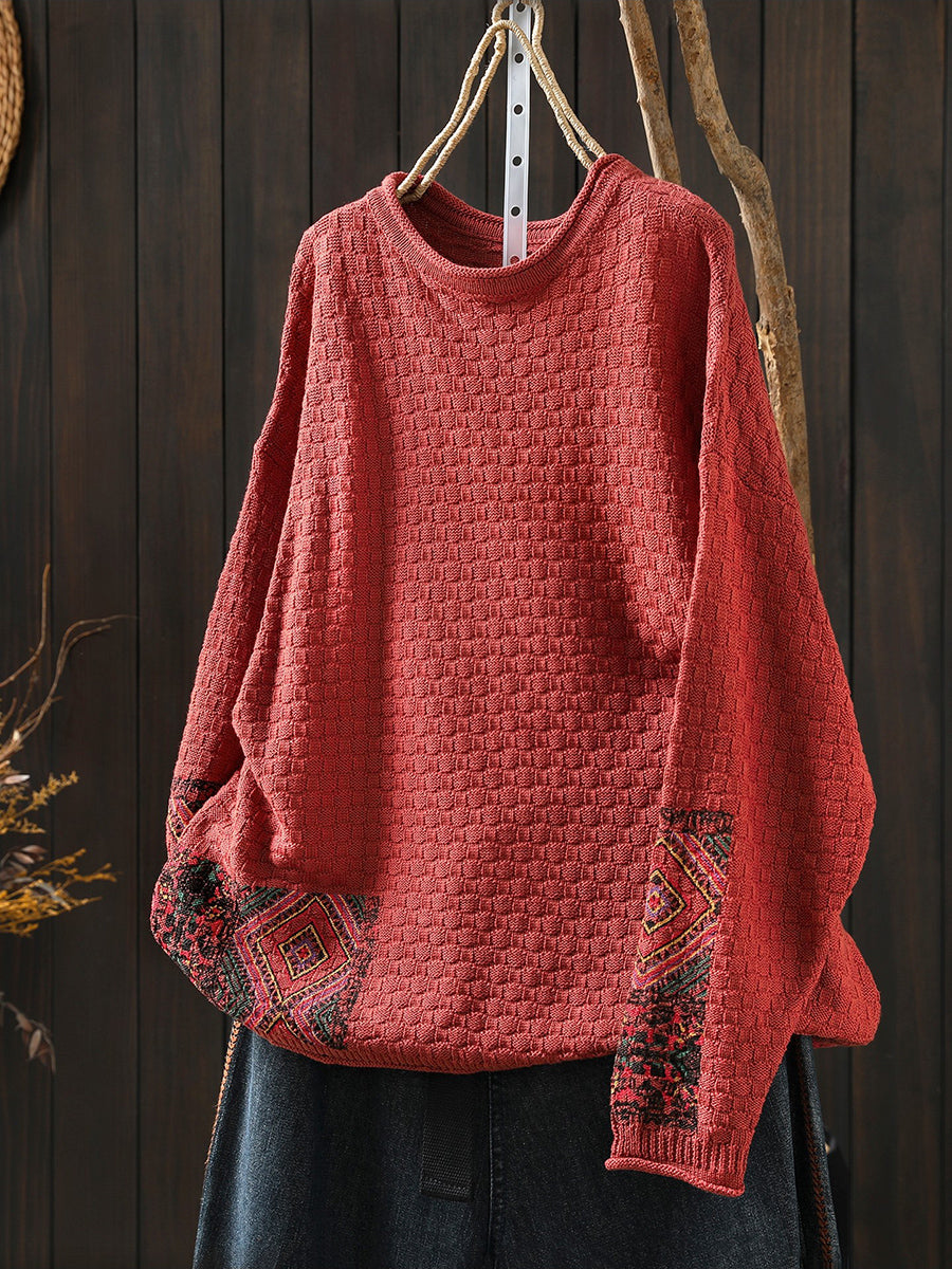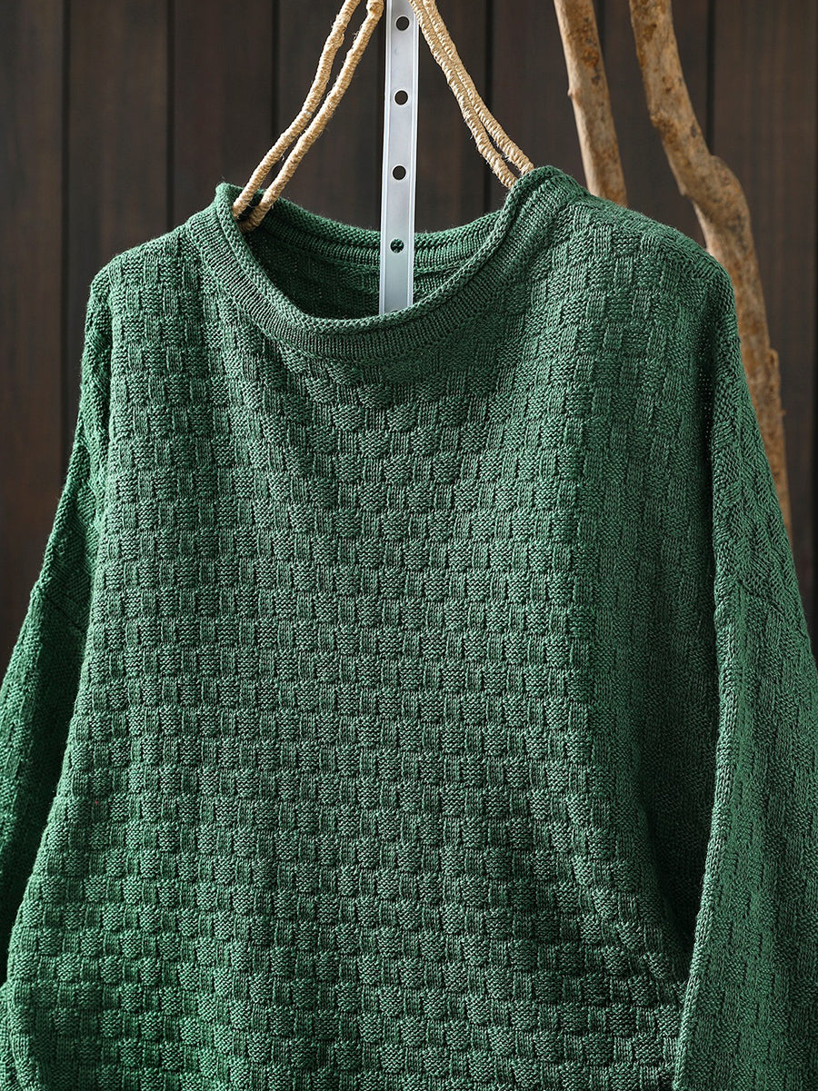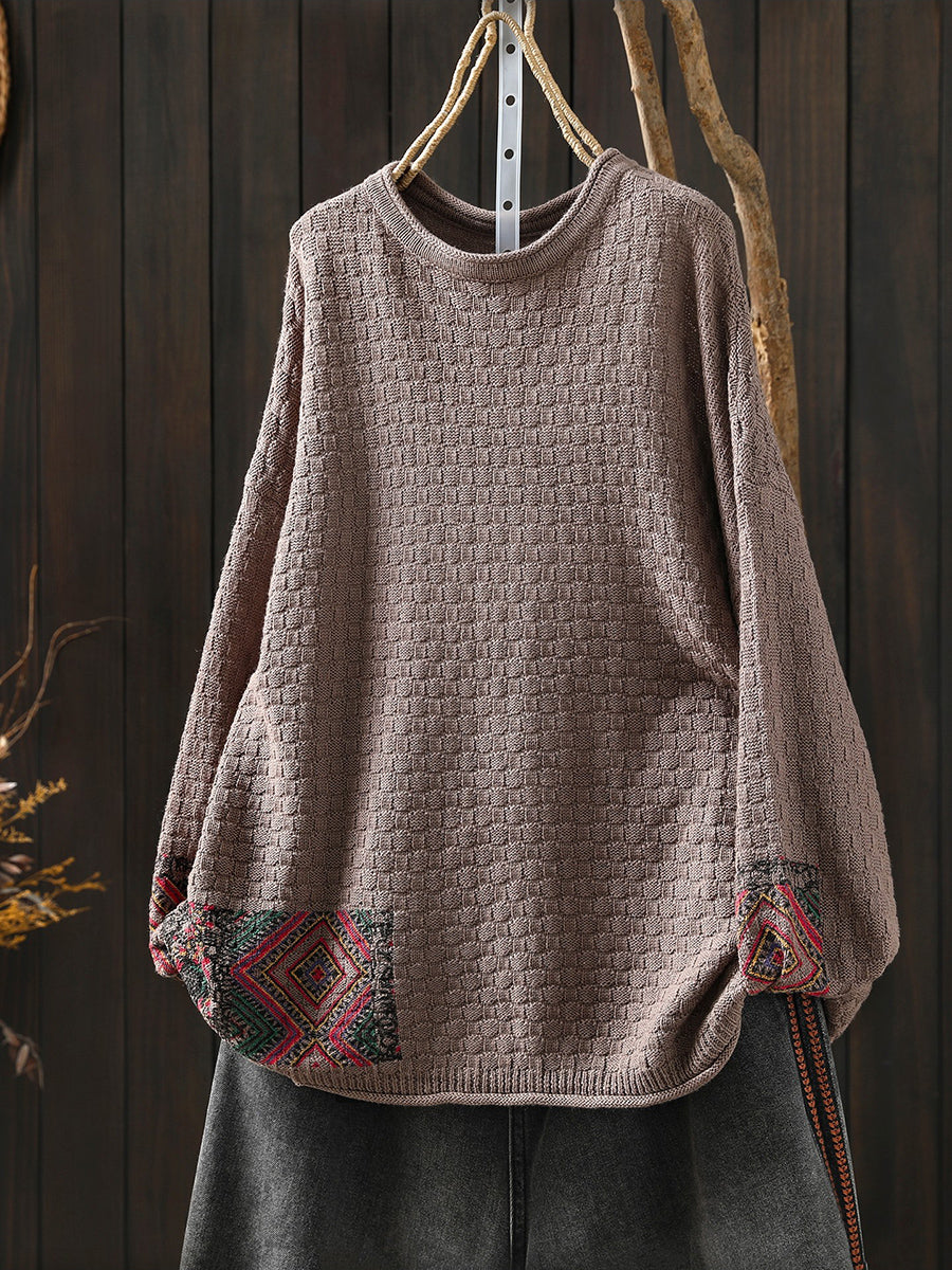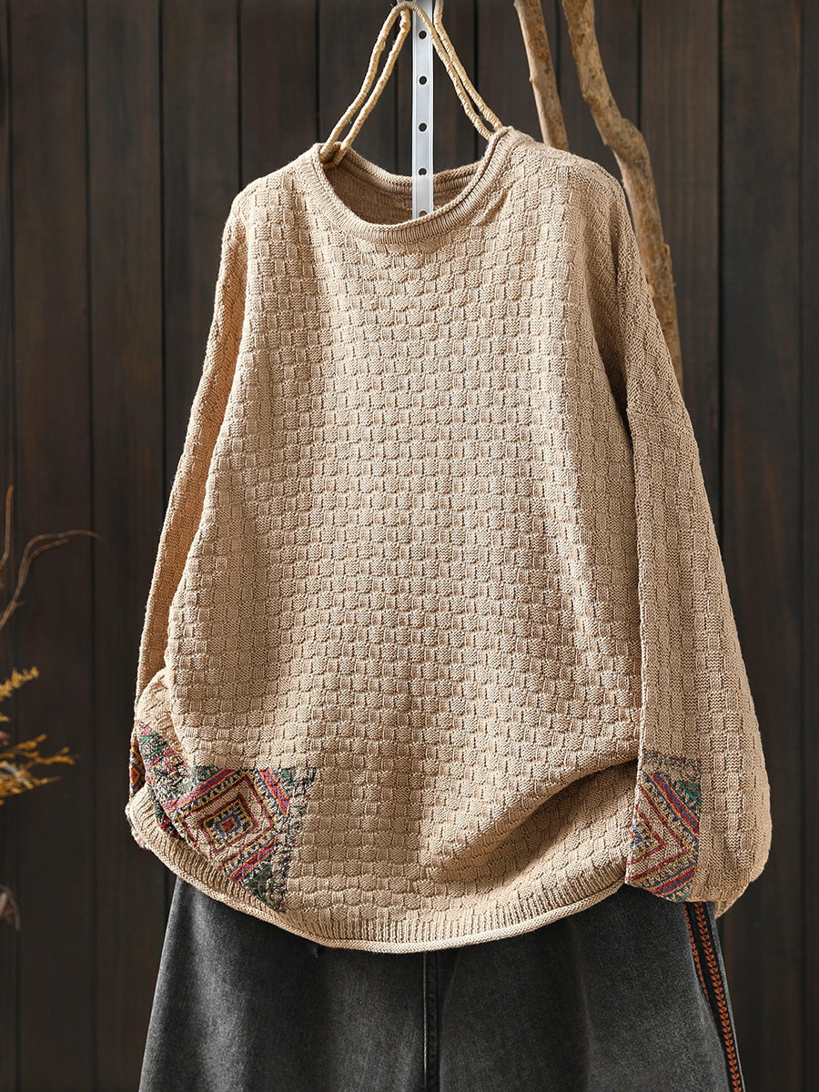 Suéter feminino vintage de gola redonda em tricô, estilo outono.
