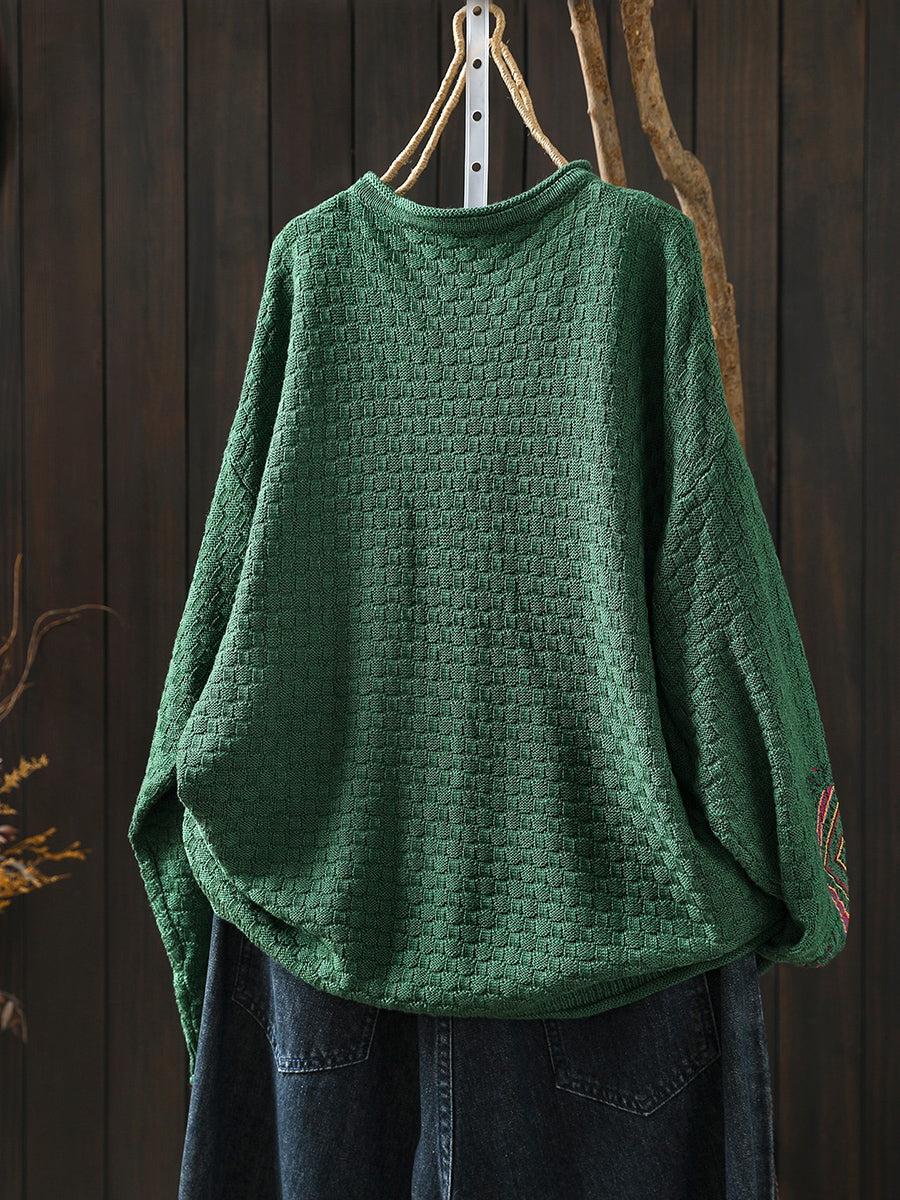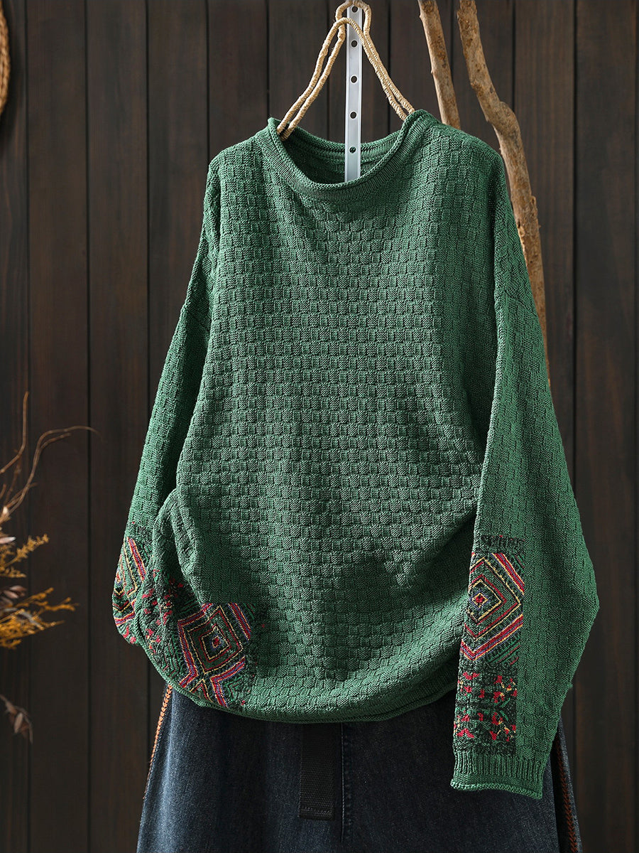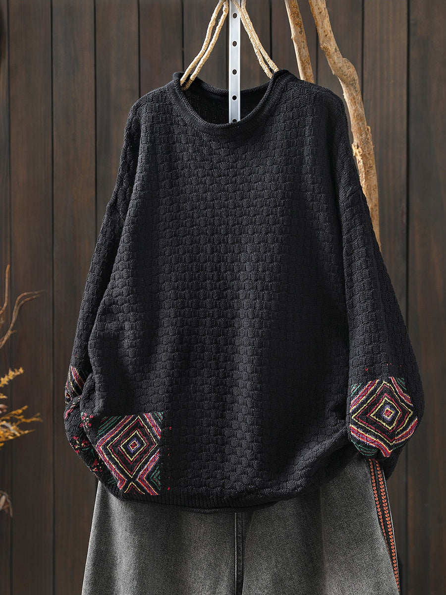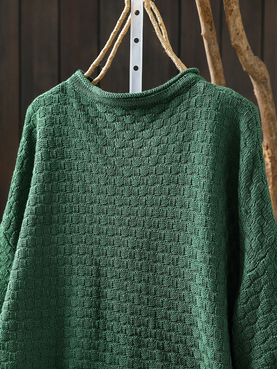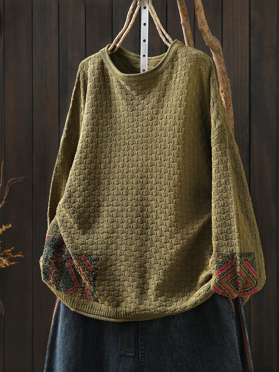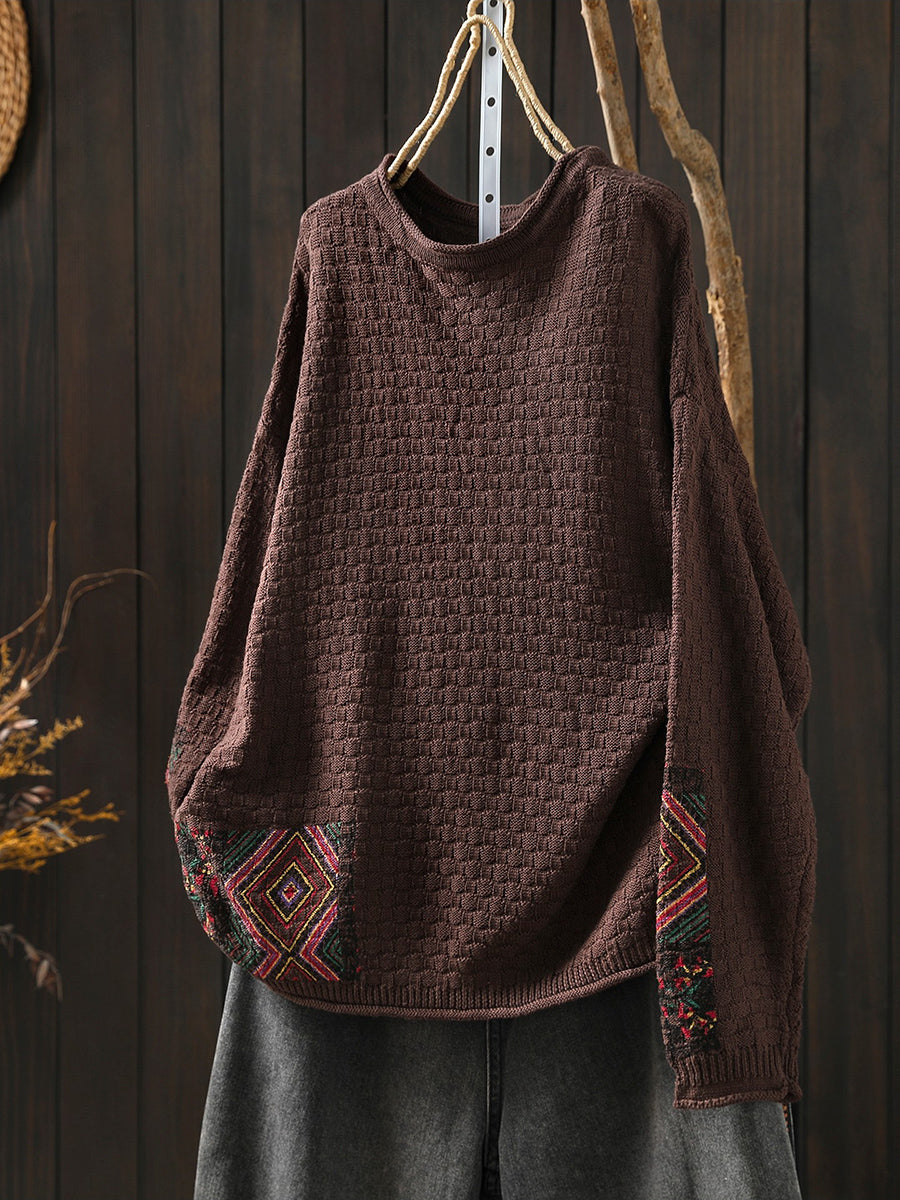 Suéter feminino vintage de gola redonda em tricô, estilo outono.