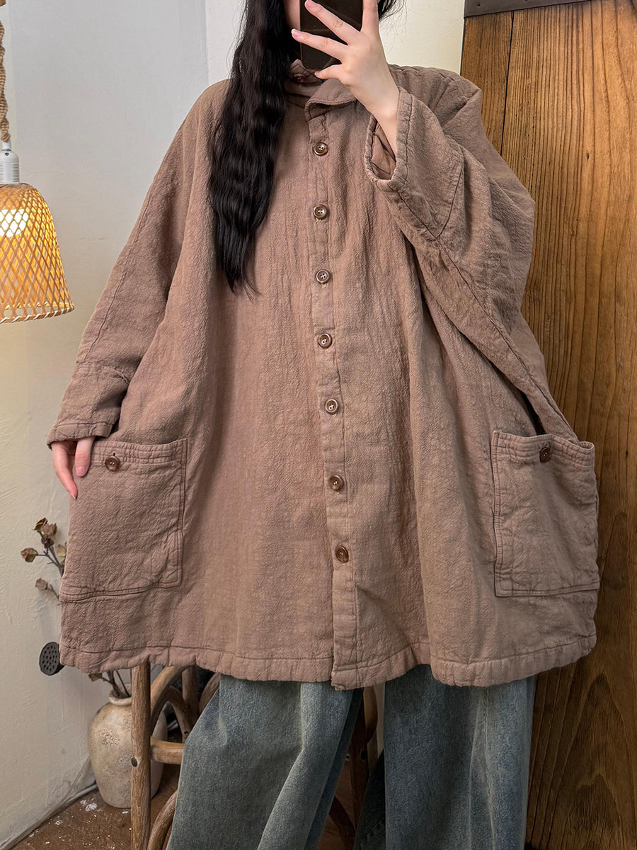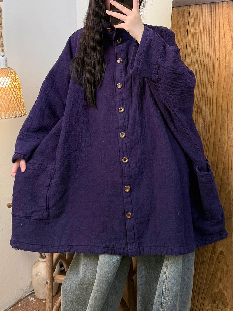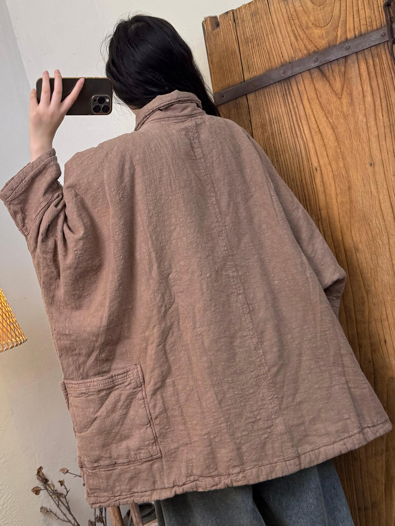 Casaco feminino vintage de outono com gola alta e cor pura acolchoado