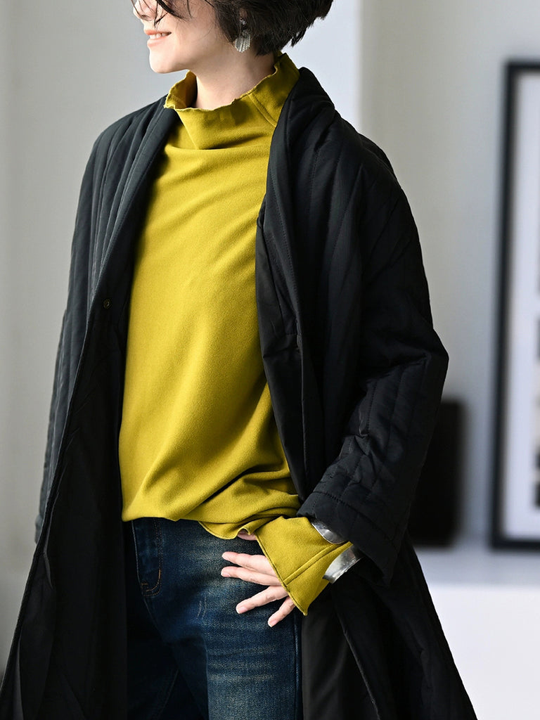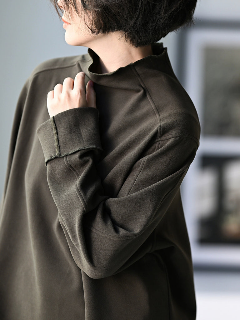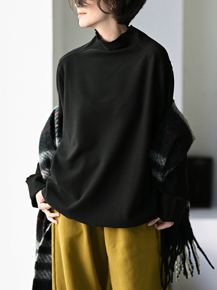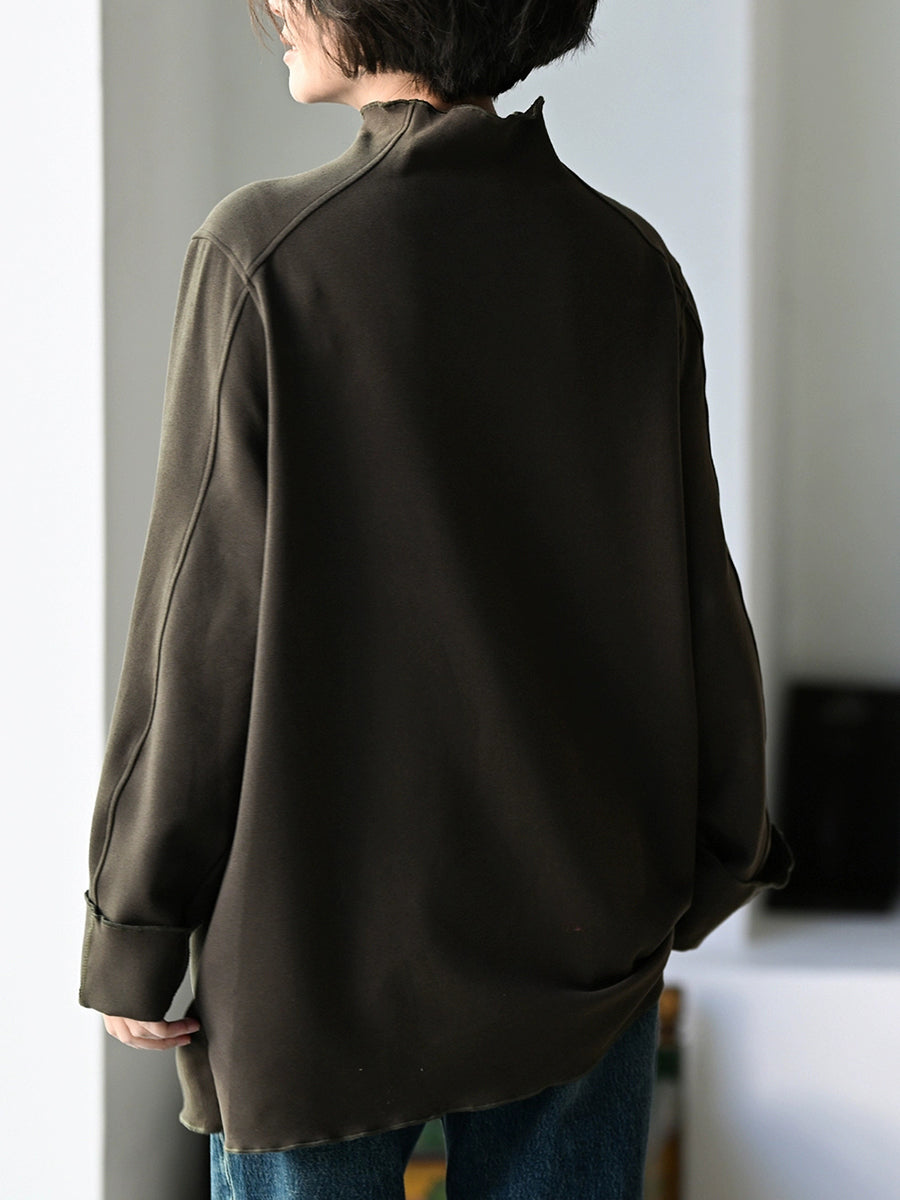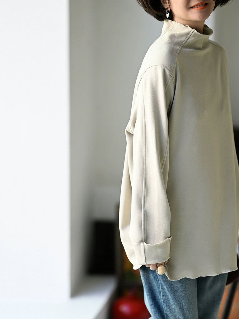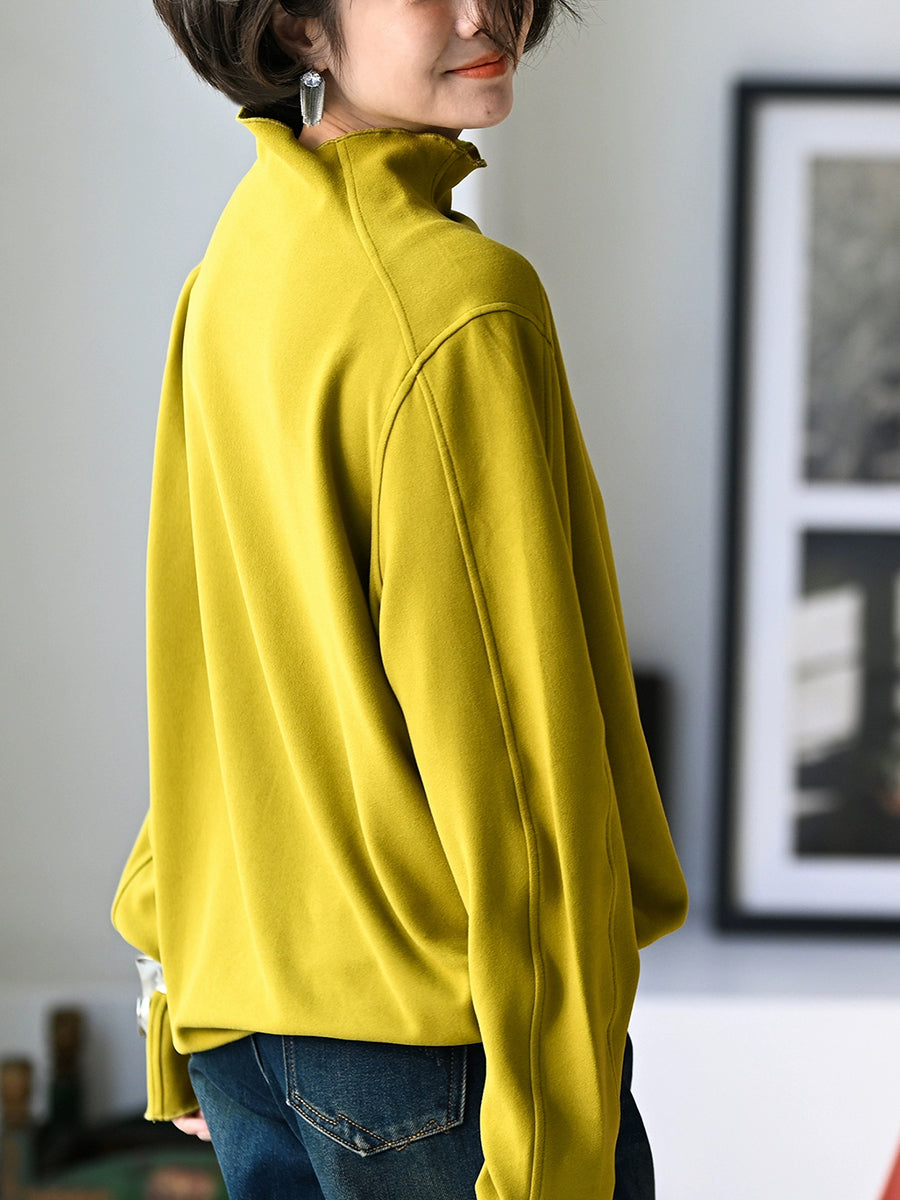 Blusa feminina casual de gola alta em cor lisa para o outono.