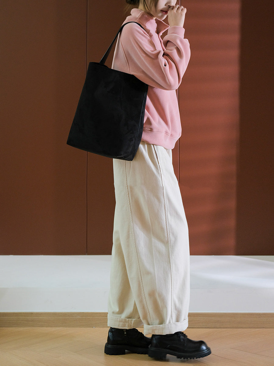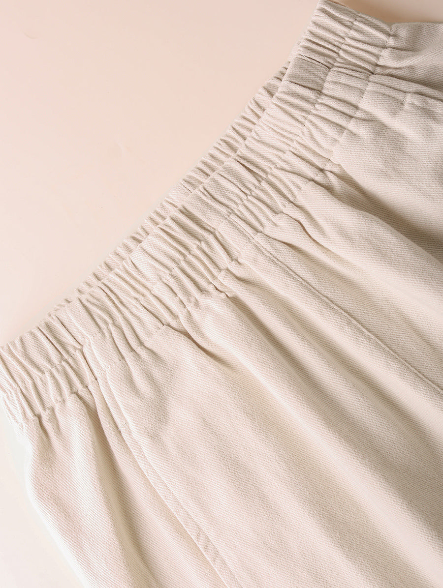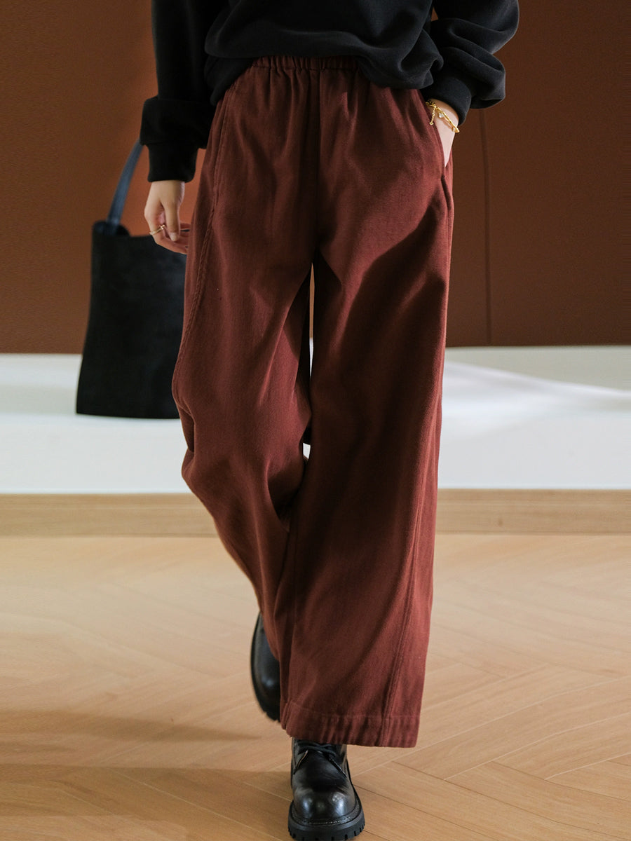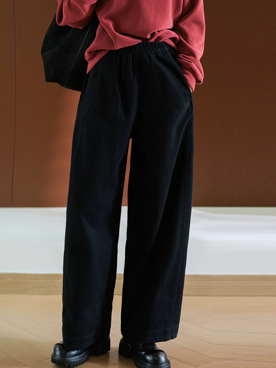 Calça feminina casual de cor lisa, 100% algodão, com pernas largas.