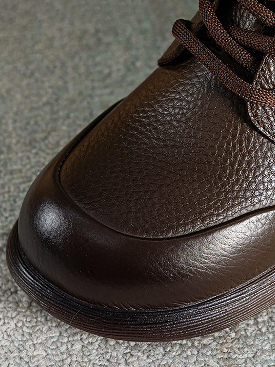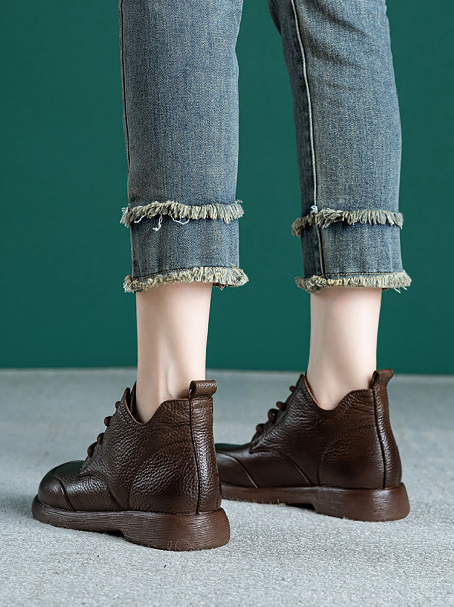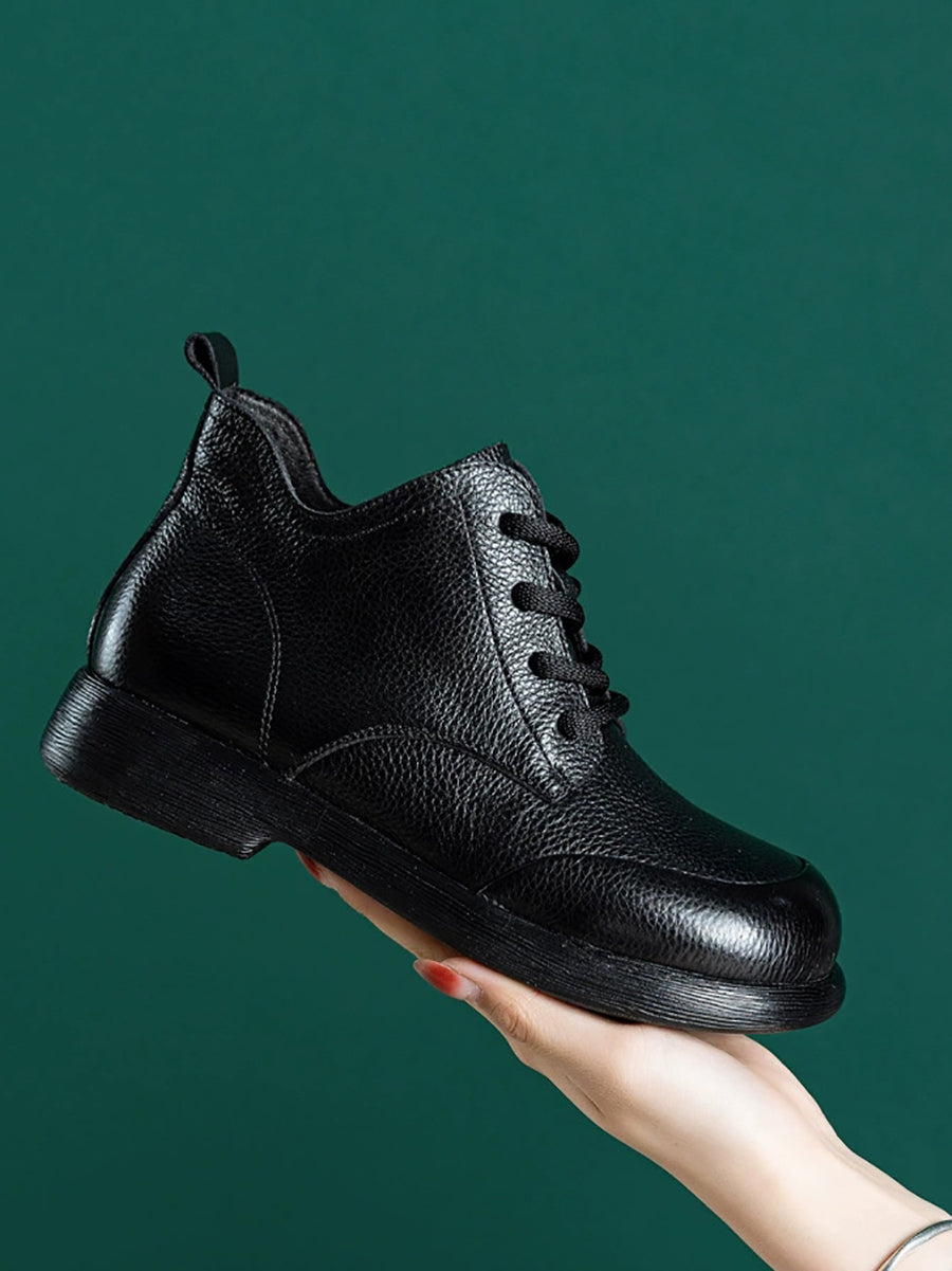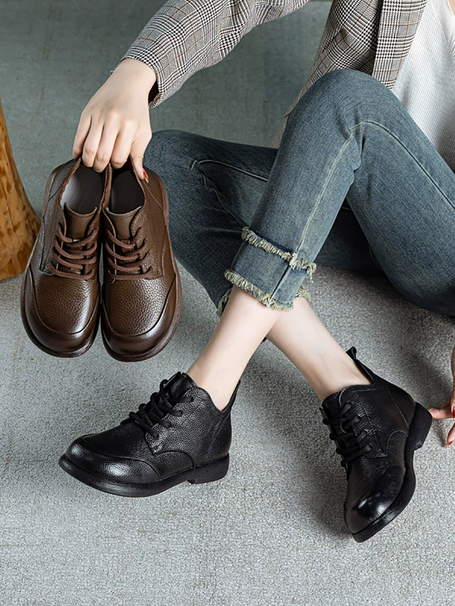 Botas de cano curto femininas casuais em couro legítimo de cor lisa
