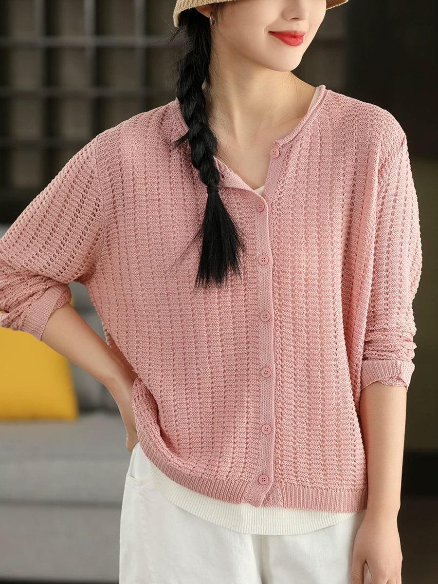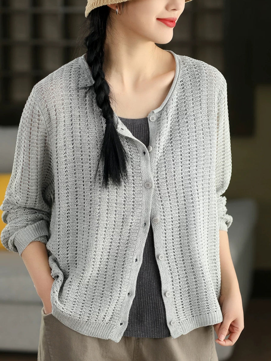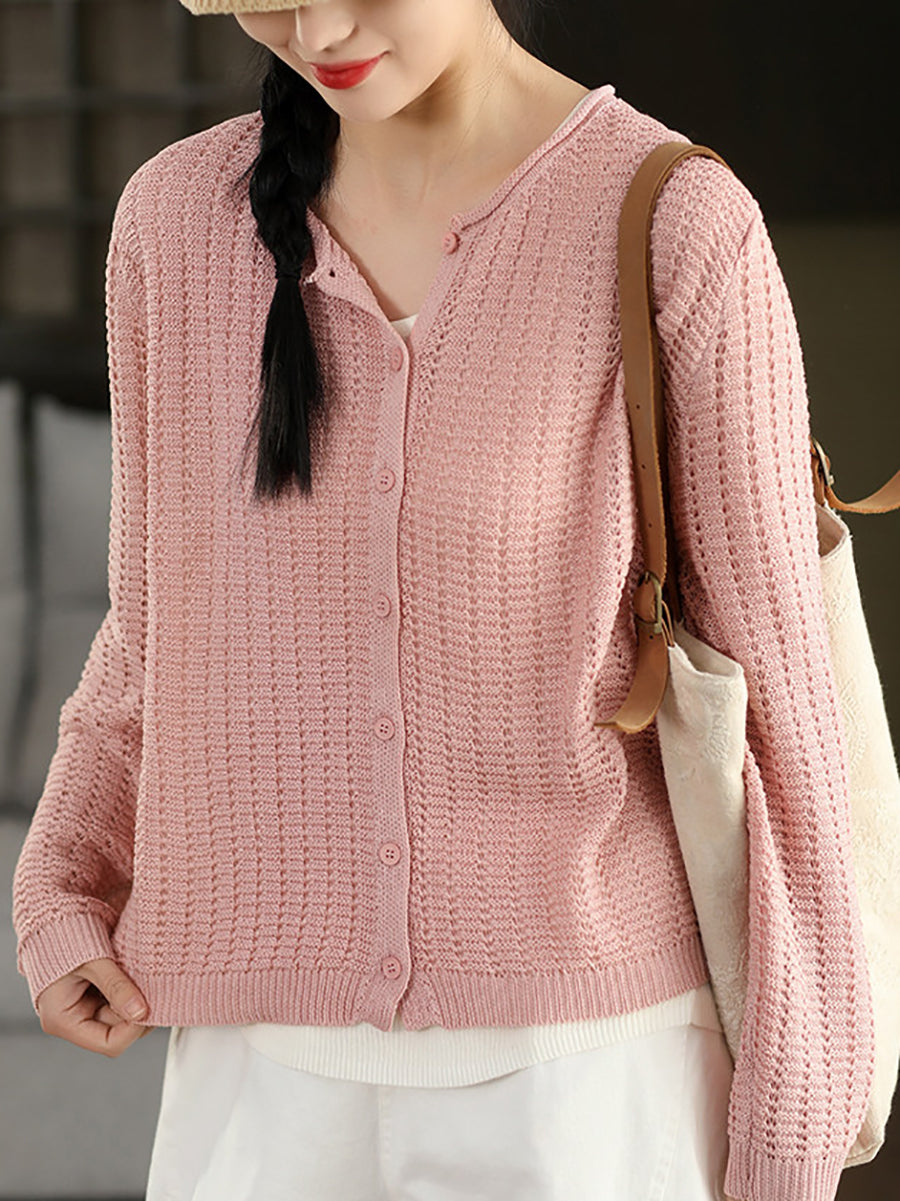 Camisa feminina casual de malha com gola redonda e cor lisa