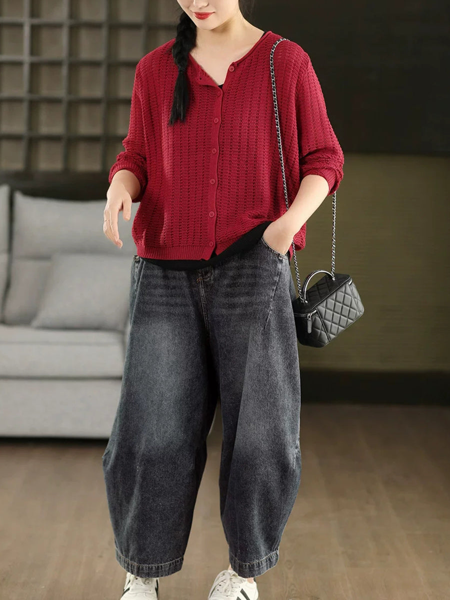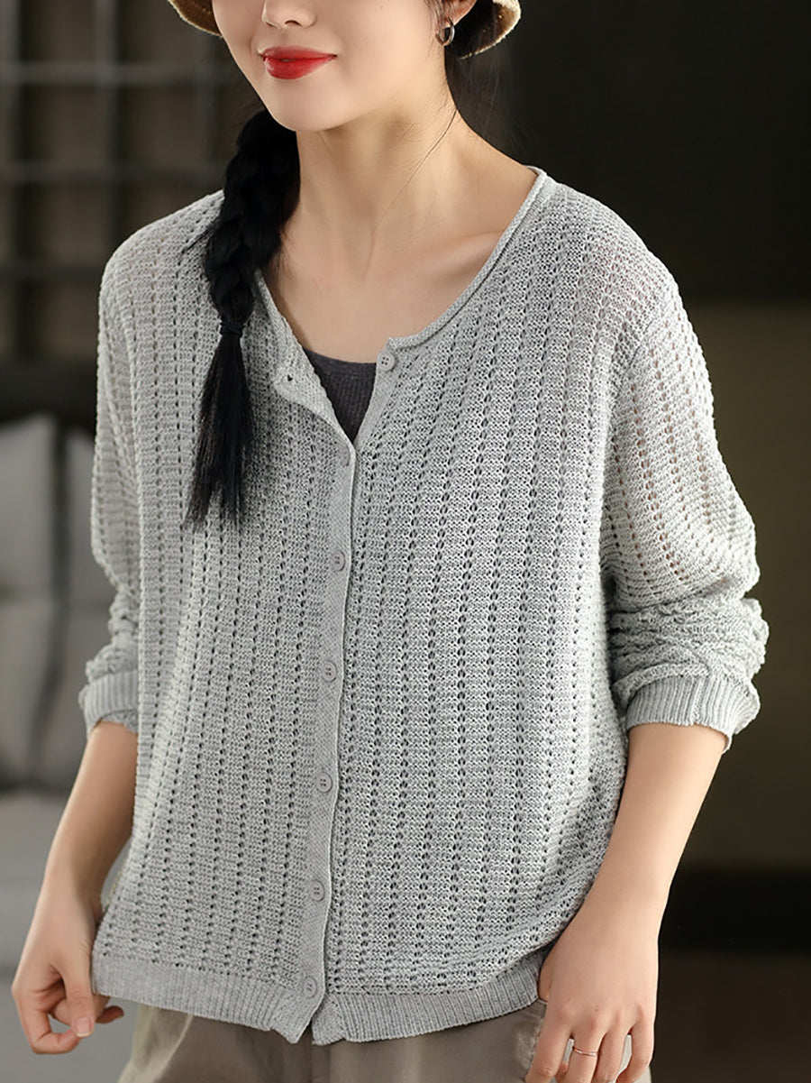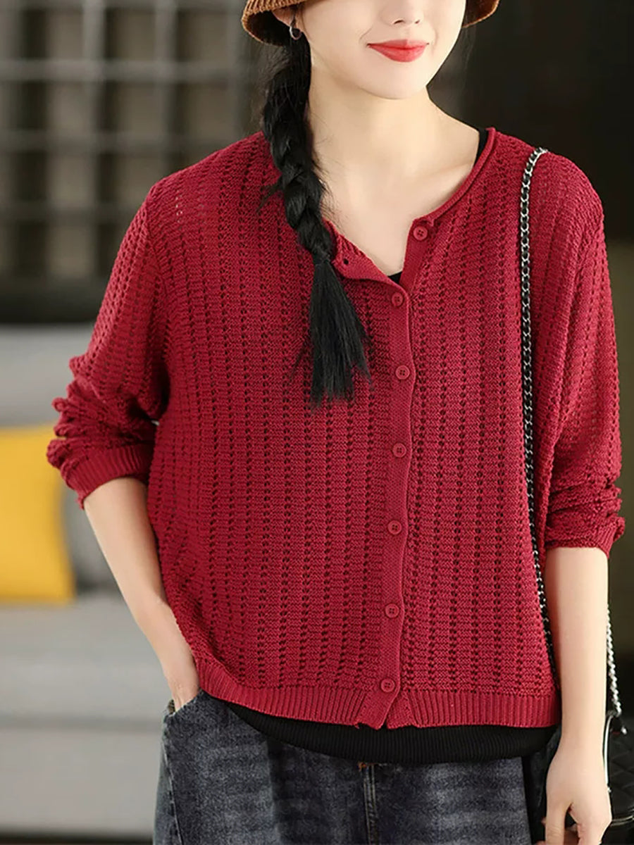 Camisa feminina casual de malha com gola redonda e cor lisa