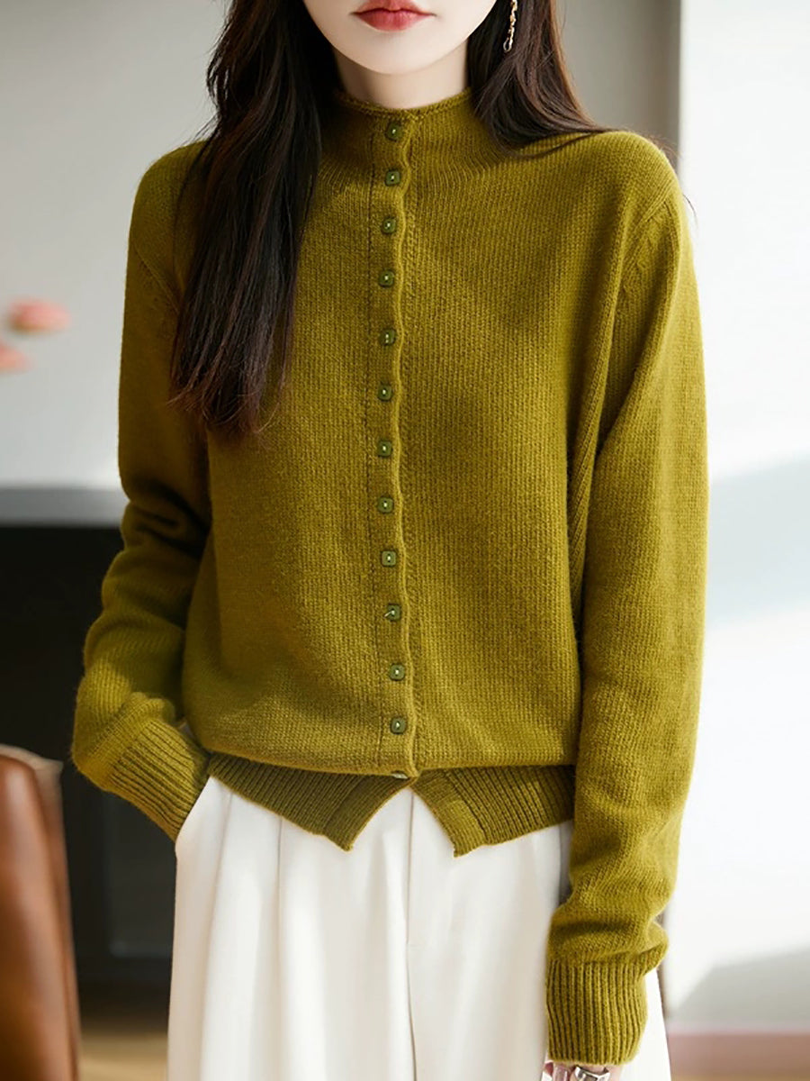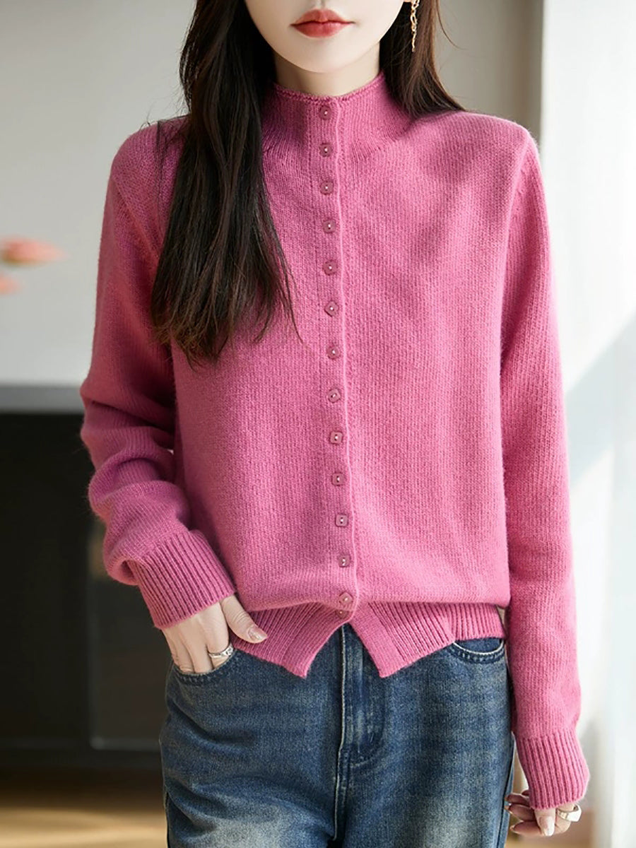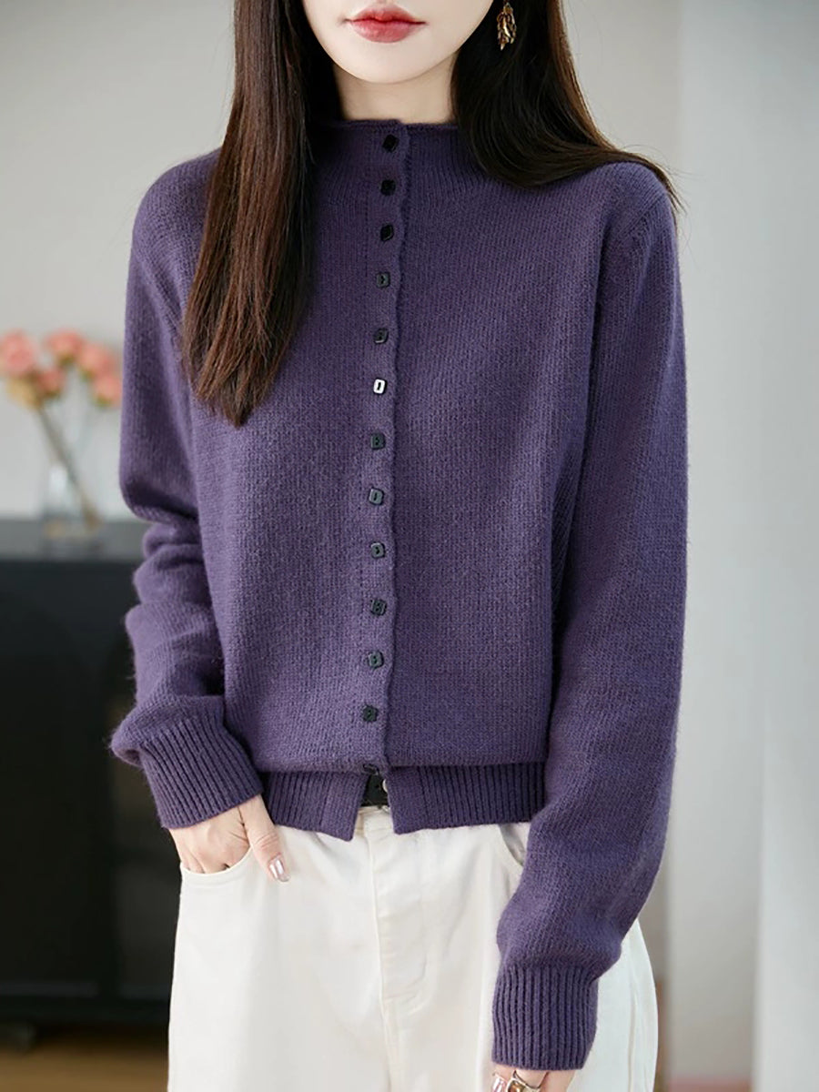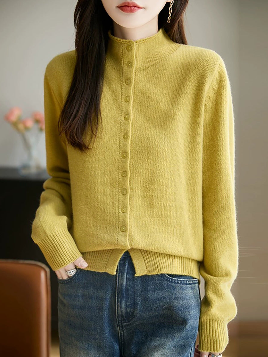 Suéter feminino casual de gola alta e cor lisa para a primavera.