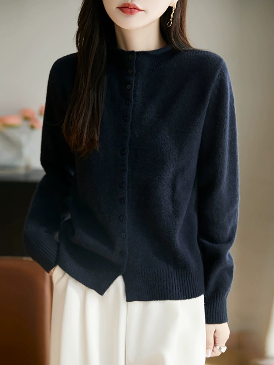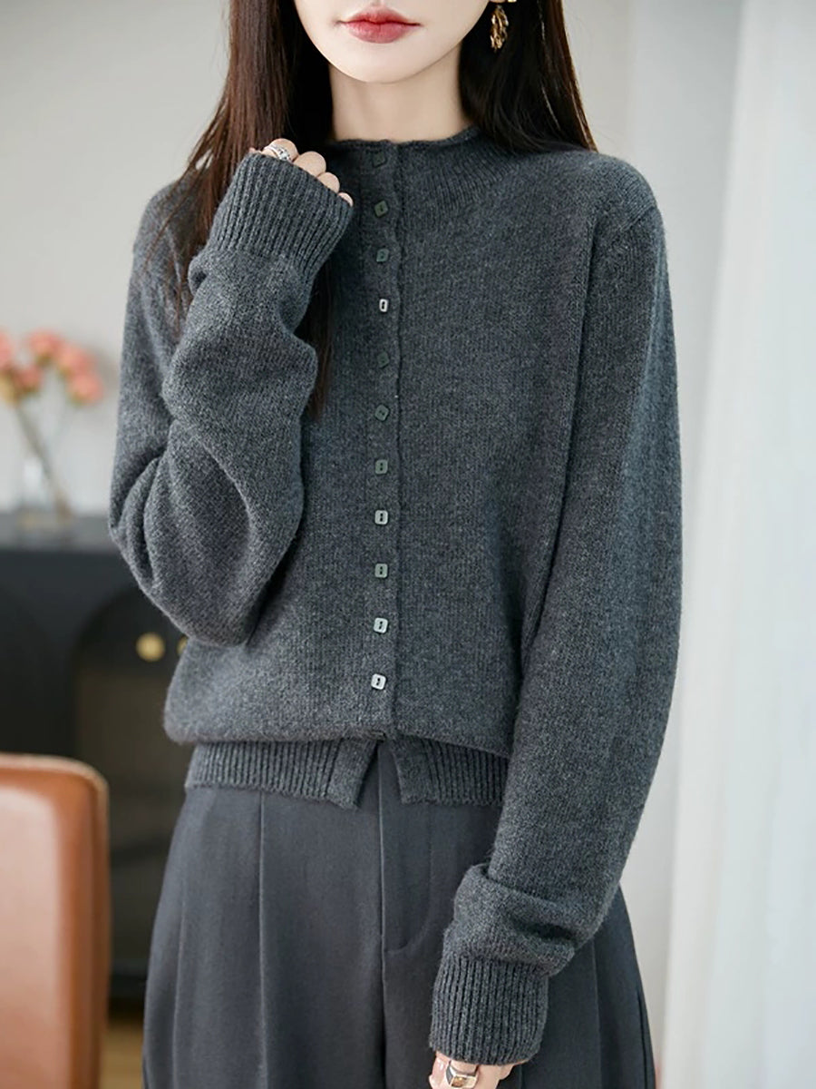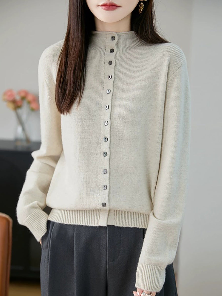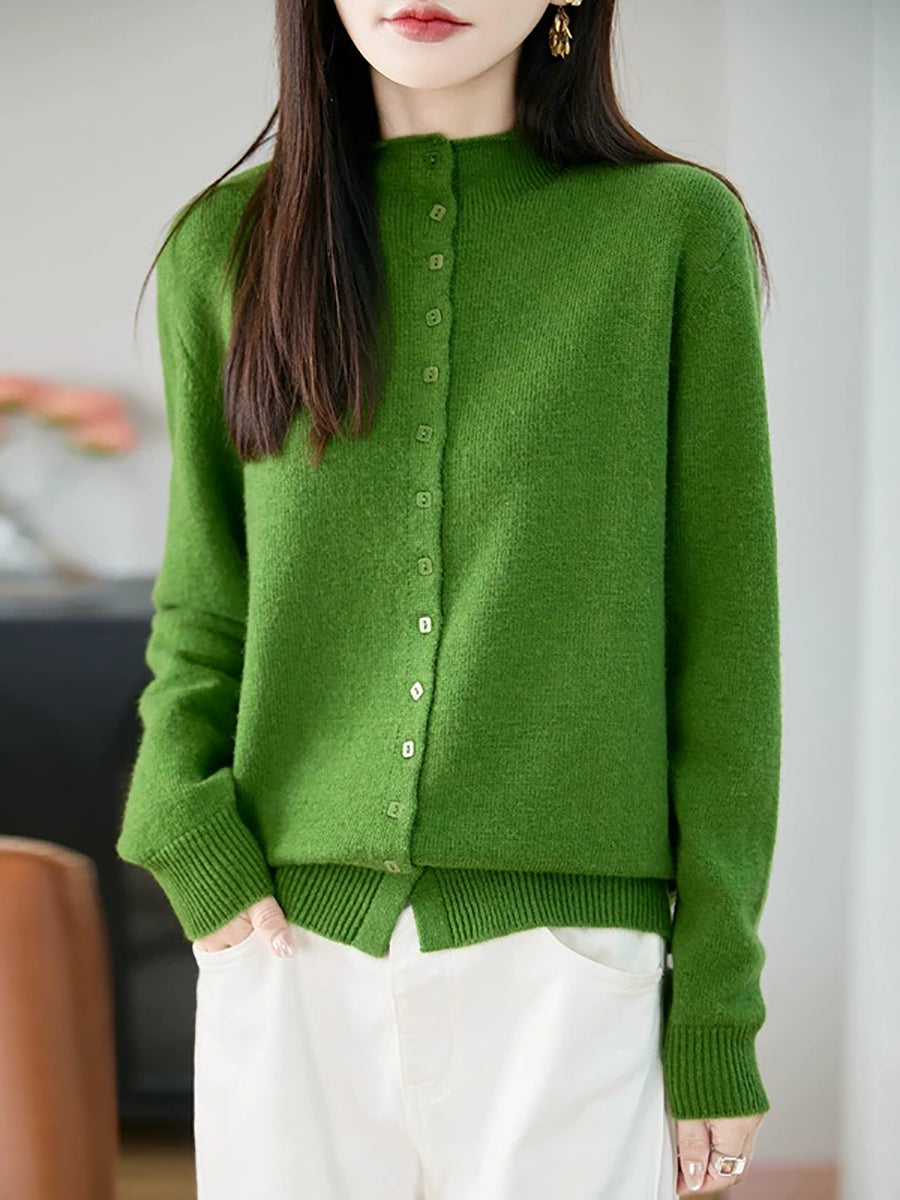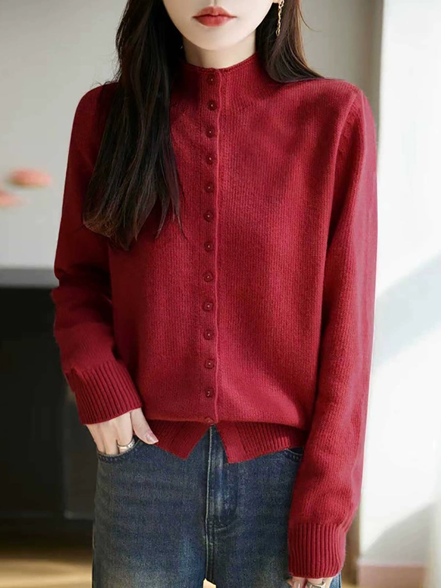 Suéter feminino casual de gola alta e cor lisa para a primavera.