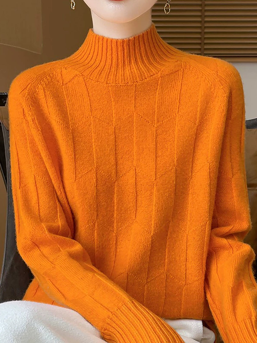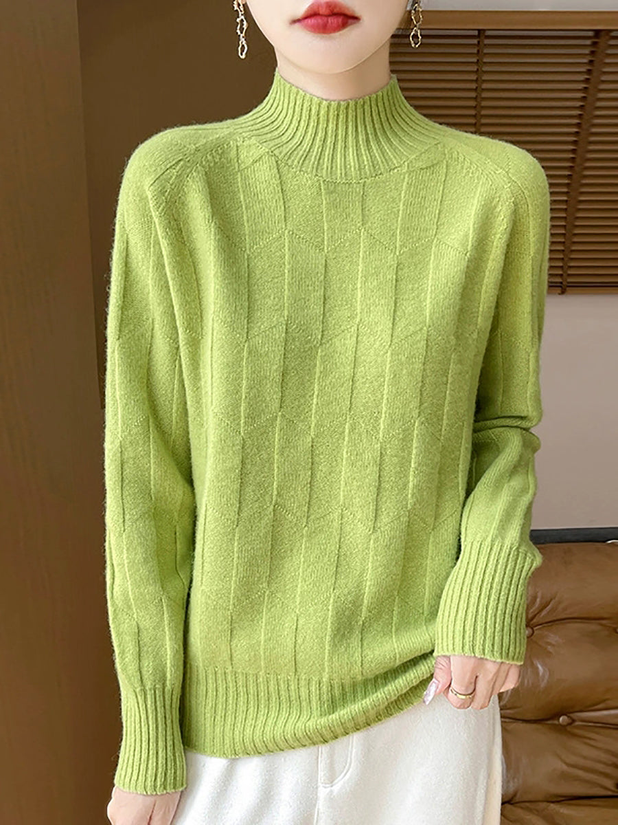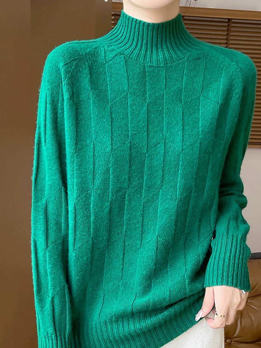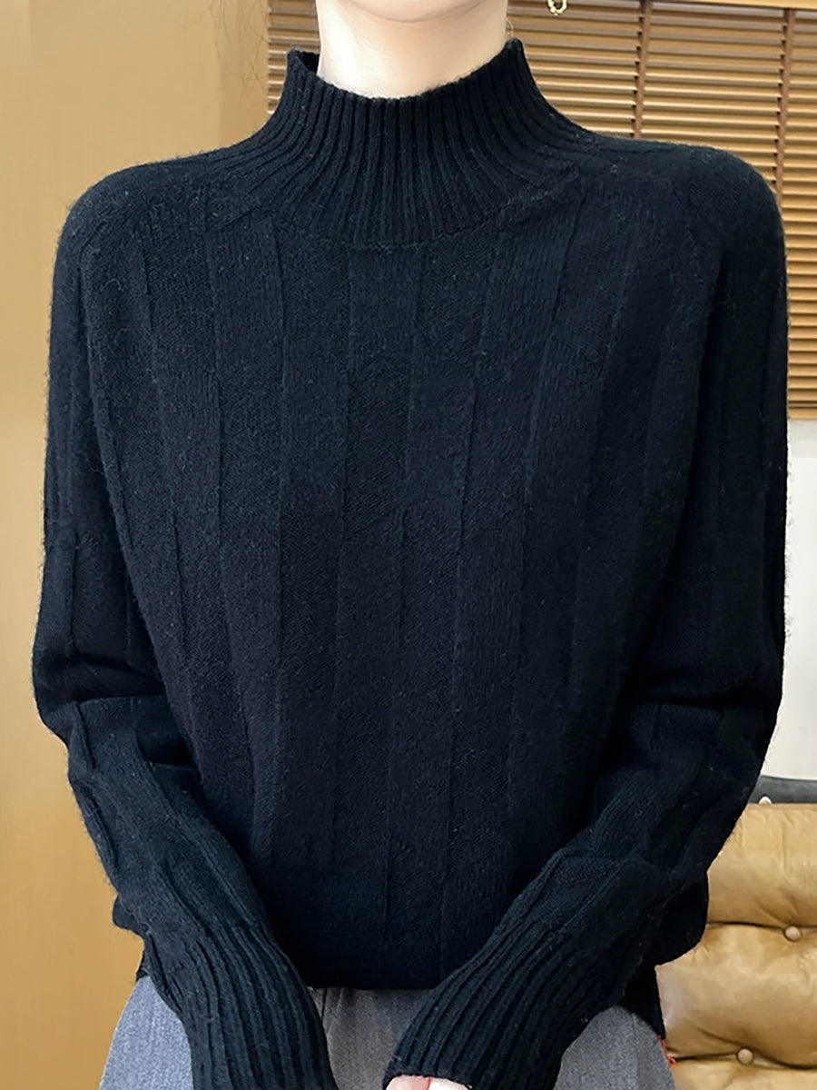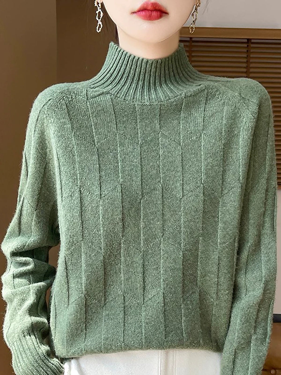 Suéter feminino casual de gola alta e cor lisa para a primavera.