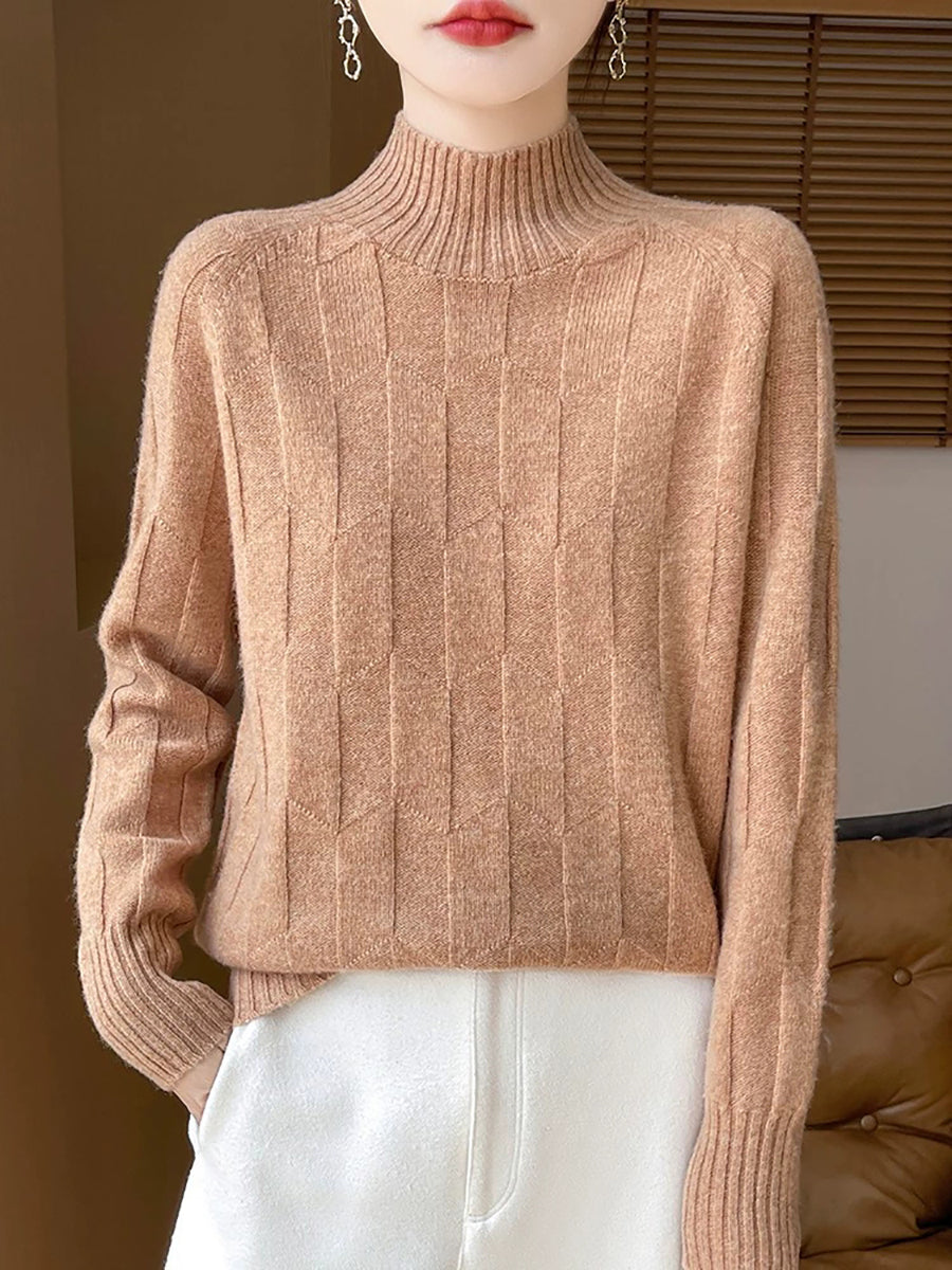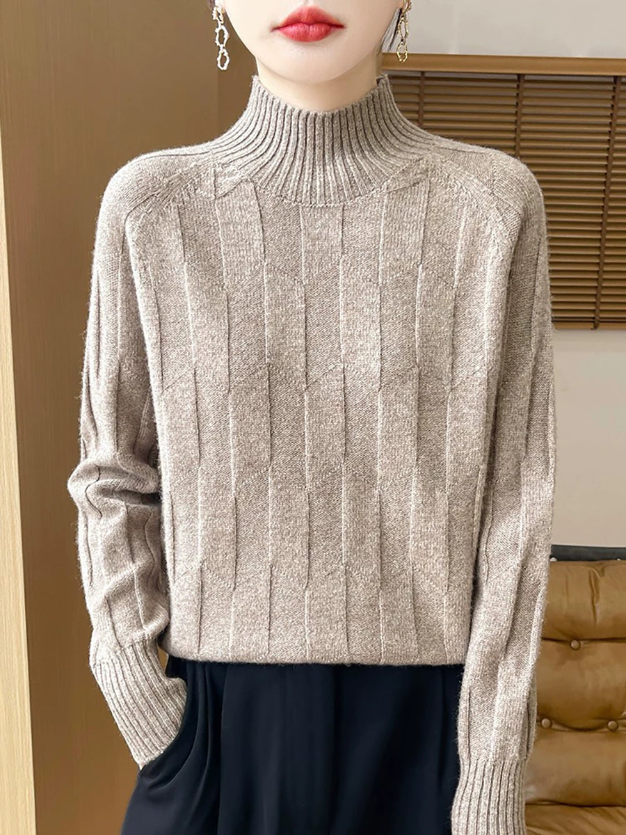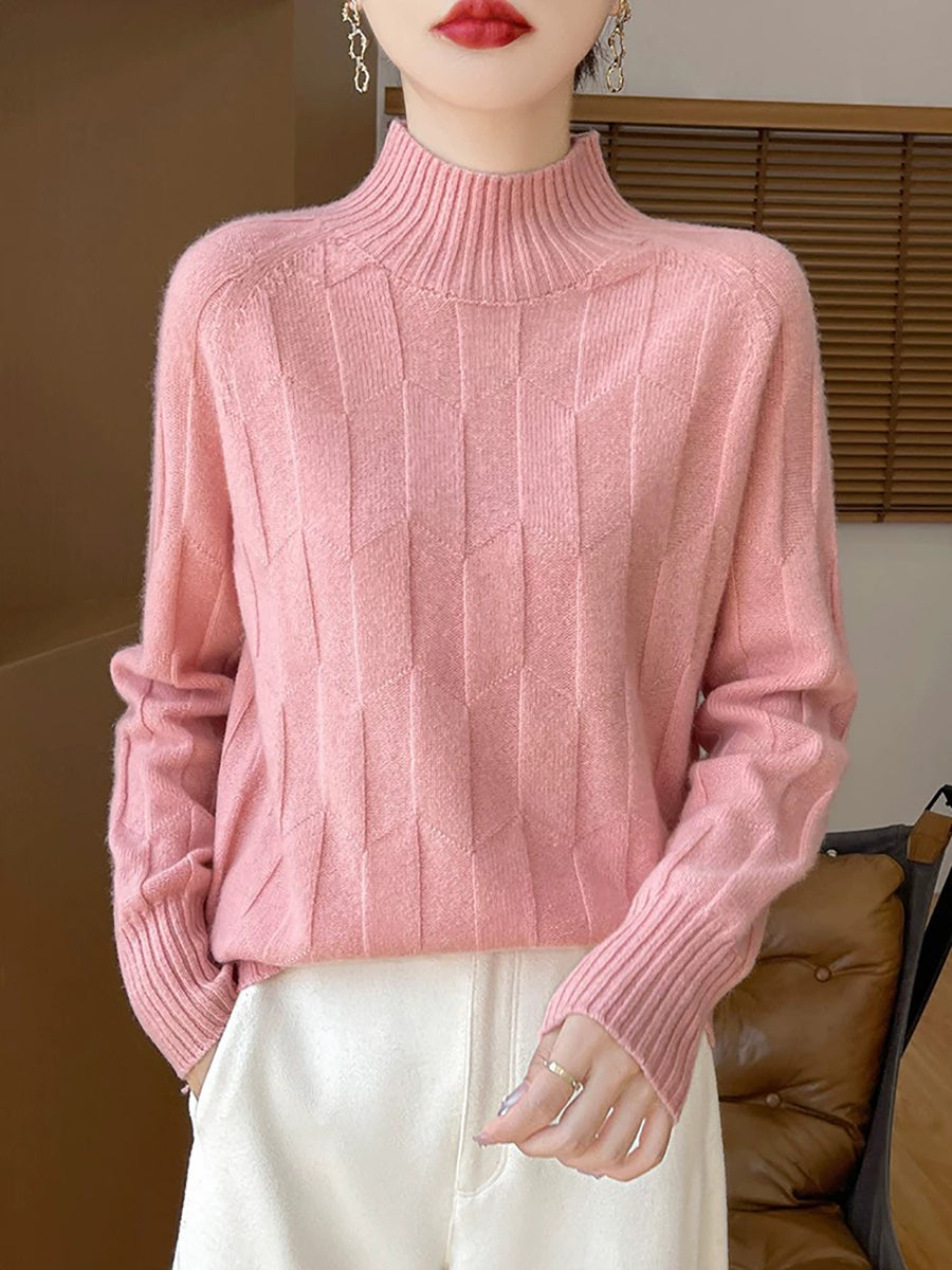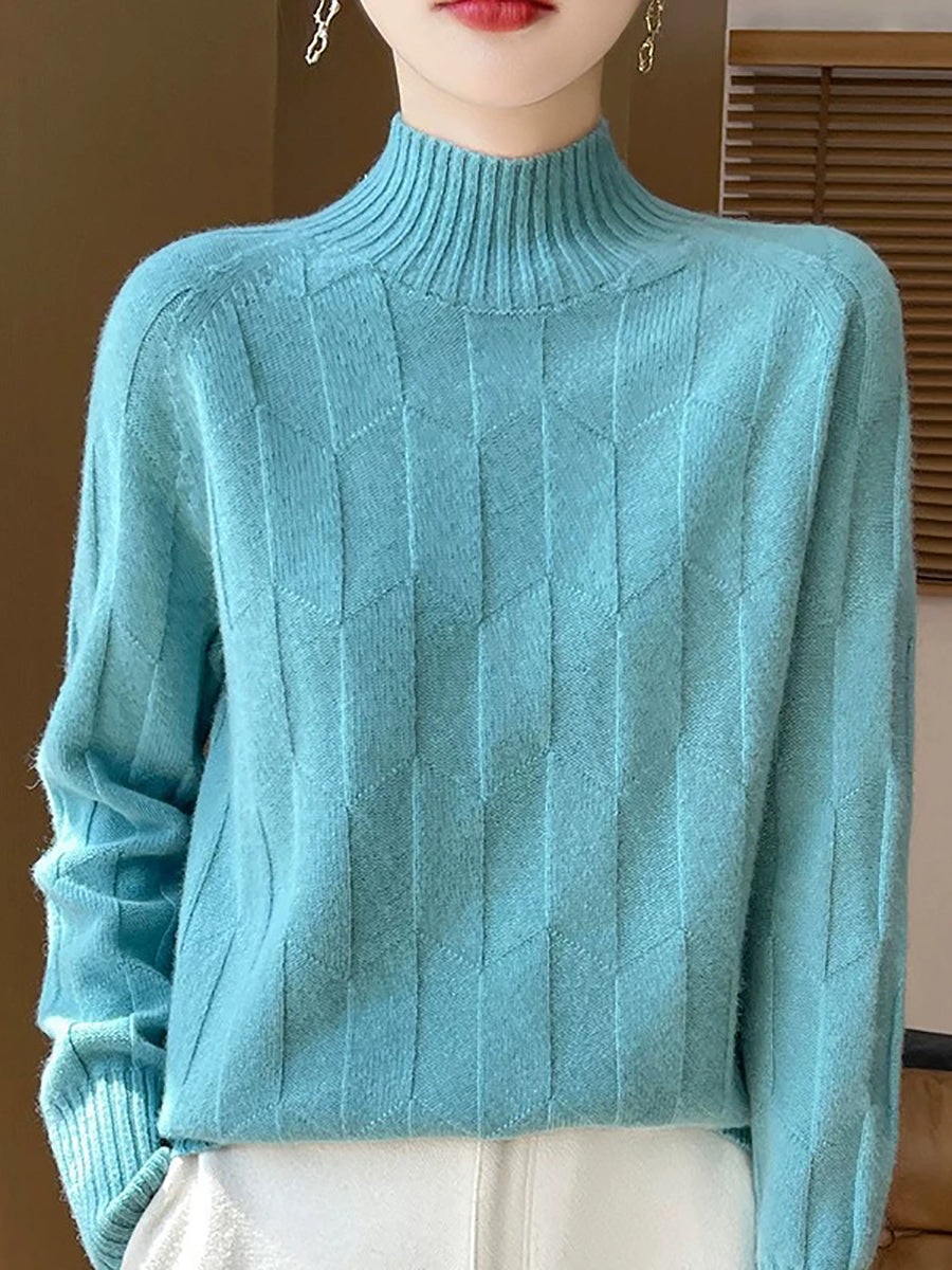 Suéter feminino casual de gola alta e cor lisa para a primavera.