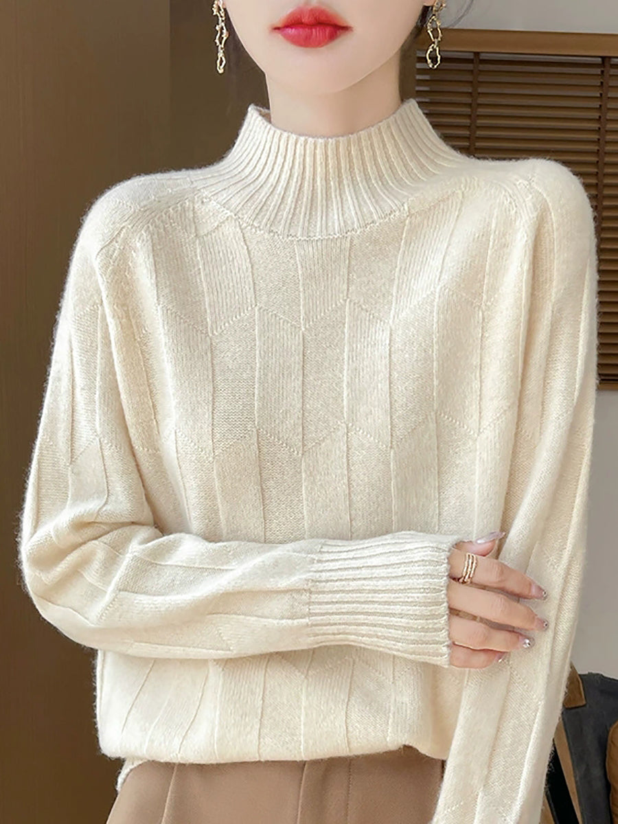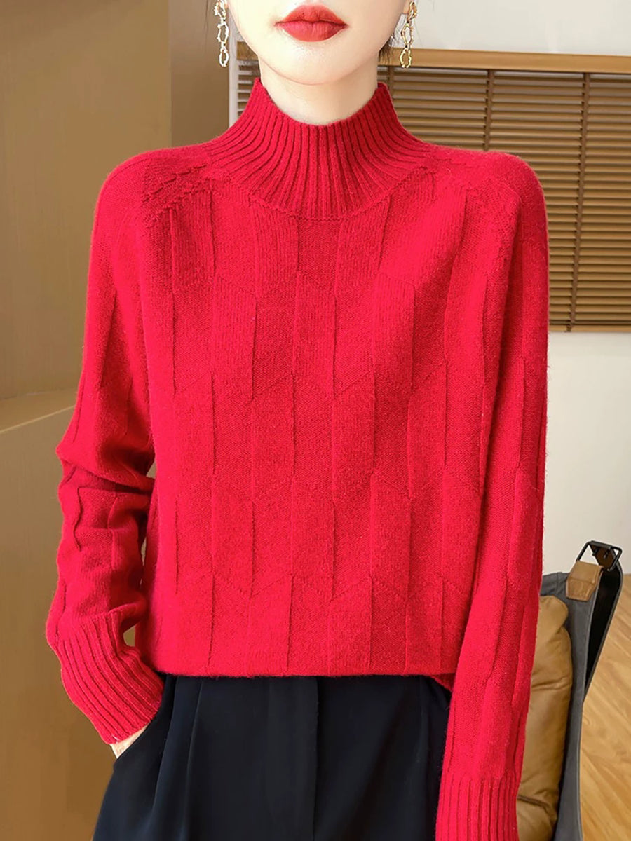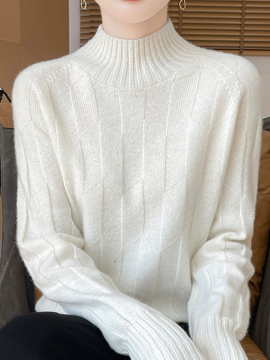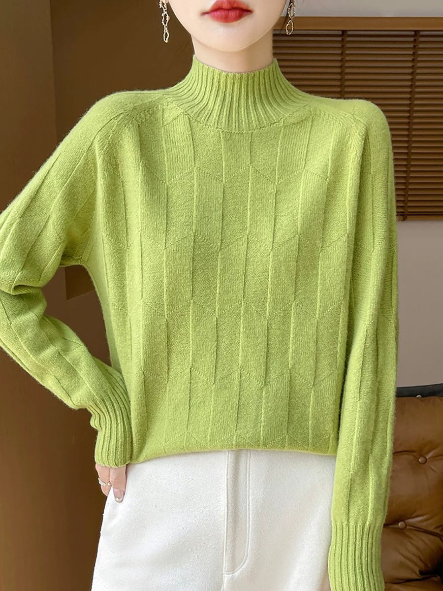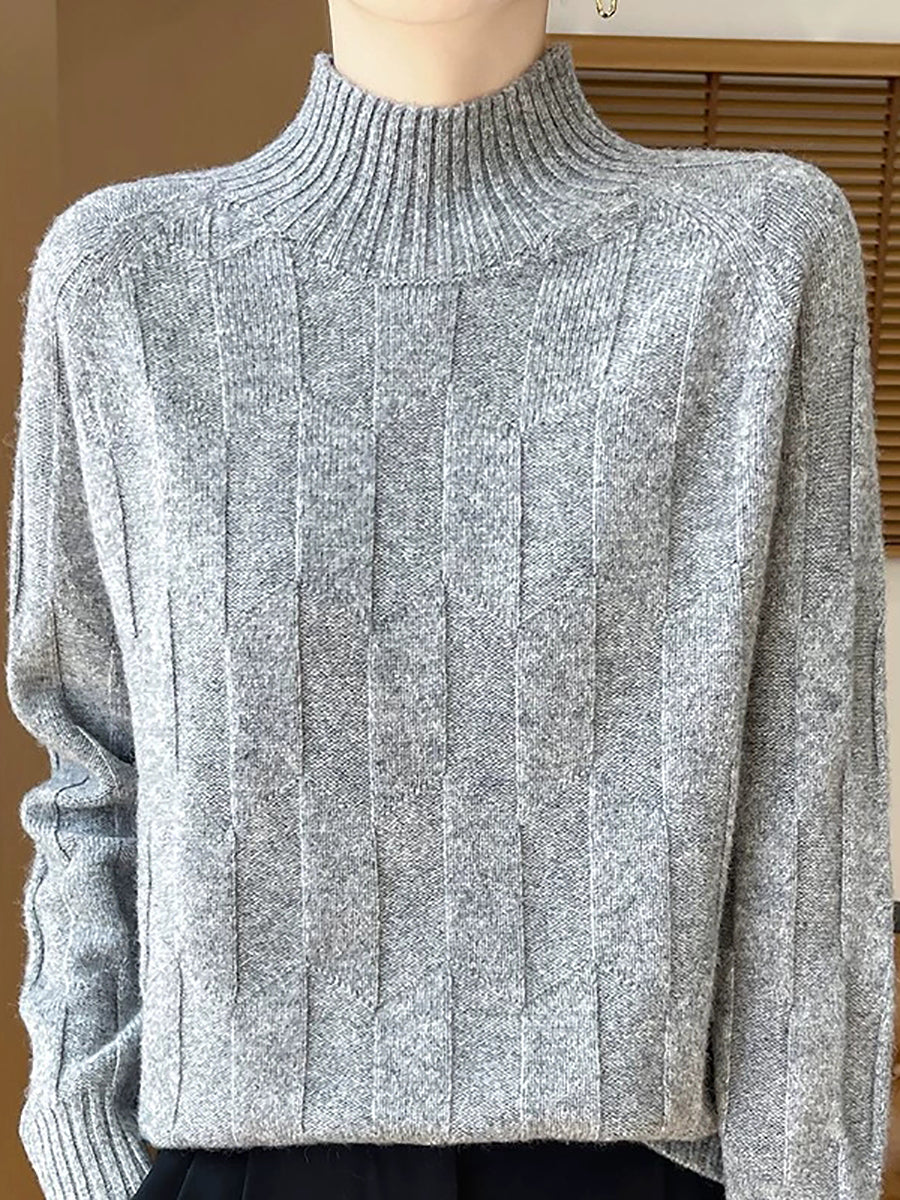 Suéter feminino casual de gola alta e cor lisa para a primavera.
