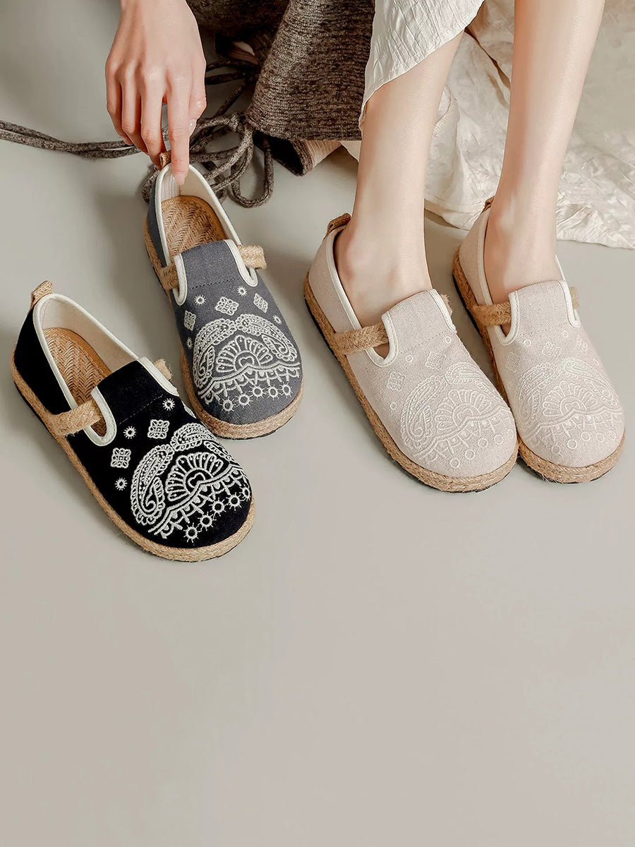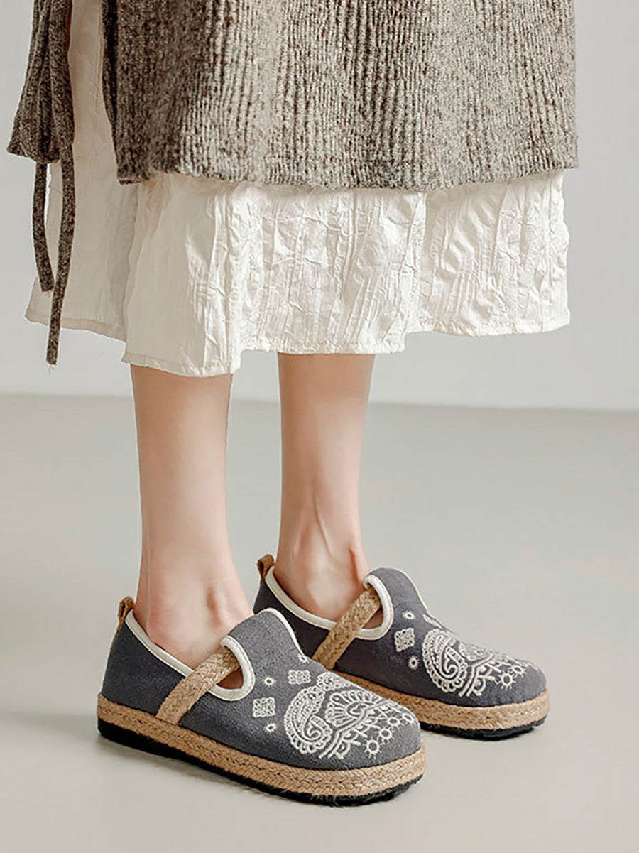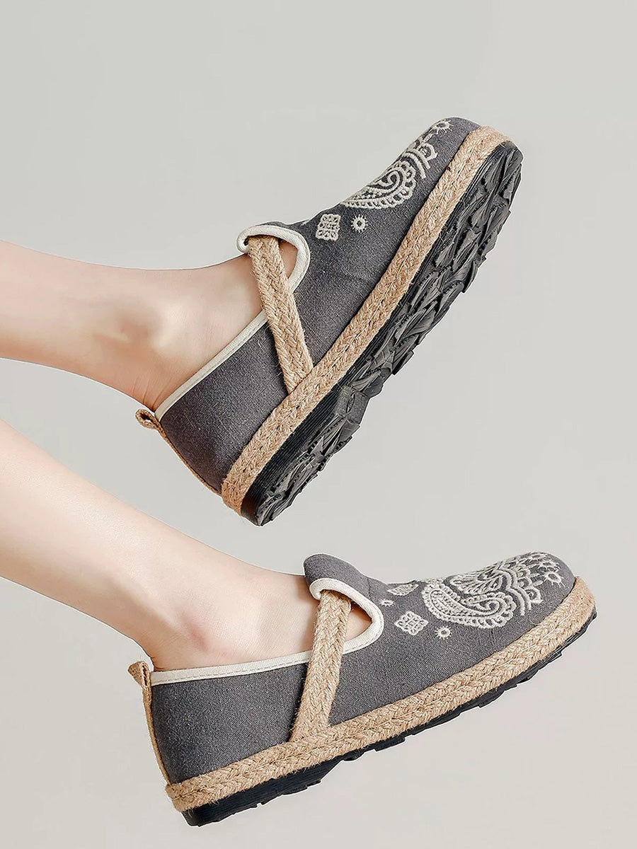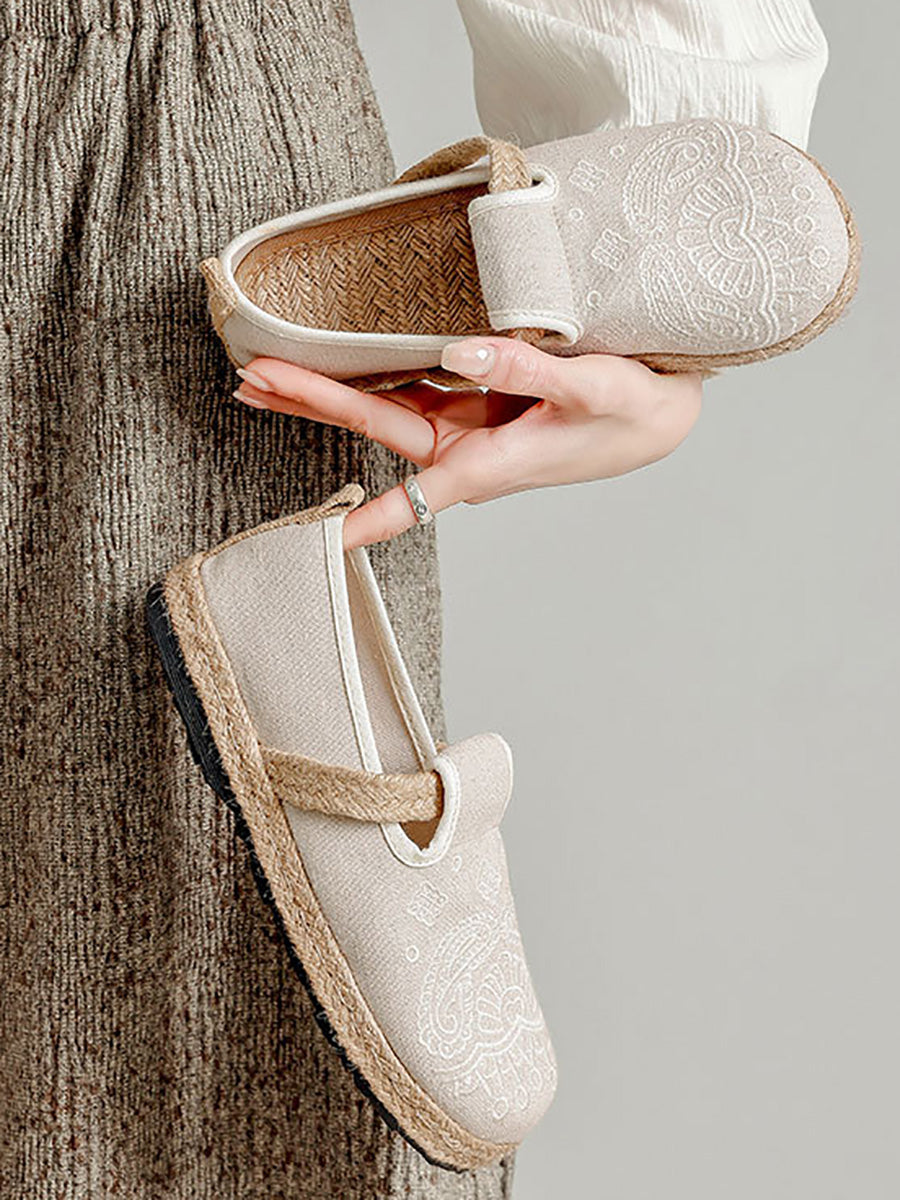 Sapatos femininos de linho com bordado étnico