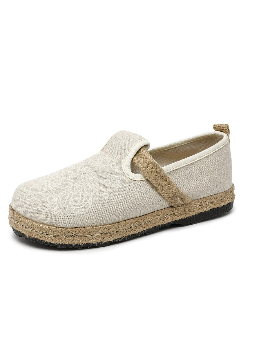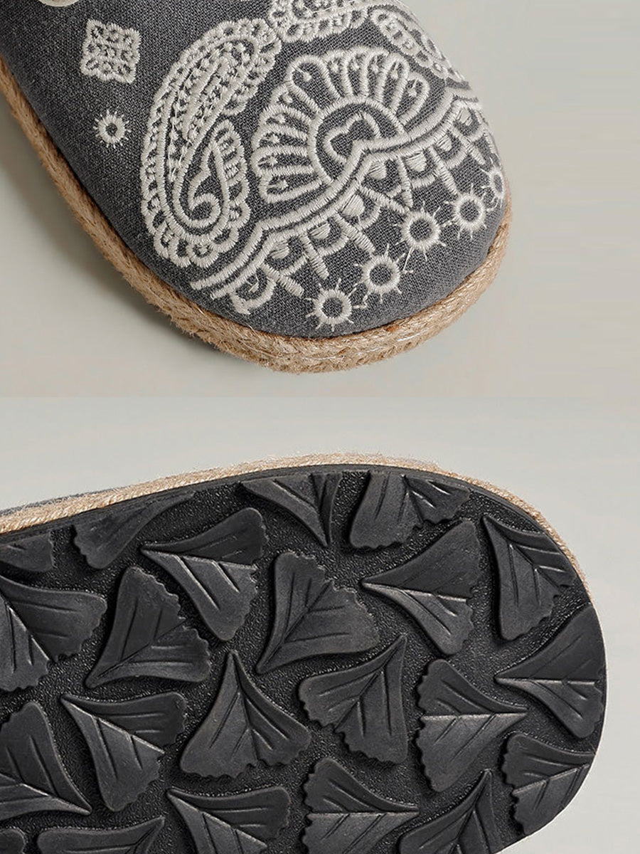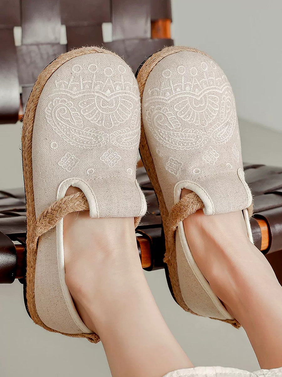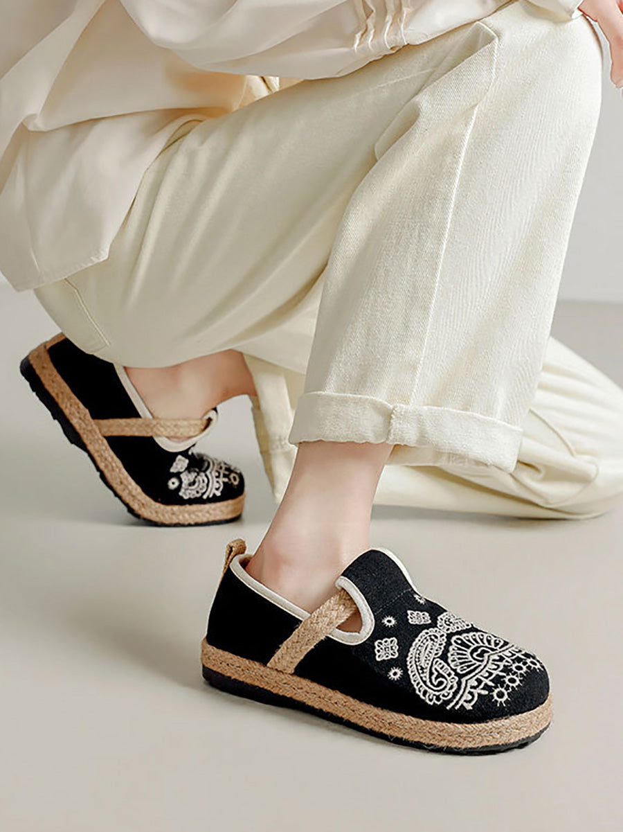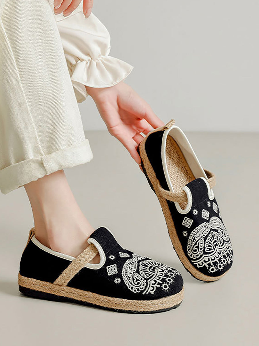 Sapatos femininos de linho com bordado étnico