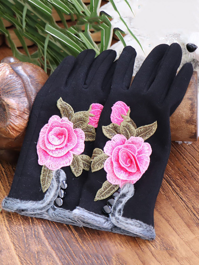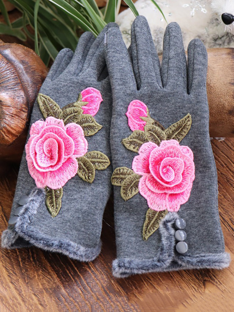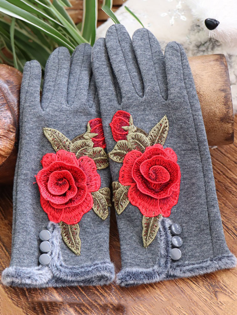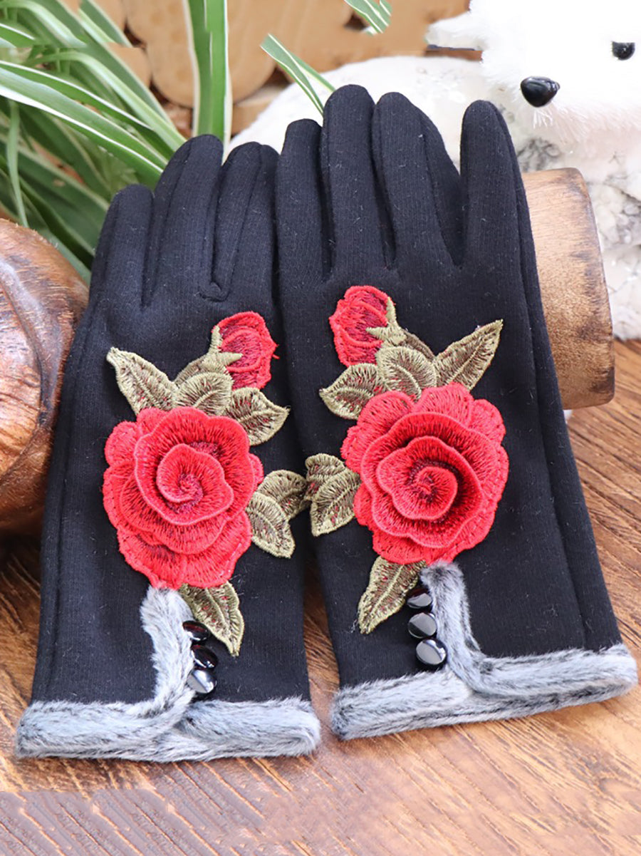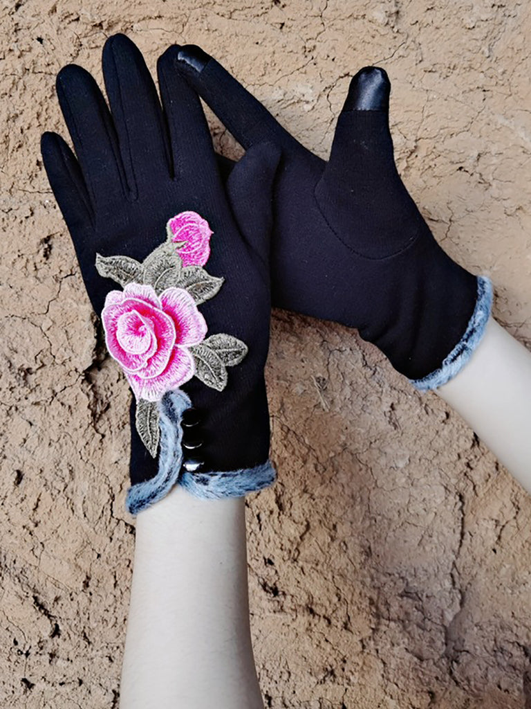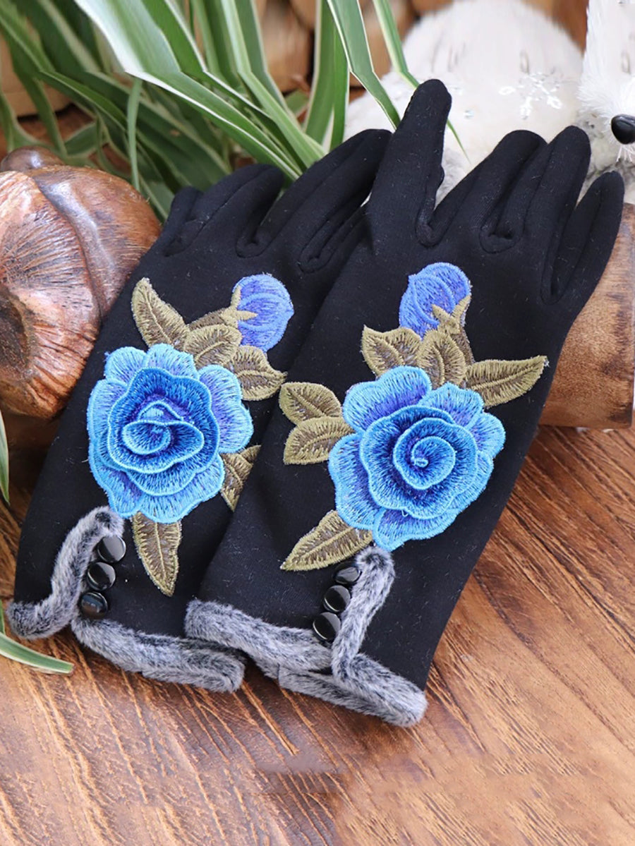 Luvas femininas étnicas de inverno com bordado e forro de lã.