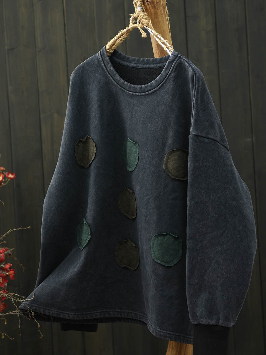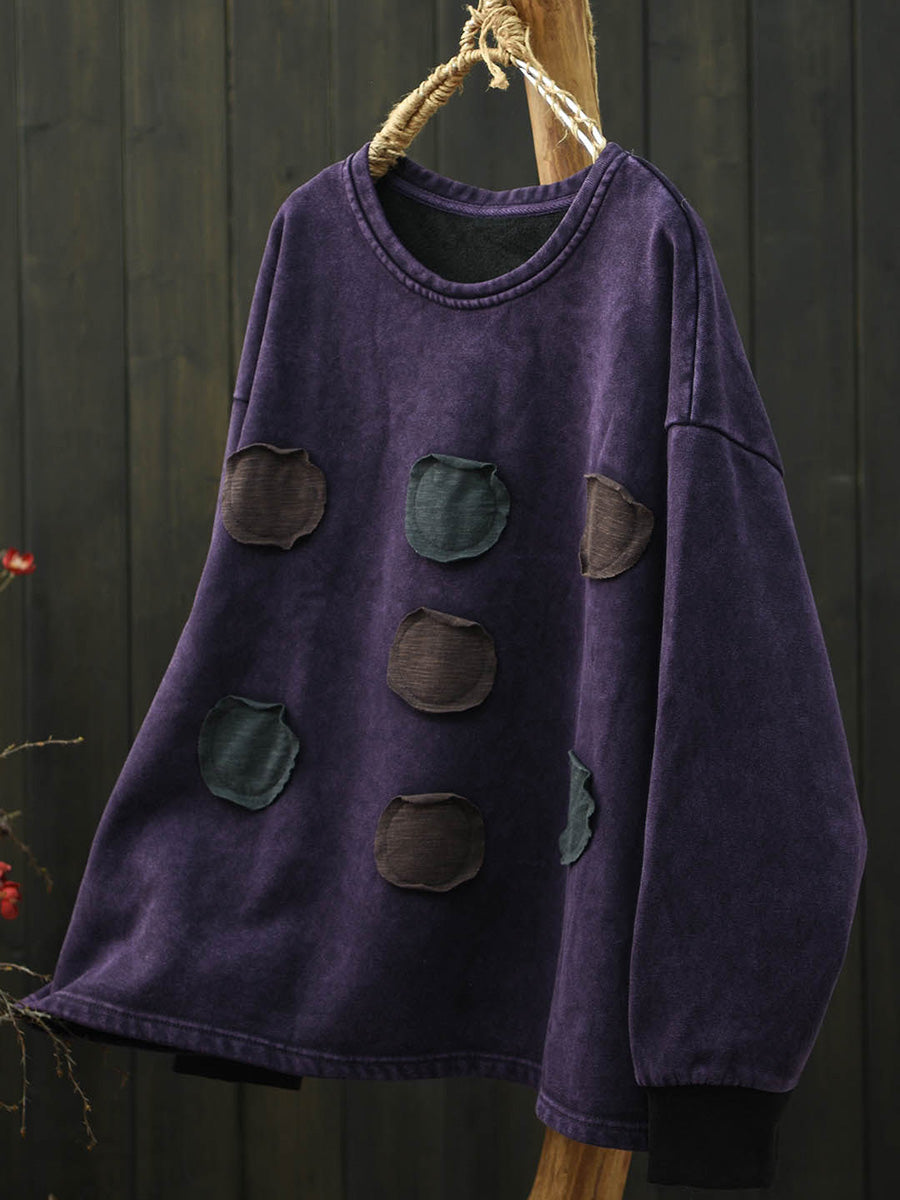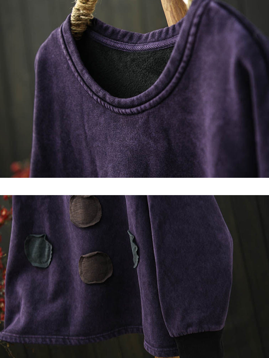Blusa feminina retrô de outono com patchwork, forro de lã e gola redonda.