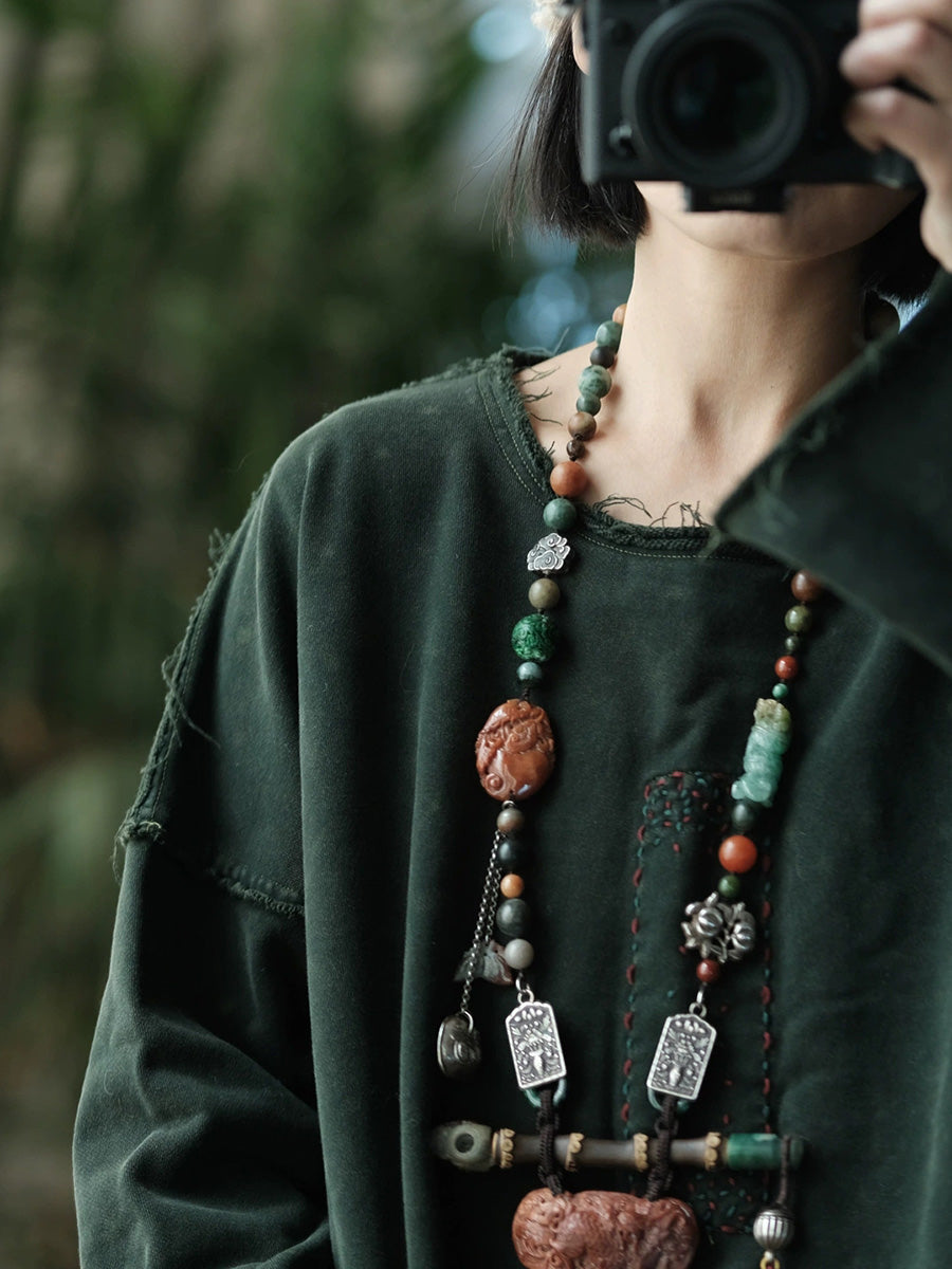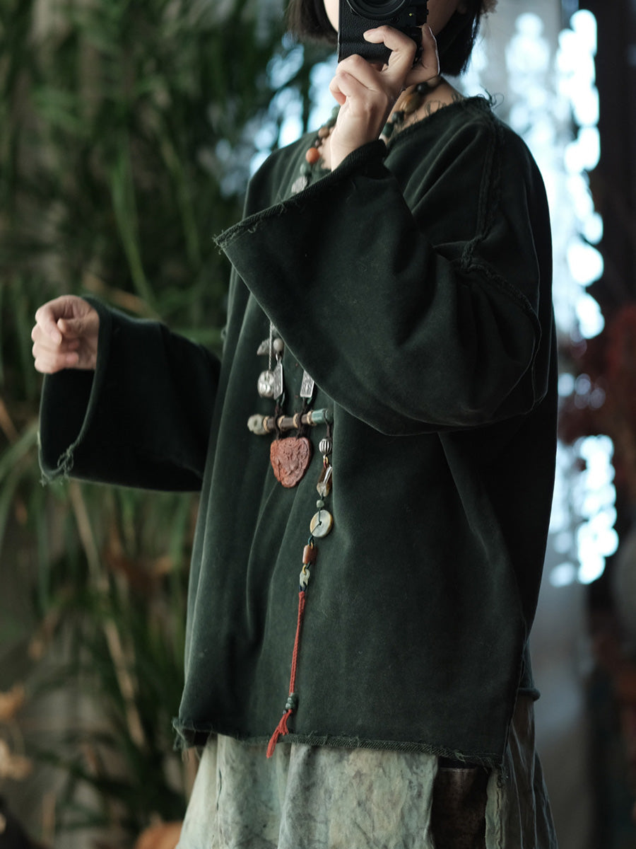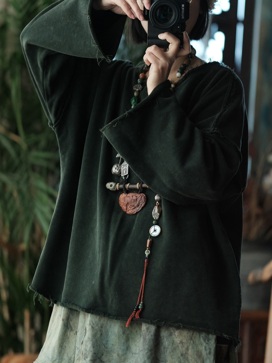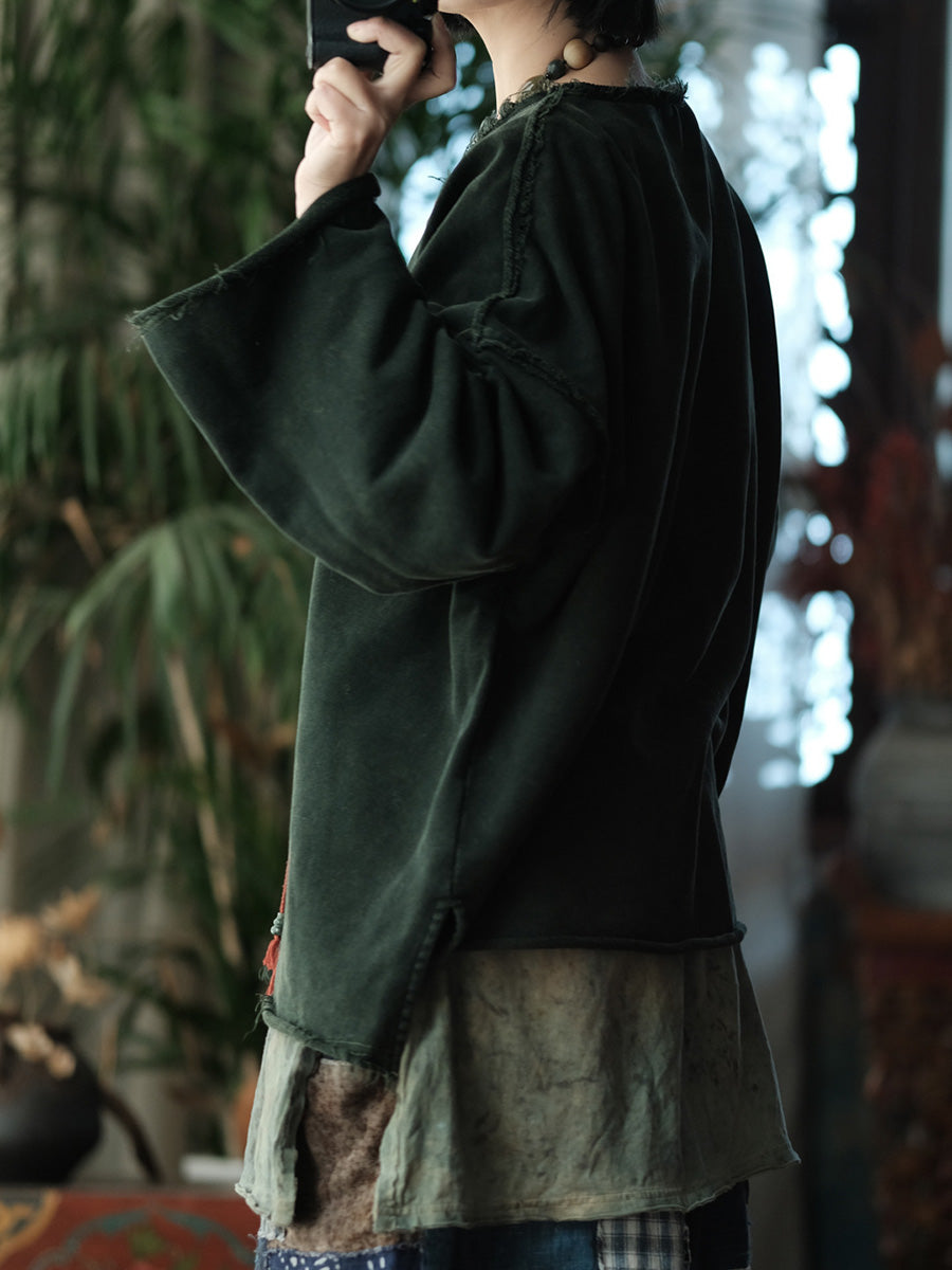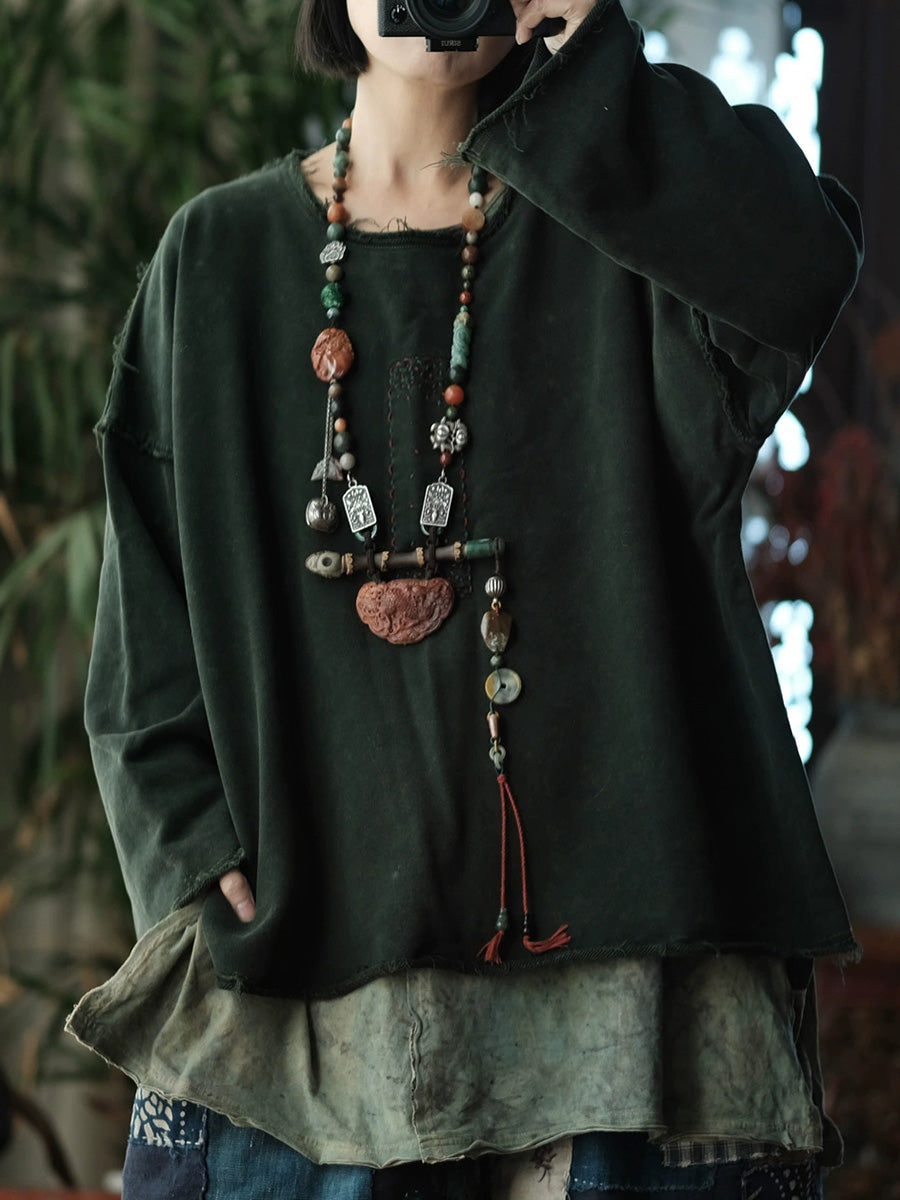 Blusa feminina retrô de primavera em algodão puro com decote redondo.