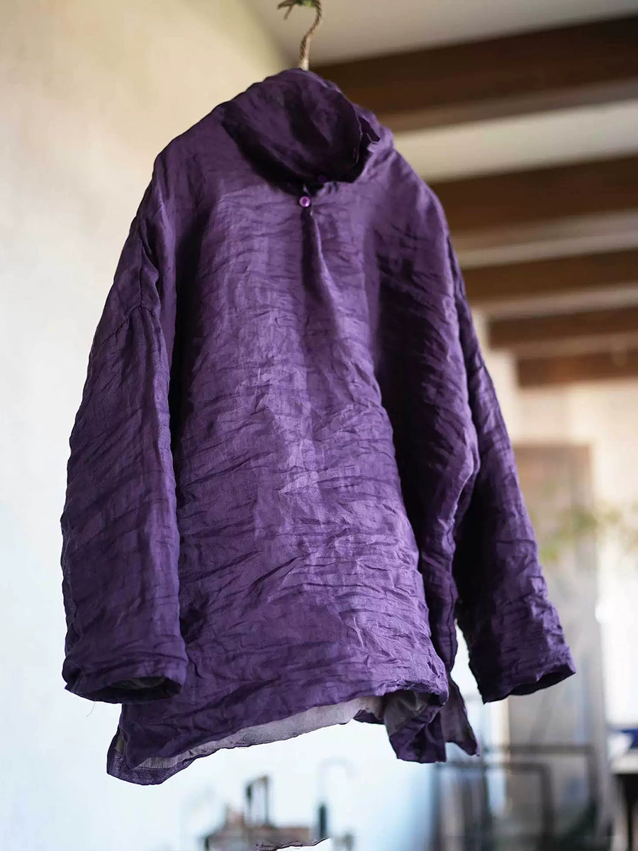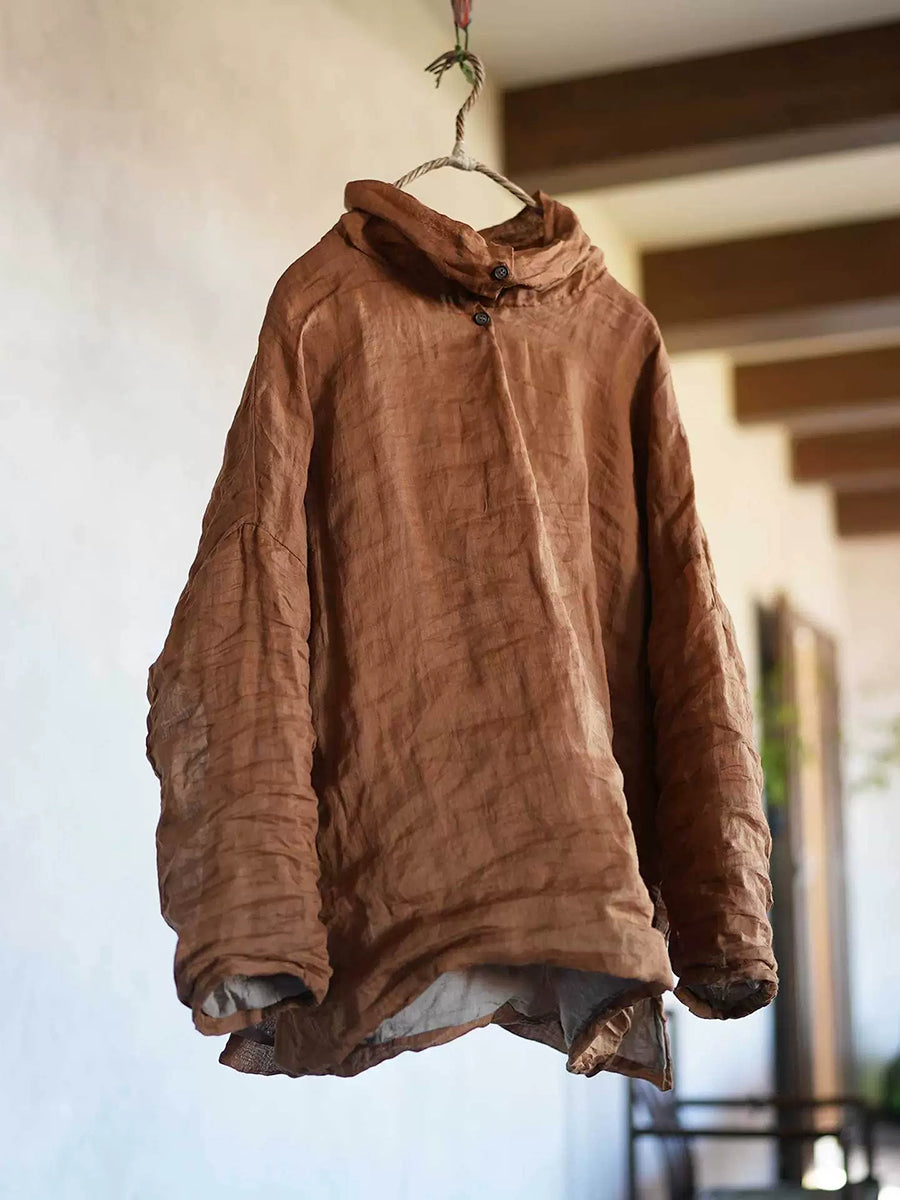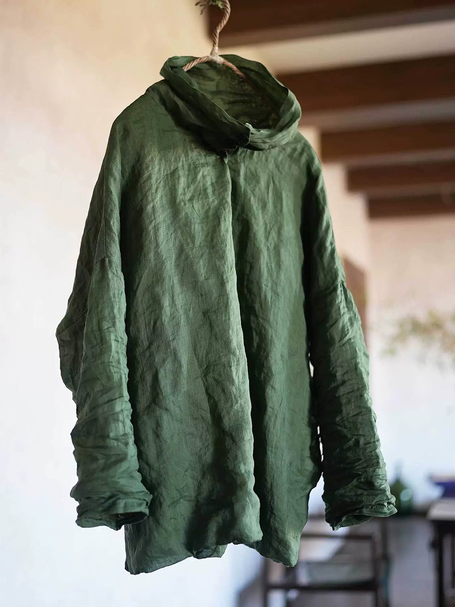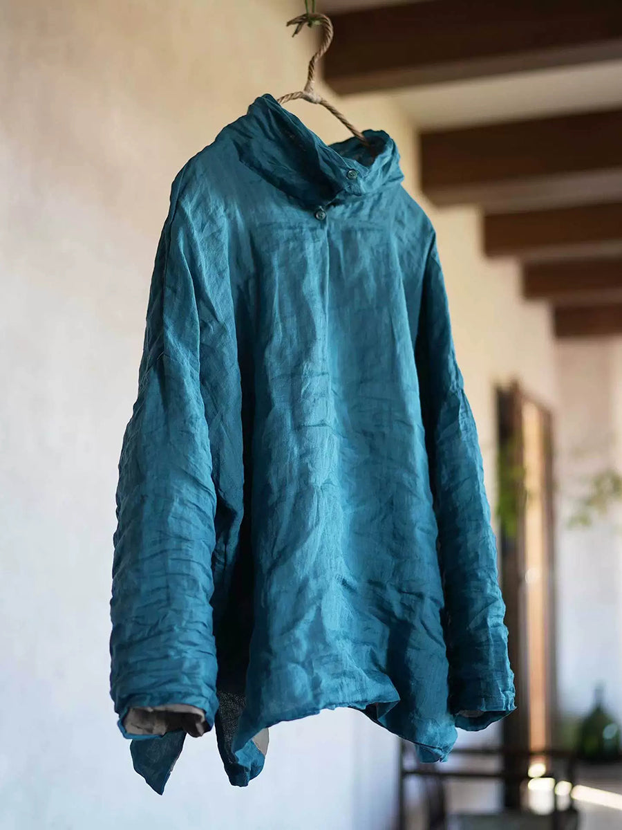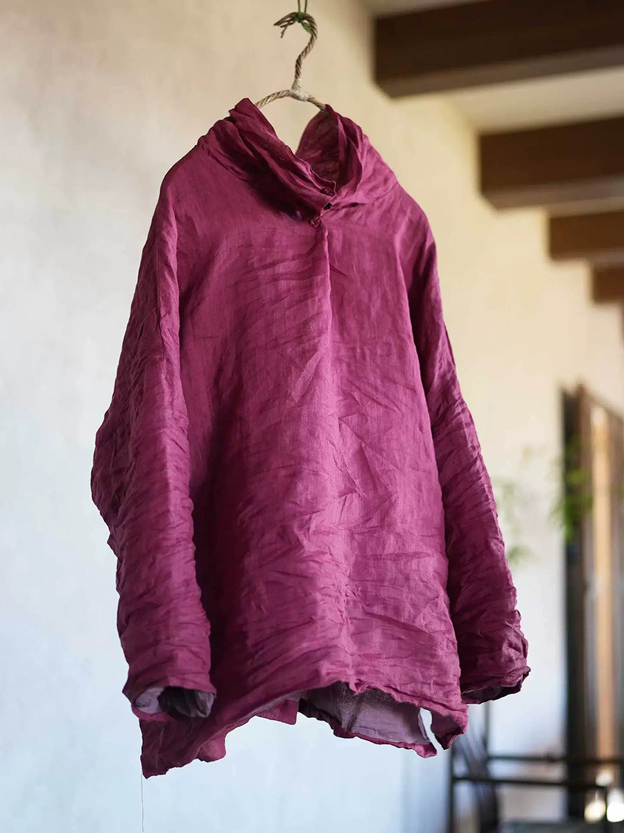 Blusa feminina retrô de gola alta em rami de cor lisa para primavera