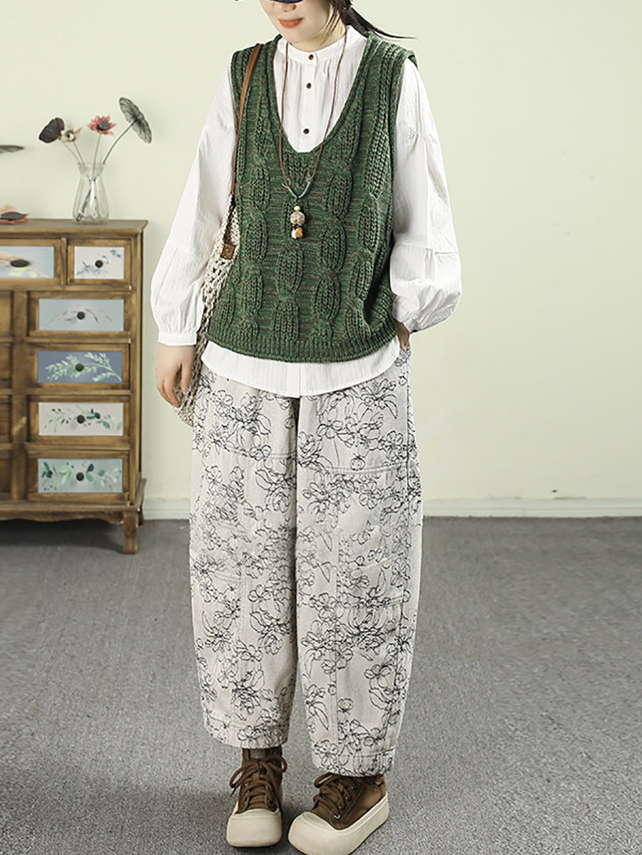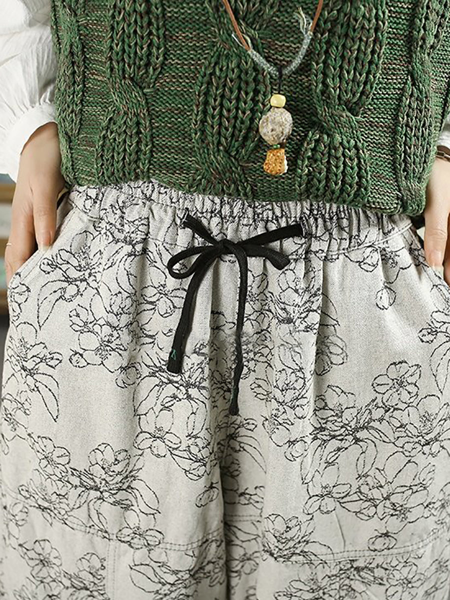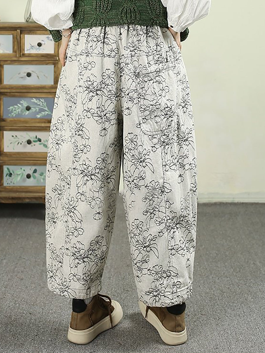 Calça Harem Feminina de Jeans Floral Estilo Artístico para a Primavera