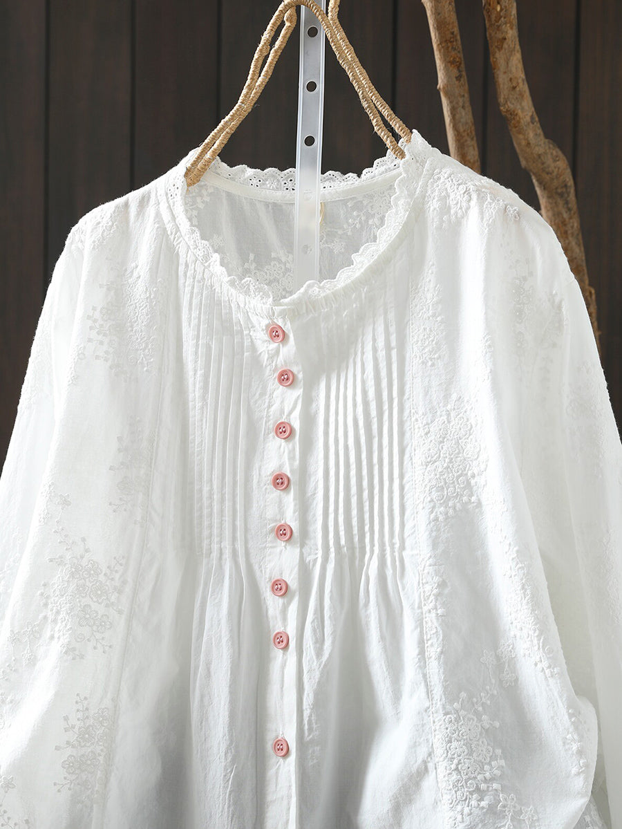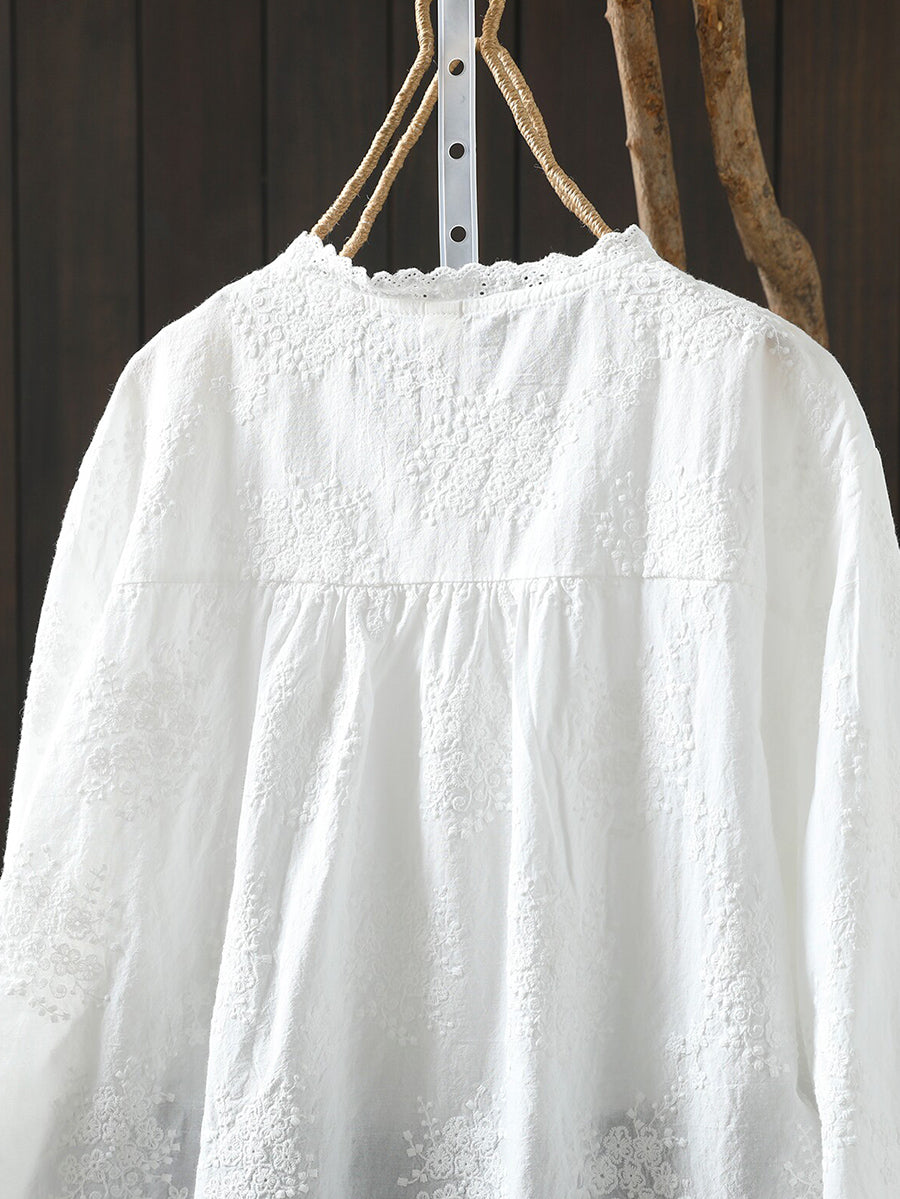 Camisa feminina de primavera com bordado artístico, 100% algodão.