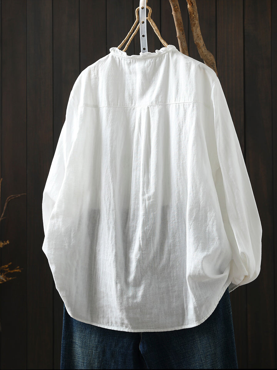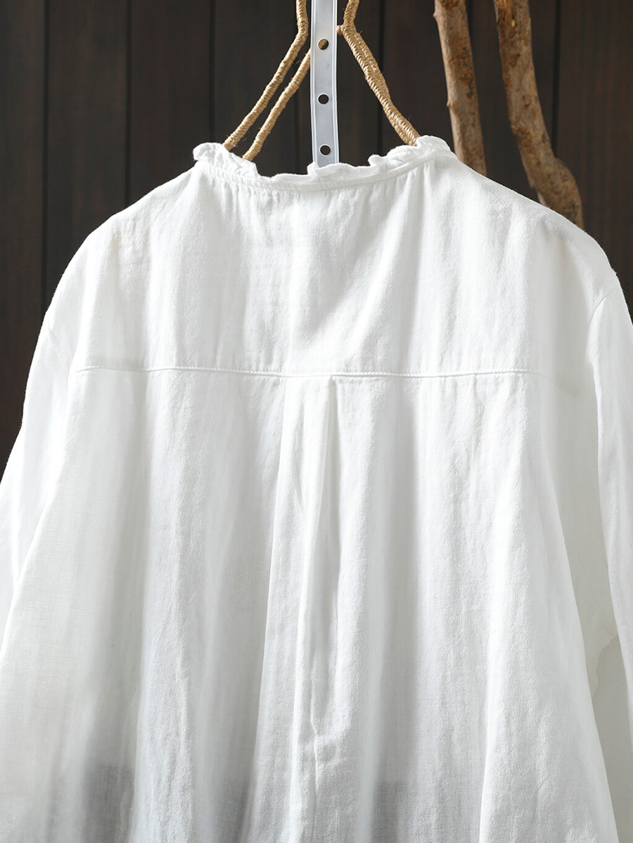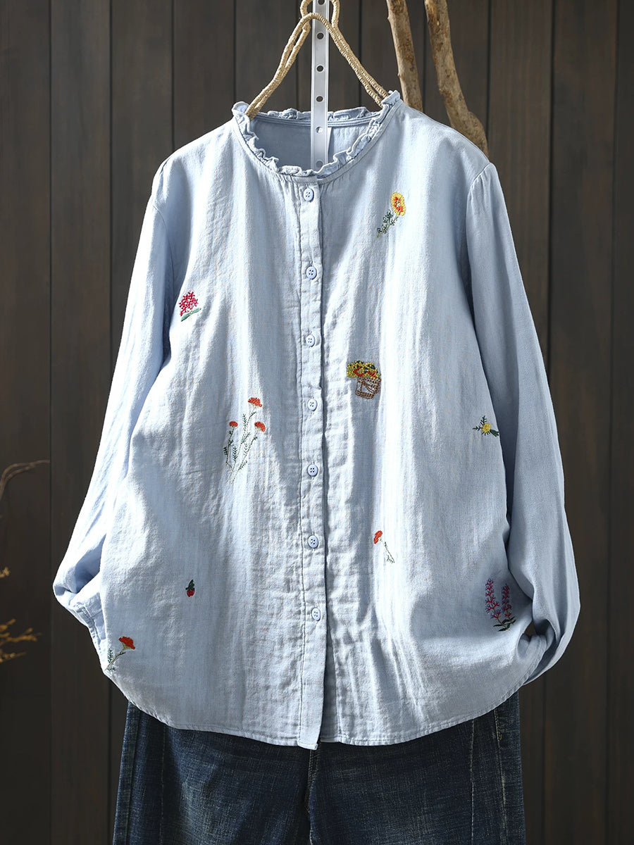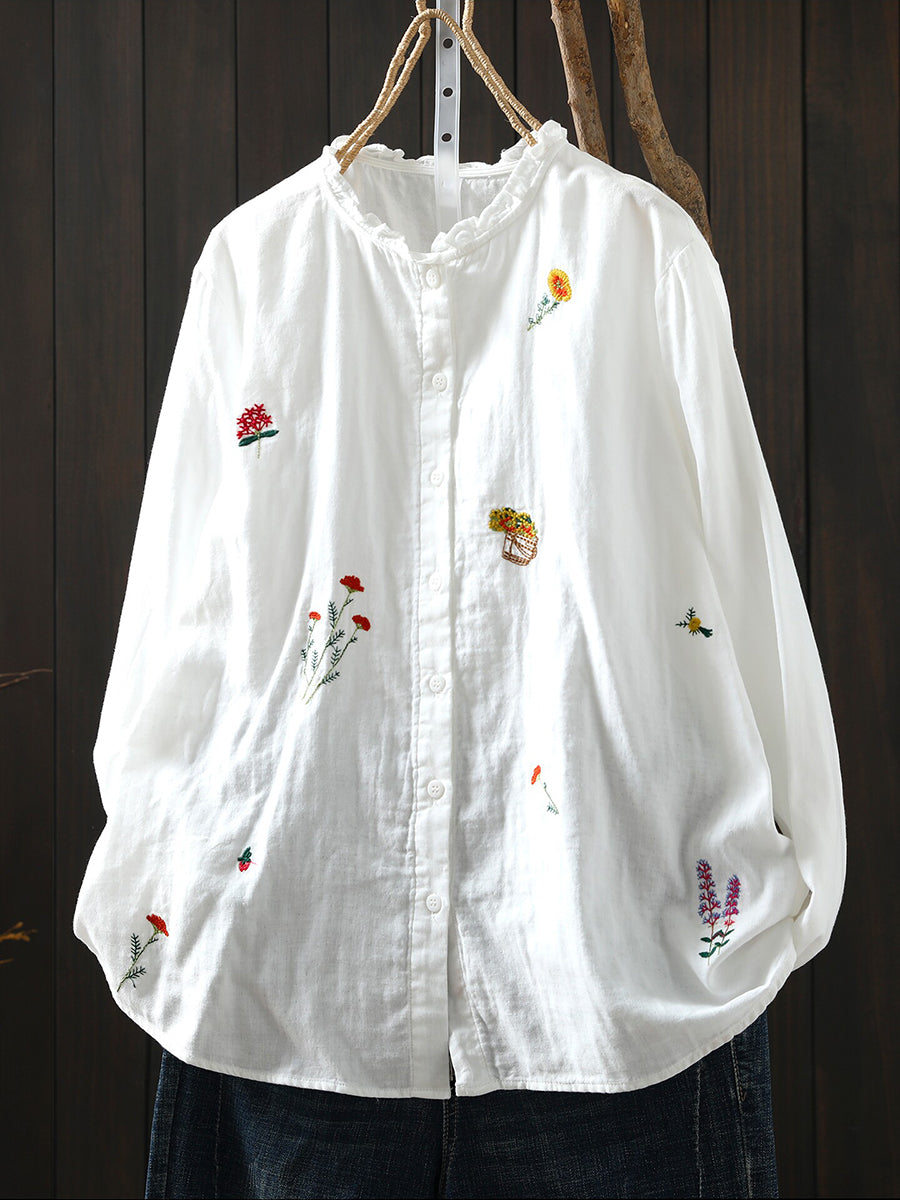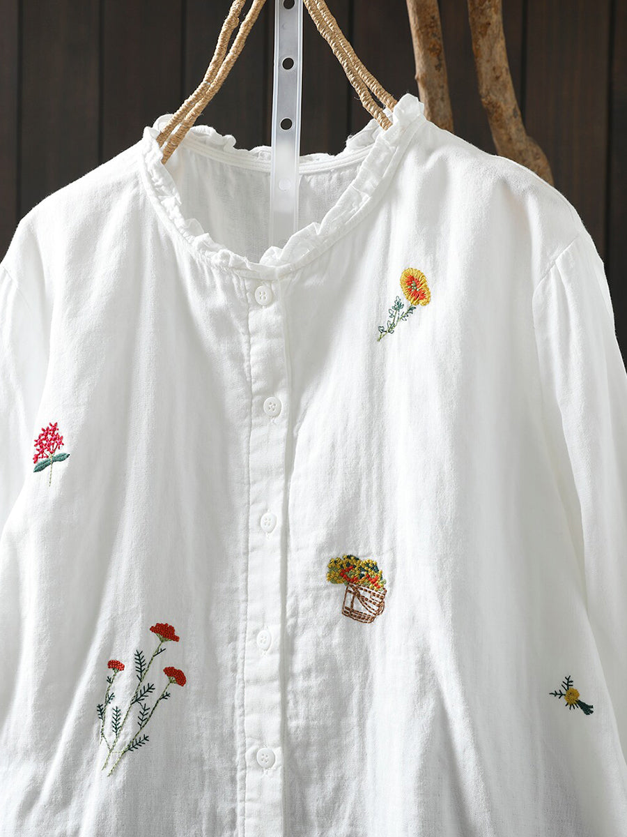 Camisa feminina de algodão 100% com bordado floral artístico para a primavera
