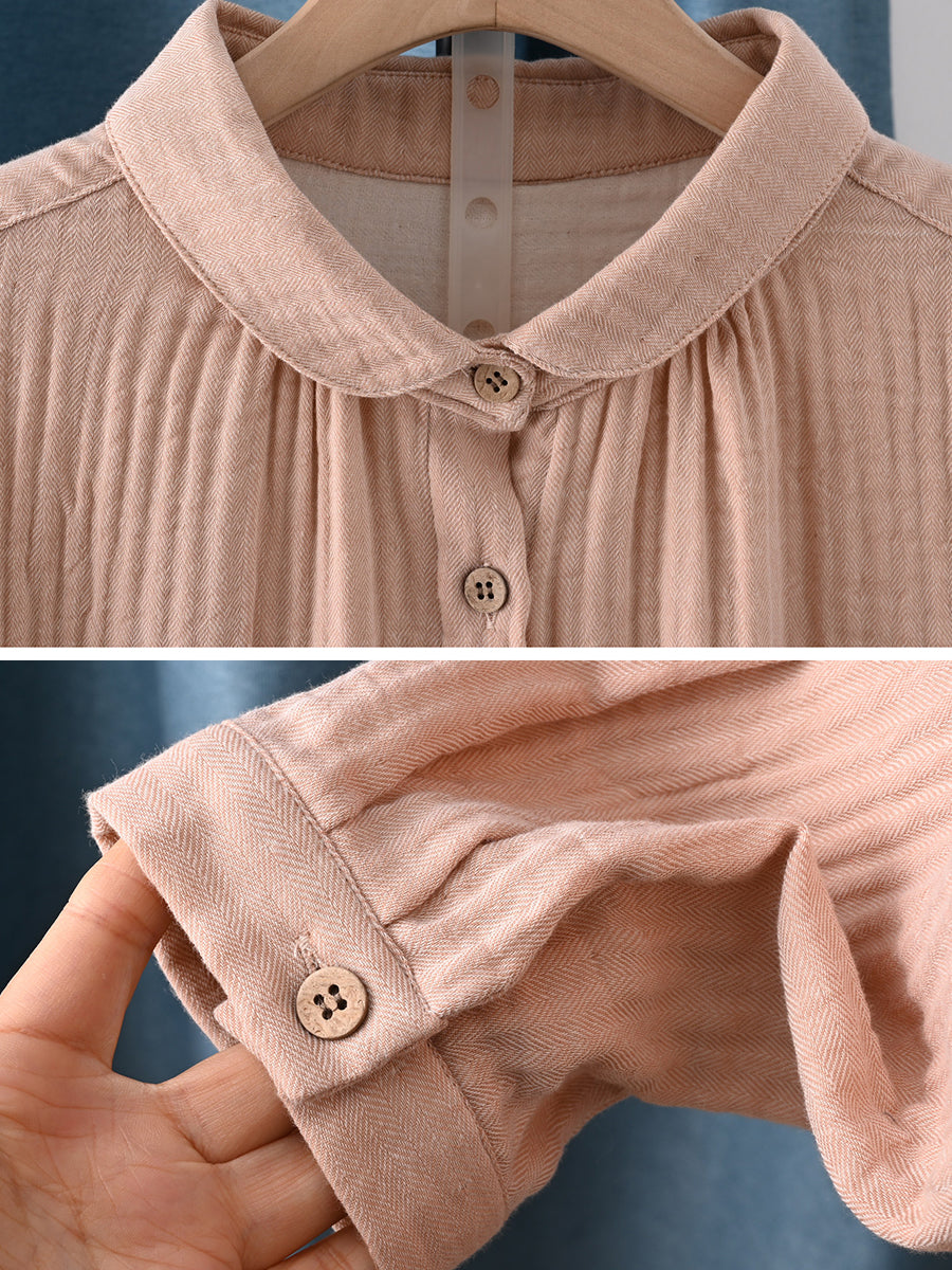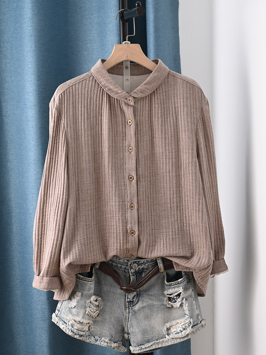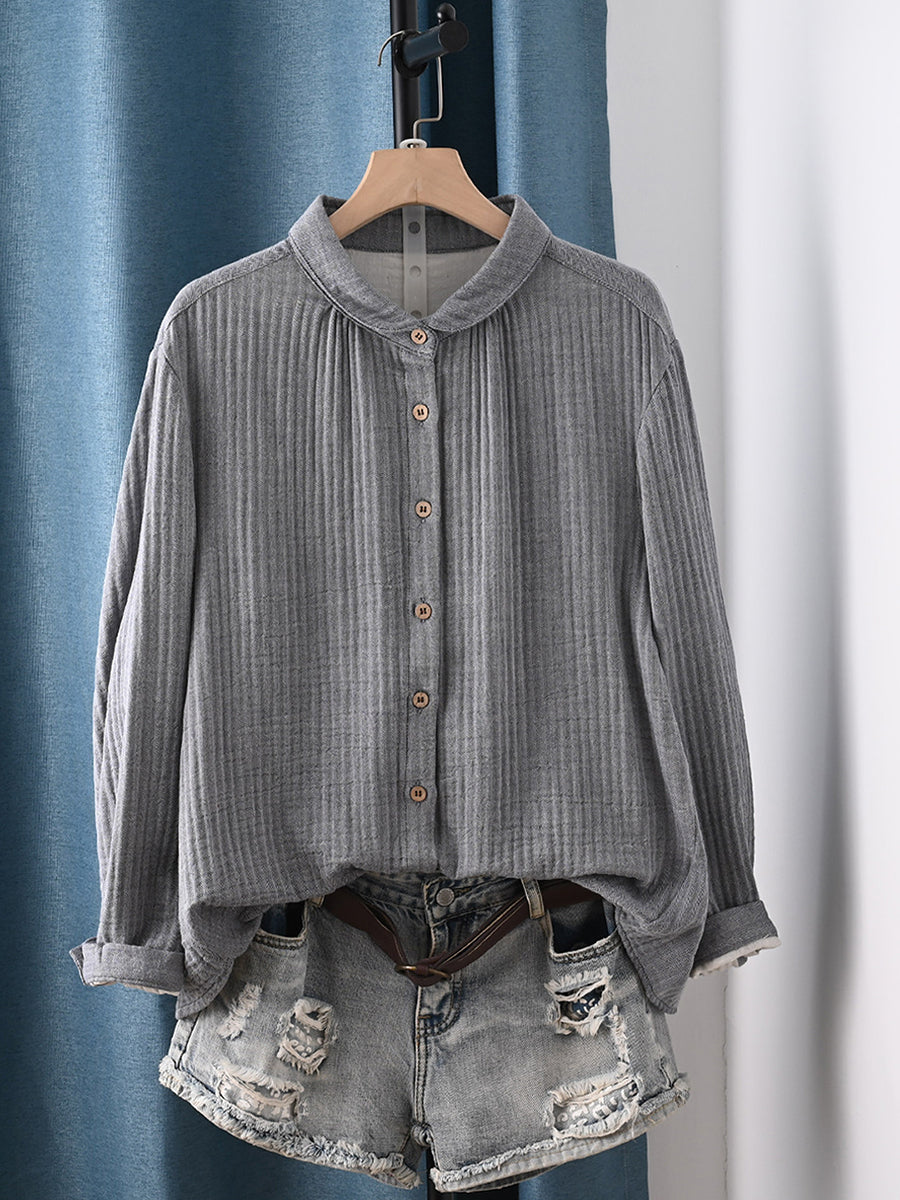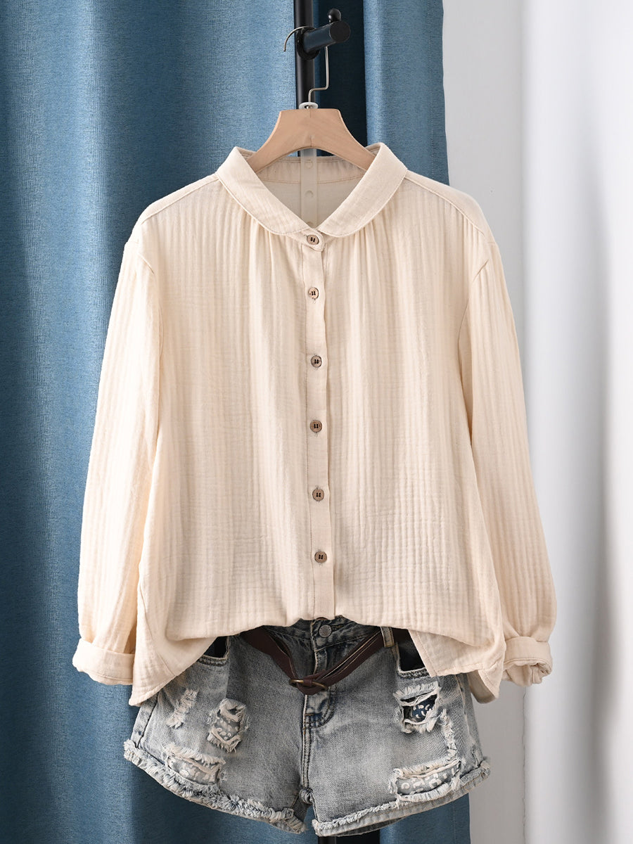 Camisa feminina de algodão 100% com estampa artística de primavera em cores puras.