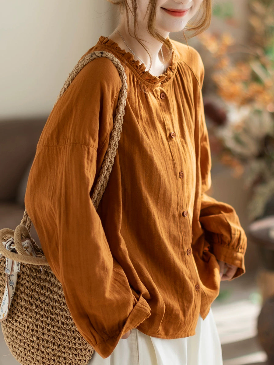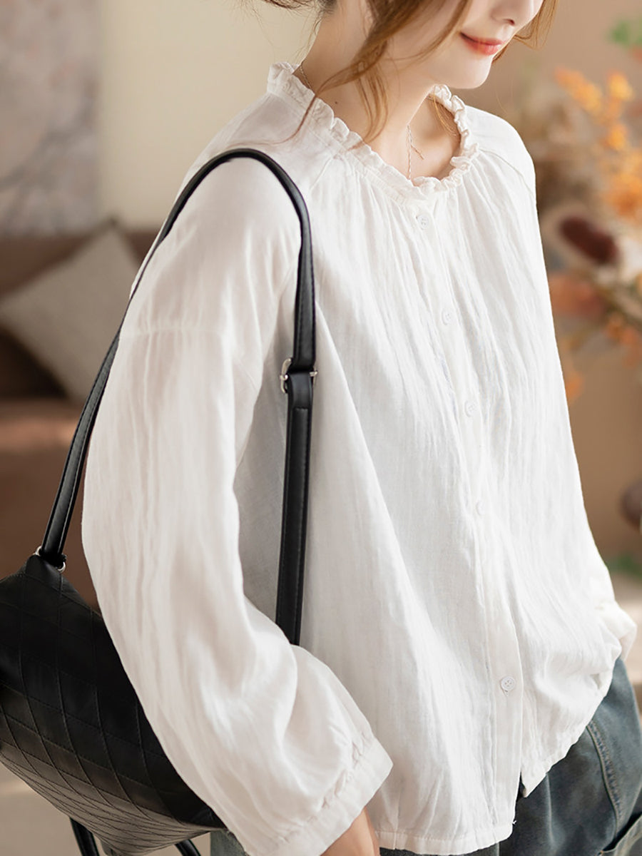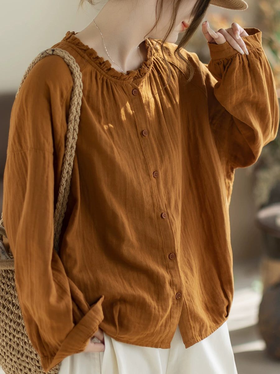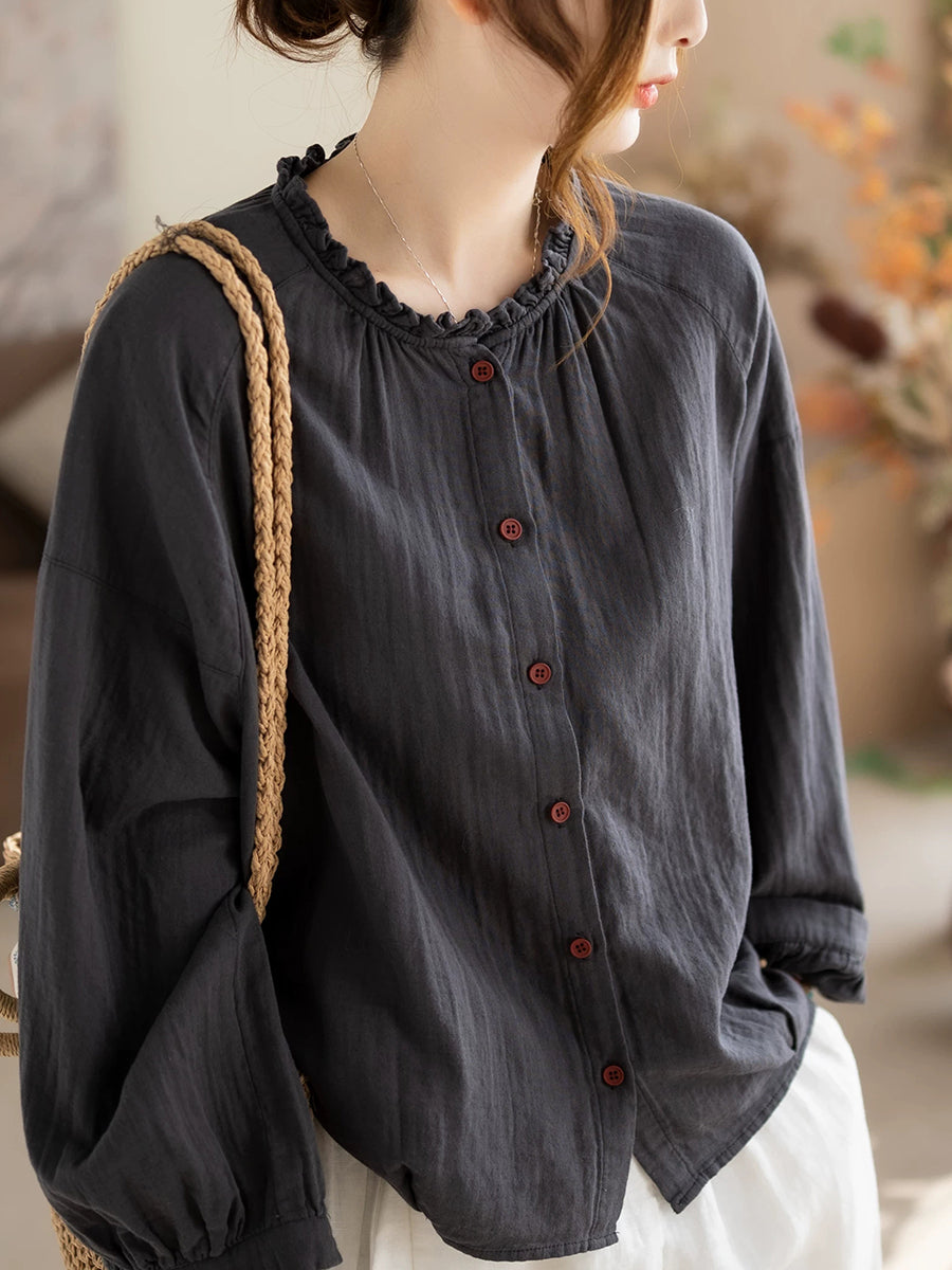 Blusa feminina de cor lisa com estilo artístico para a primavera