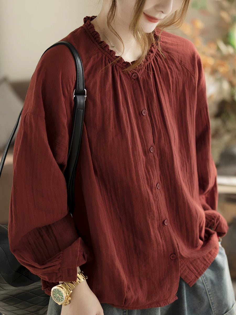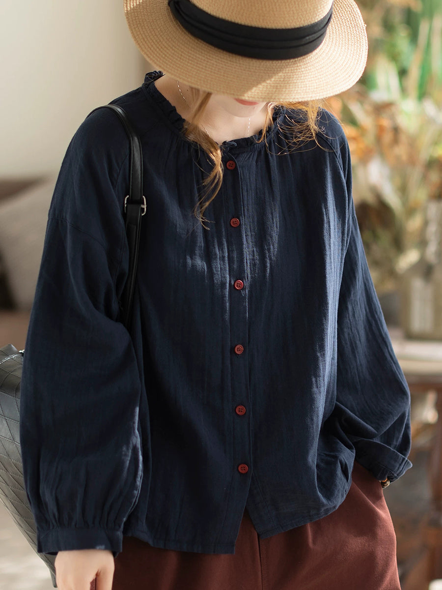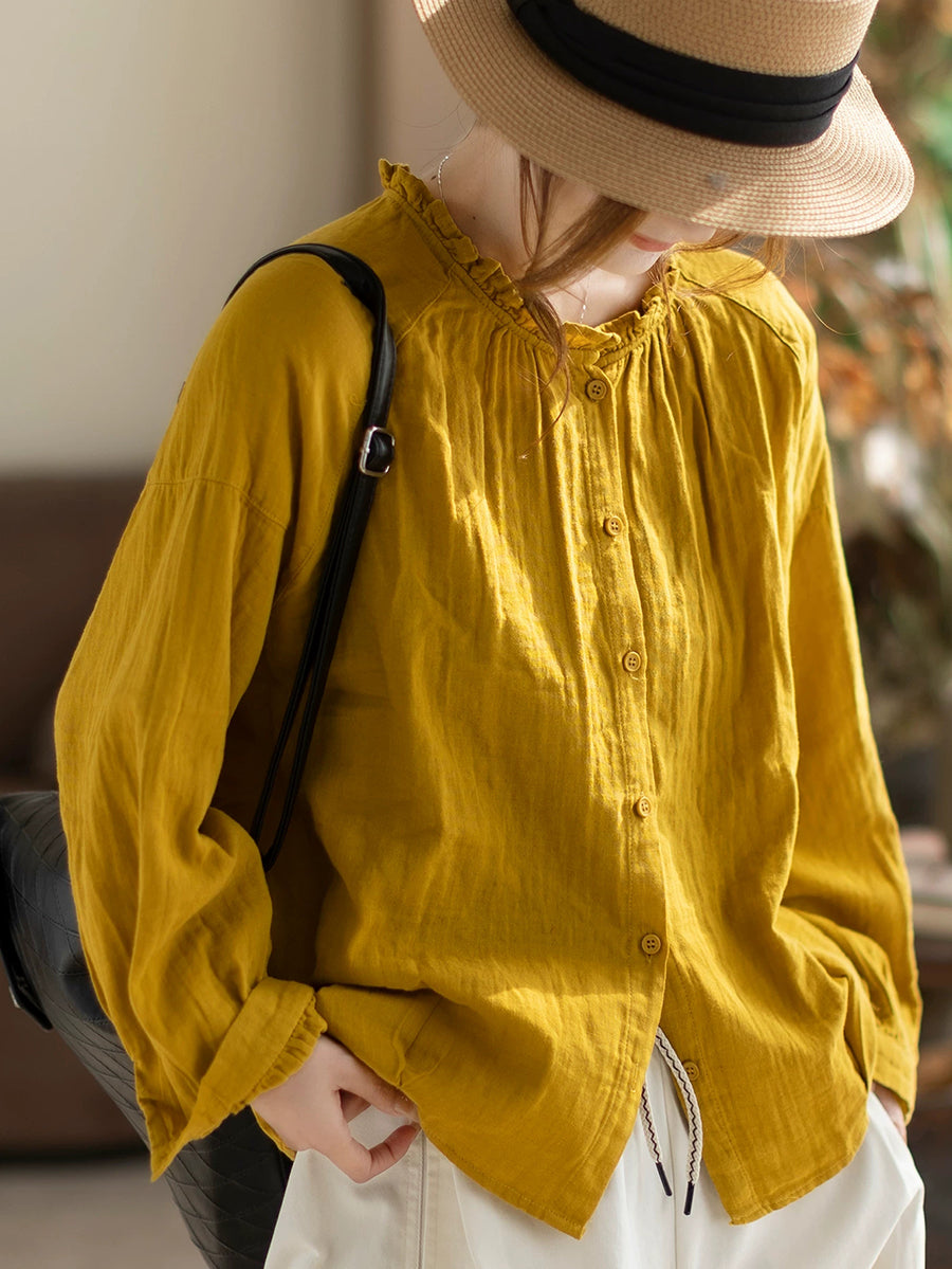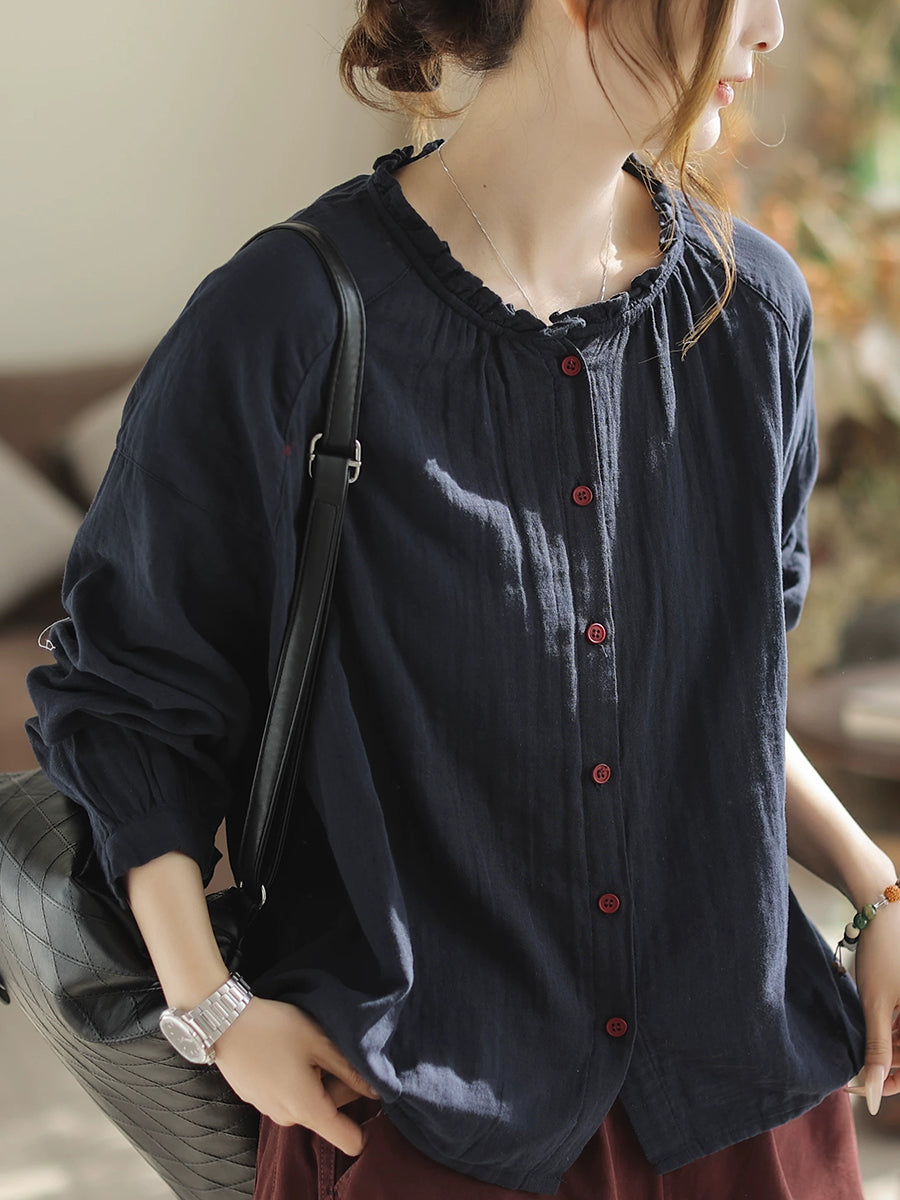 Blusa feminina de cor lisa com estilo artístico para a primavera