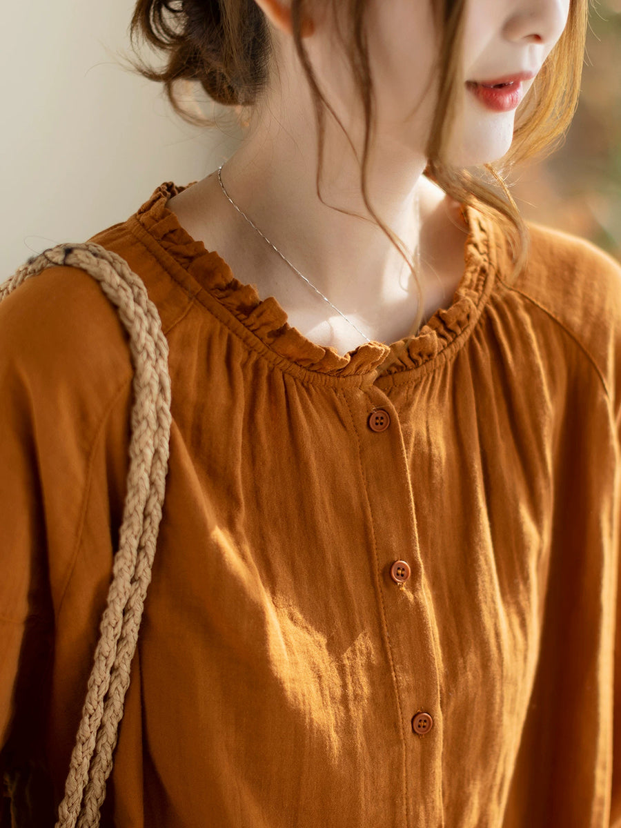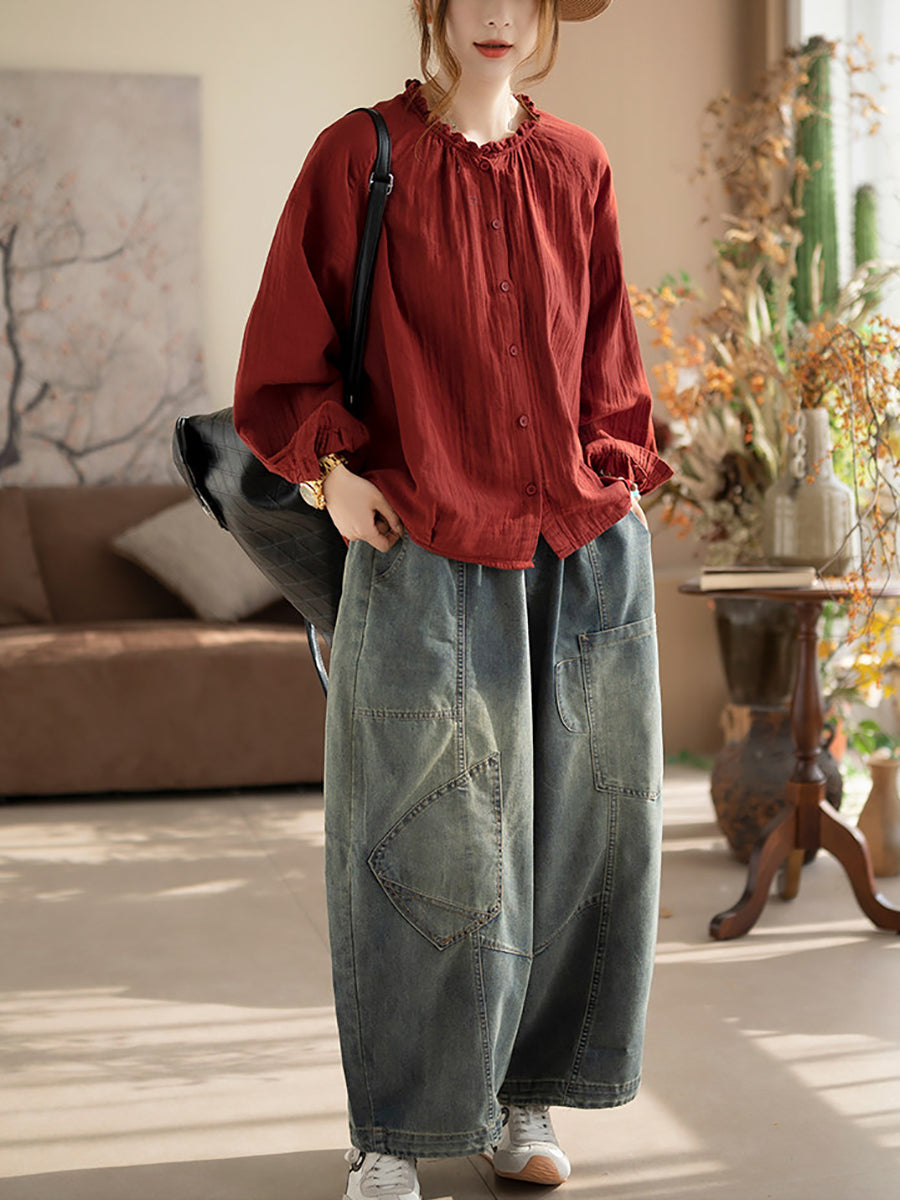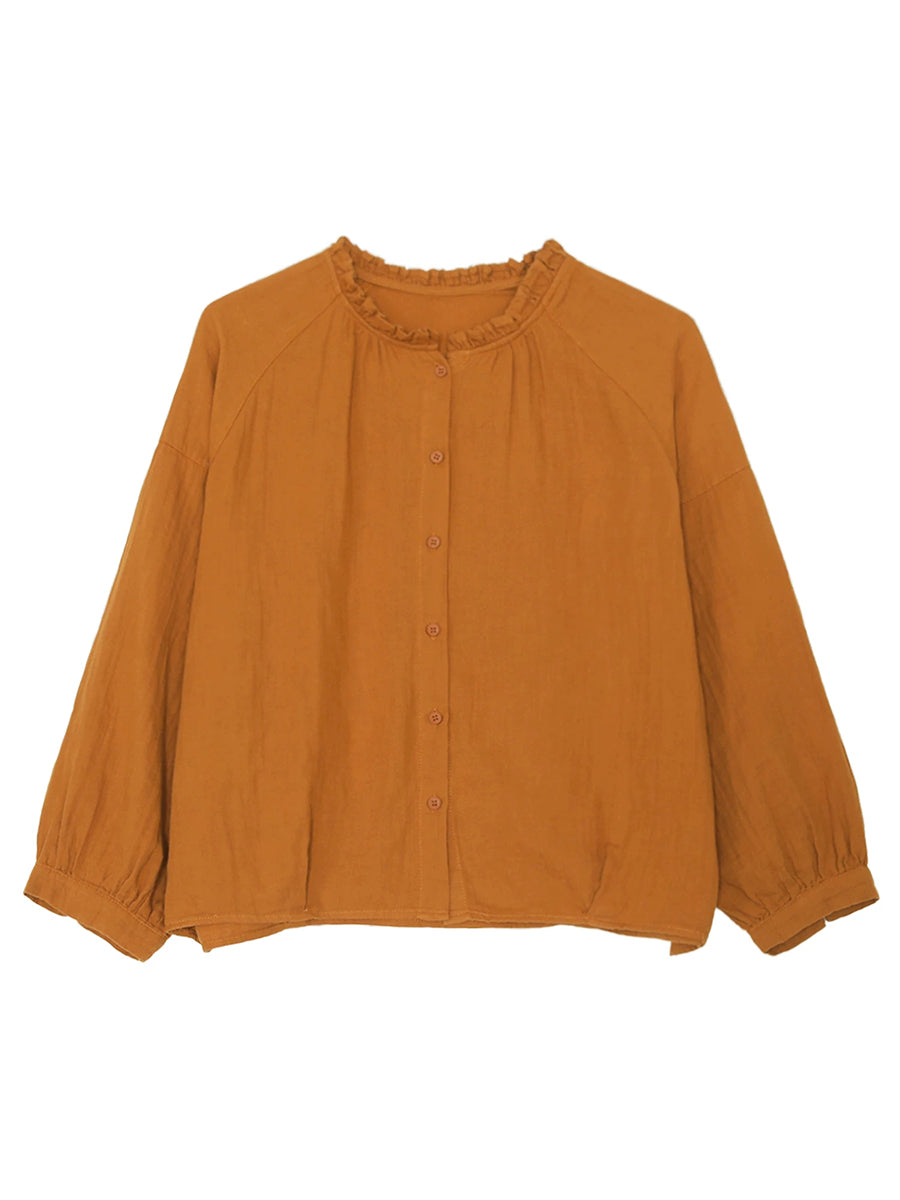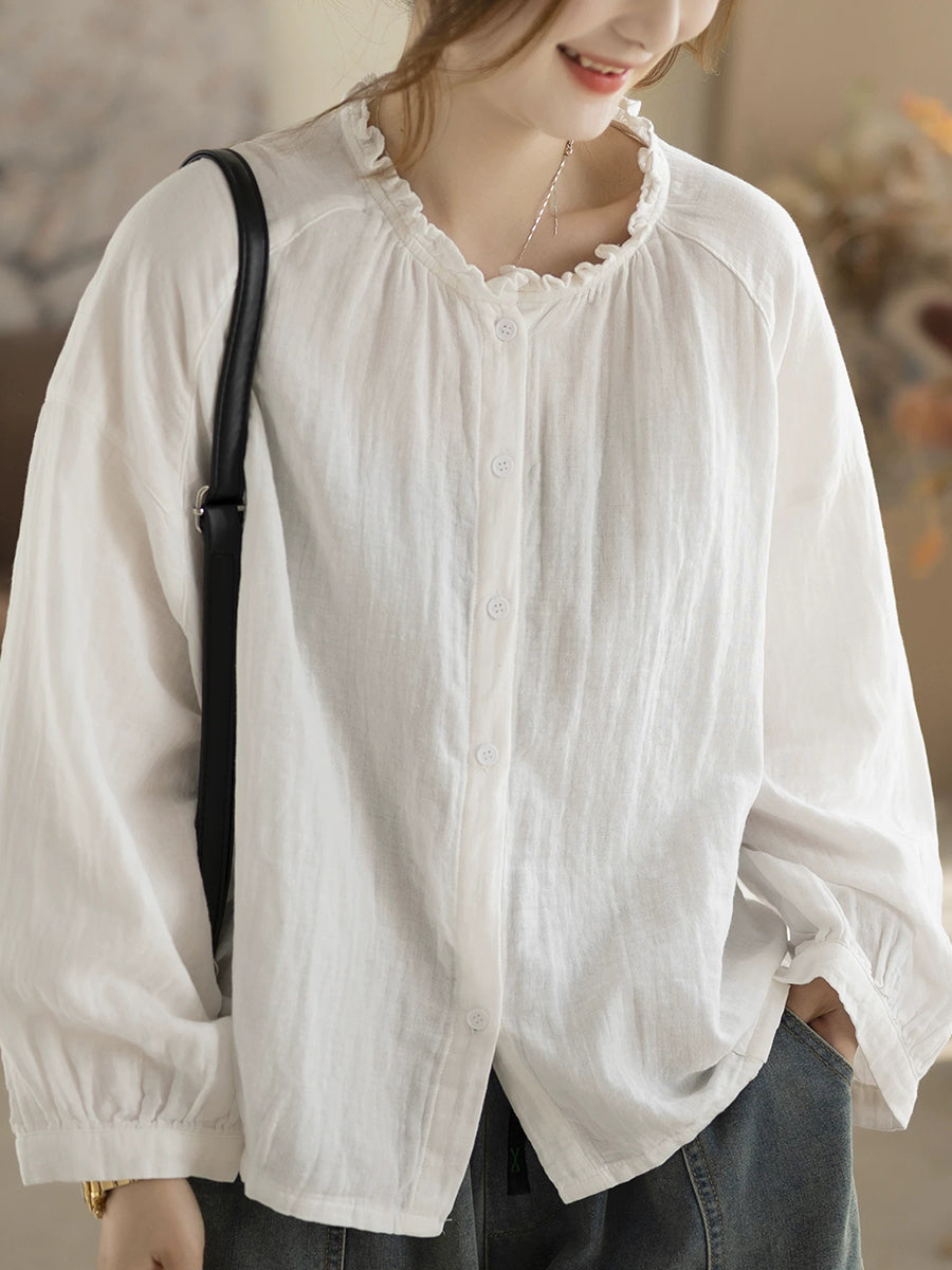 Blusa feminina de cor lisa com estilo artístico para a primavera