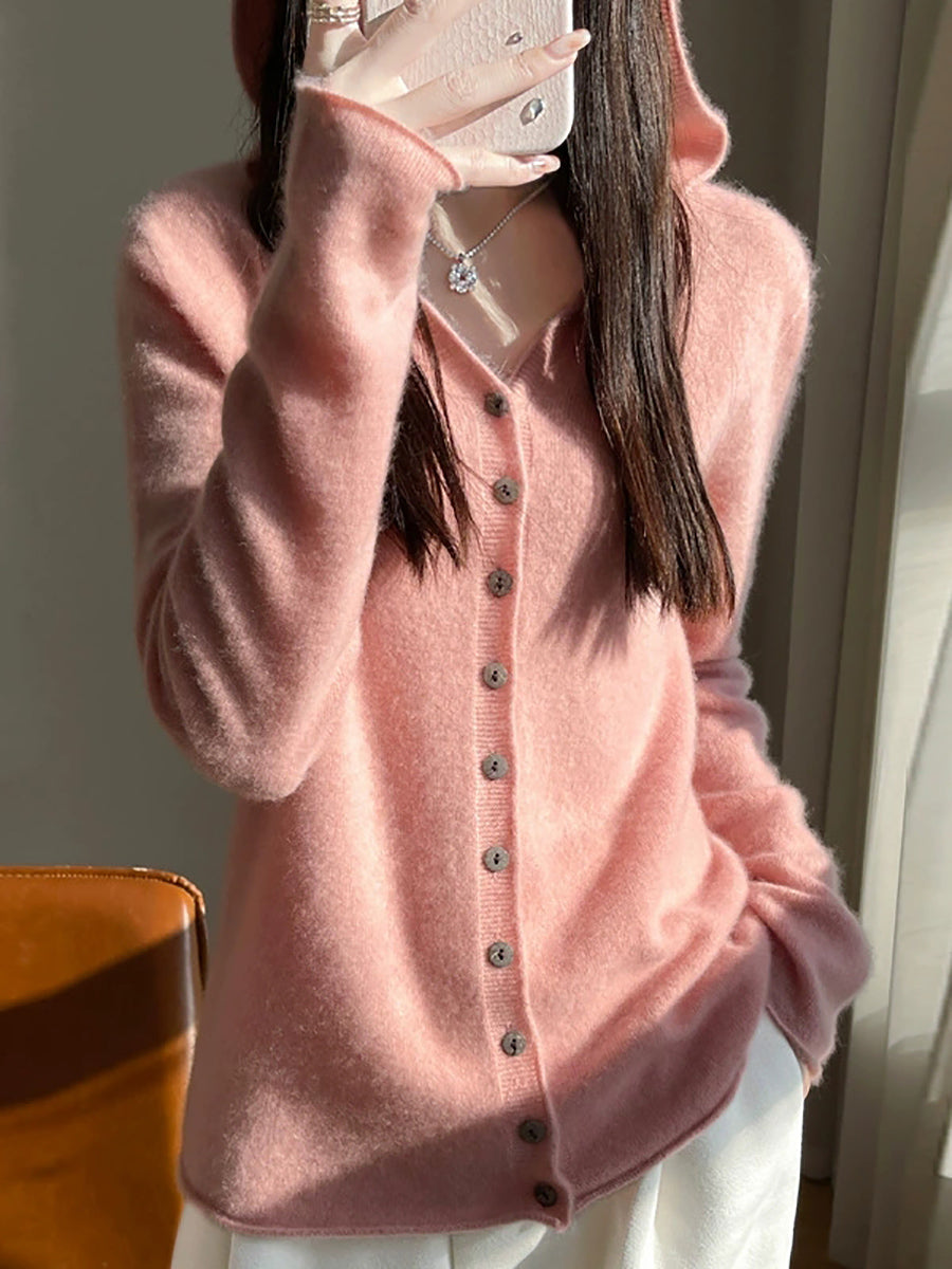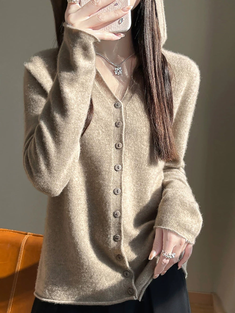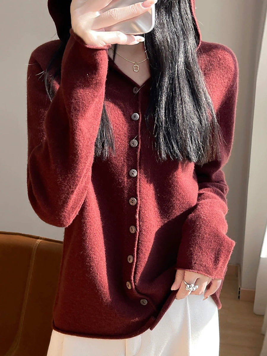 Cardigã feminino com capuz, estilo artístico, em cores puras, para a primavera.