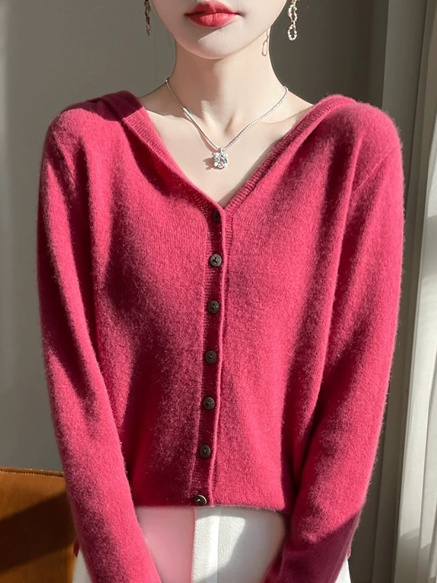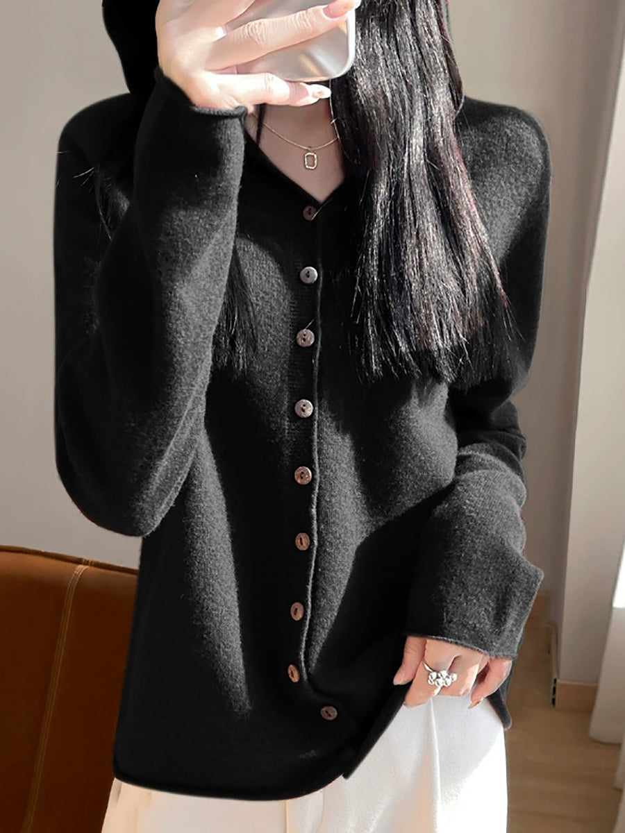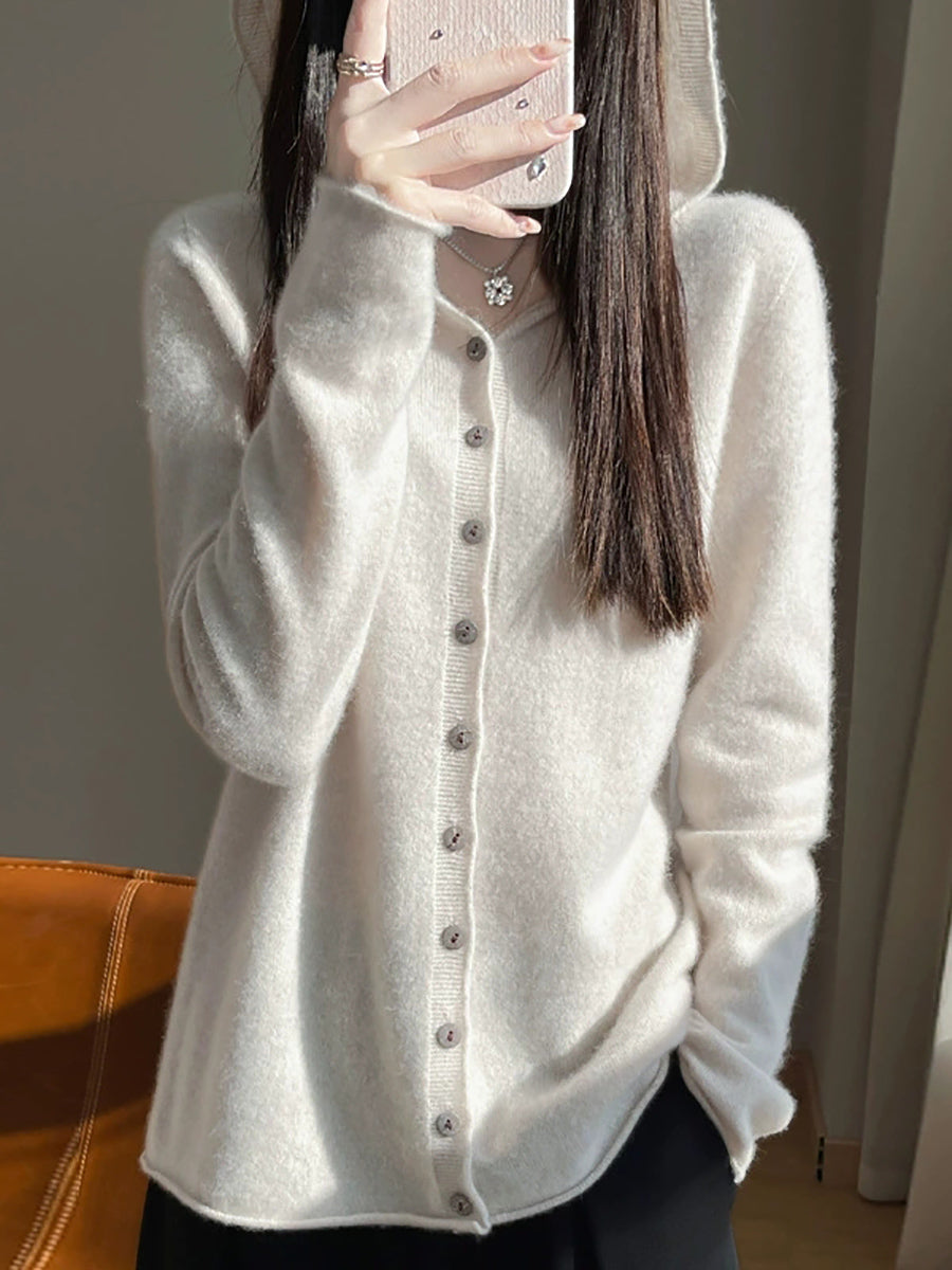 Cardigã feminino com capuz, estilo artístico, em cores puras, para a primavera.