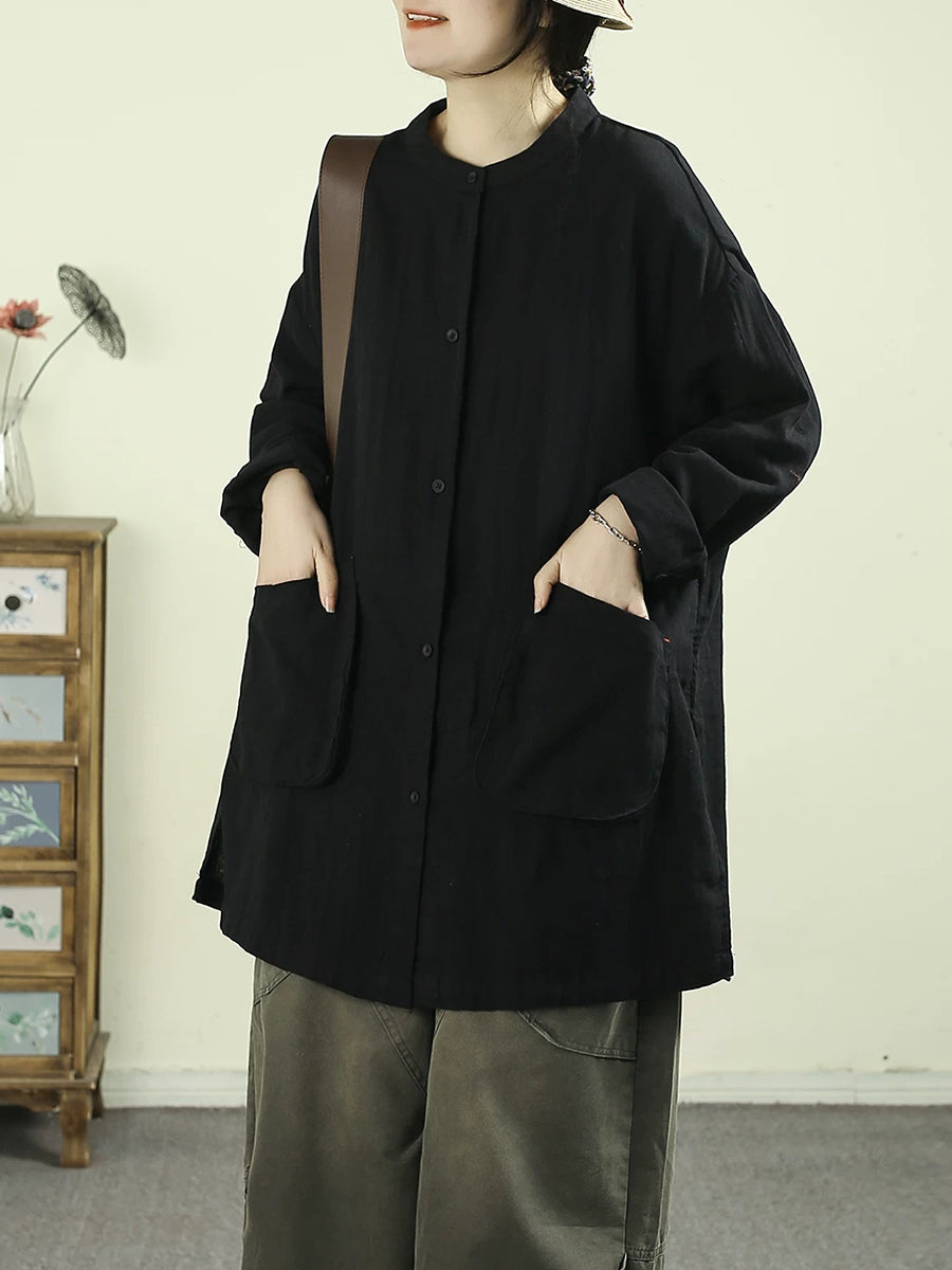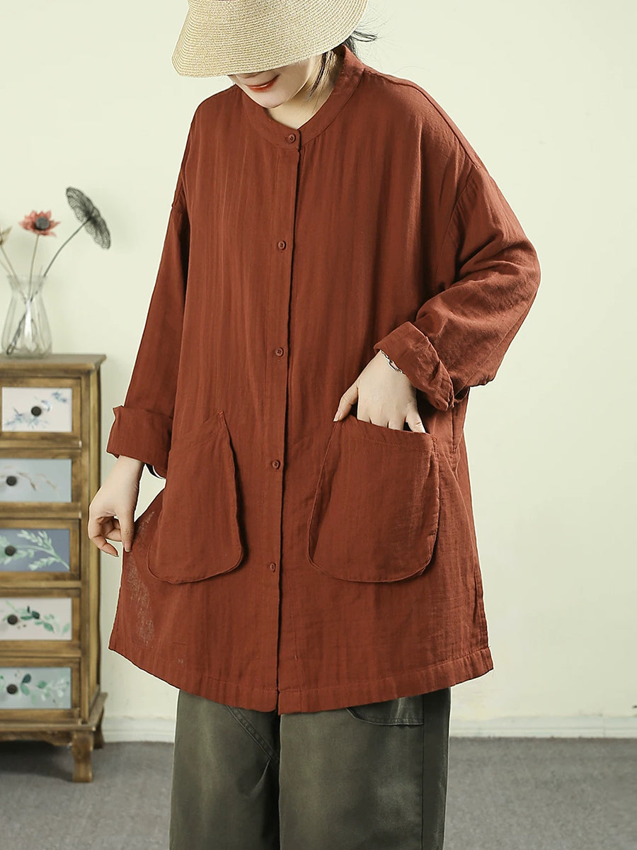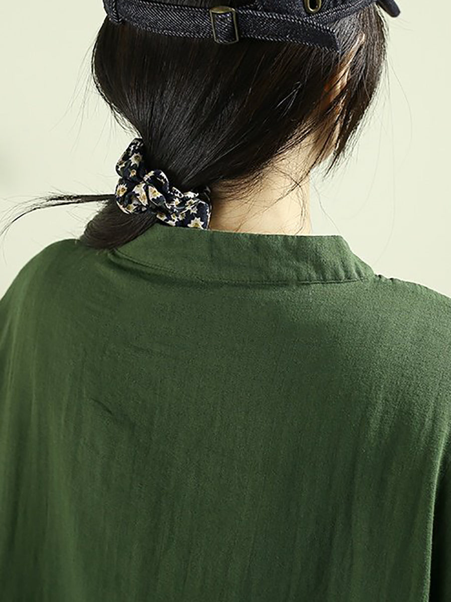 Camisa longa feminina de algodão puro, estilo primavera, com estampa artística.