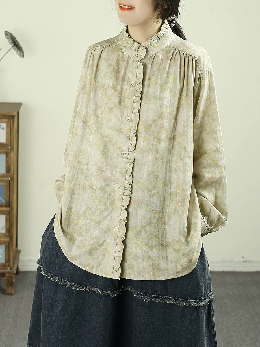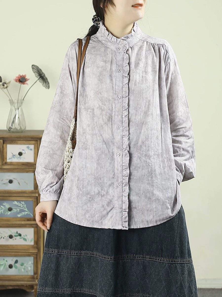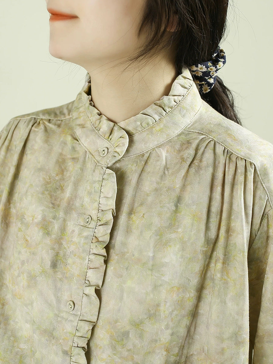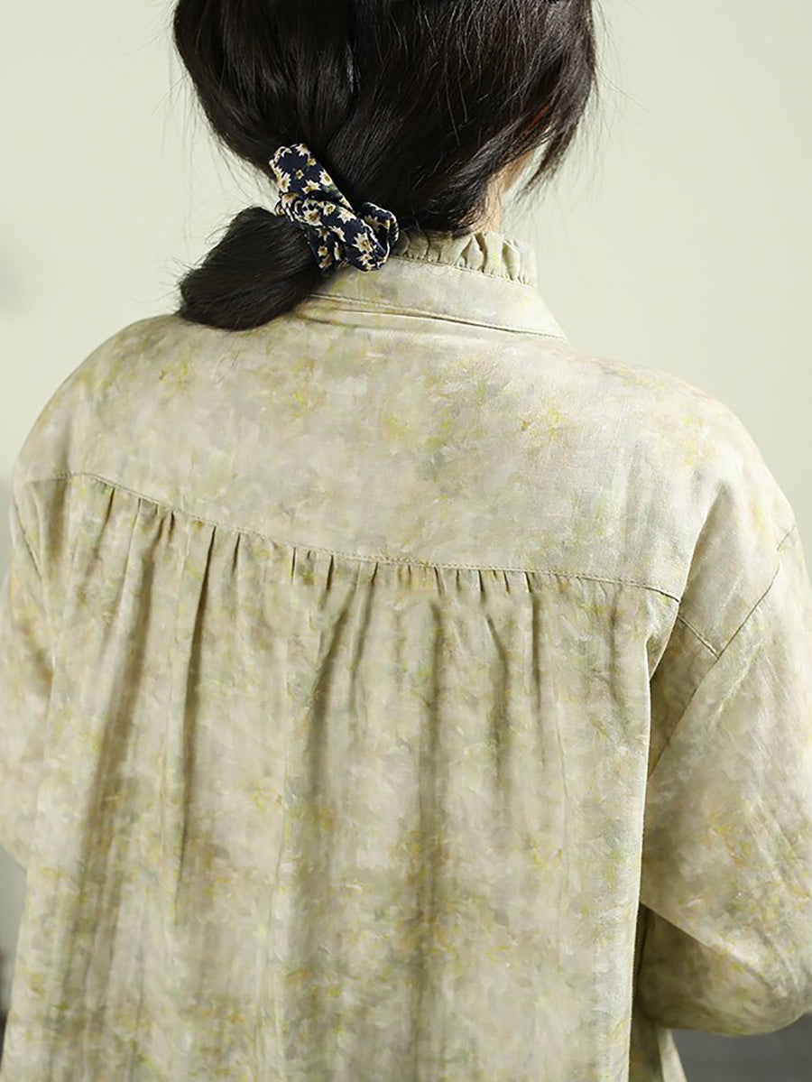 Camisa feminina de algodão 100% com estampa tie-dye artística para a primavera
