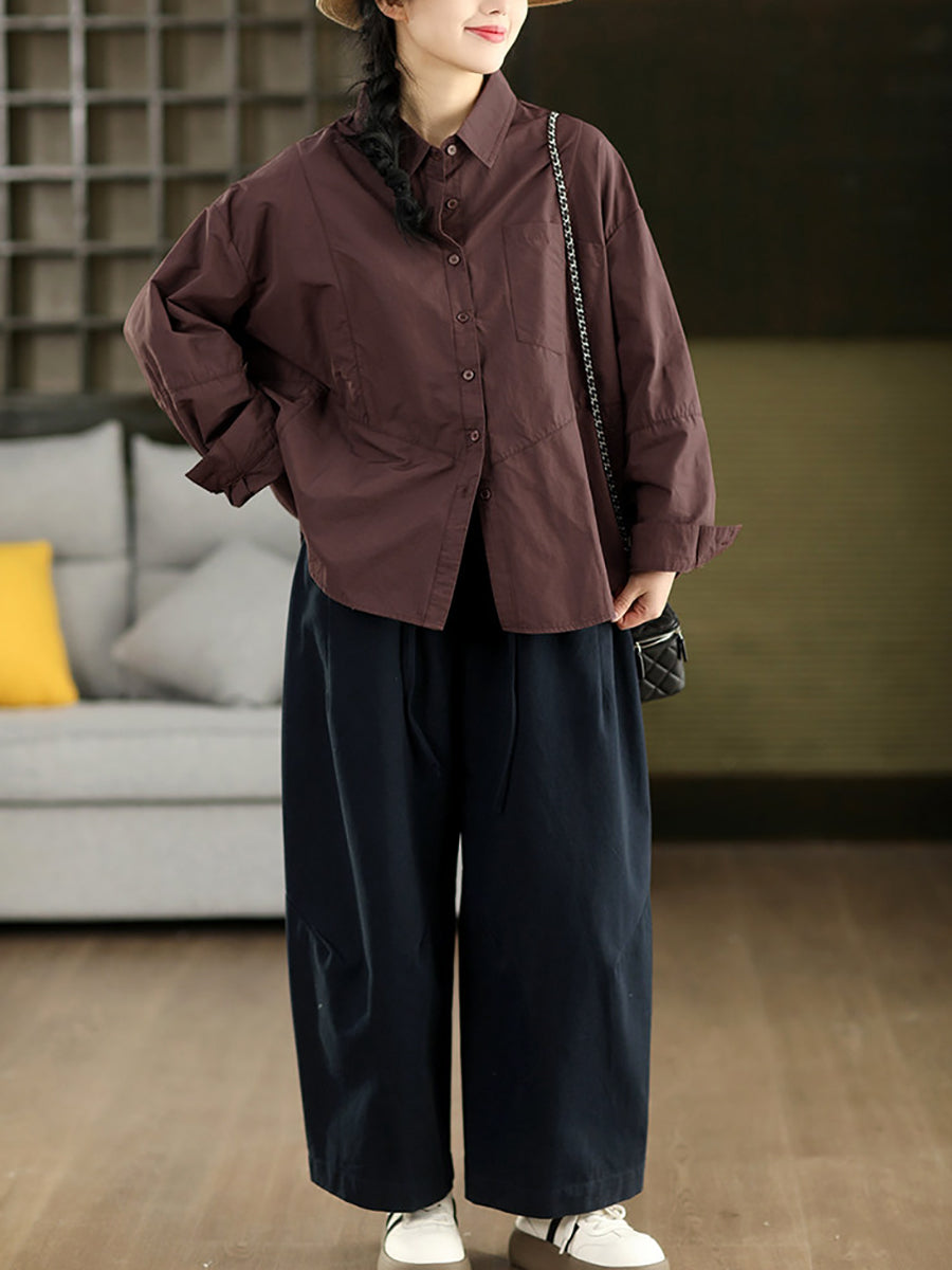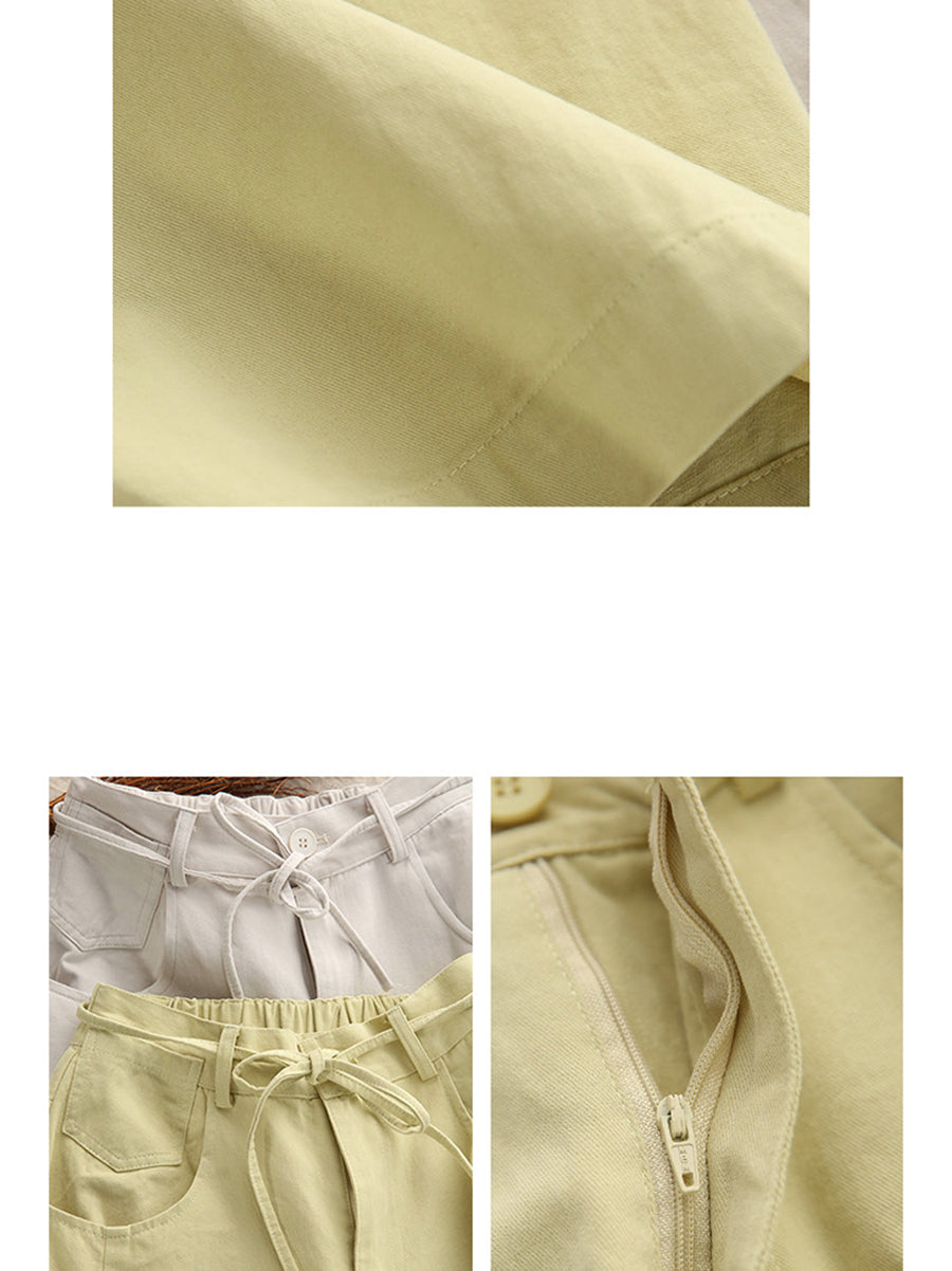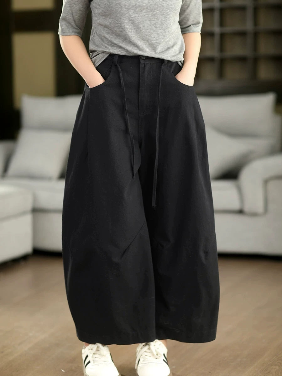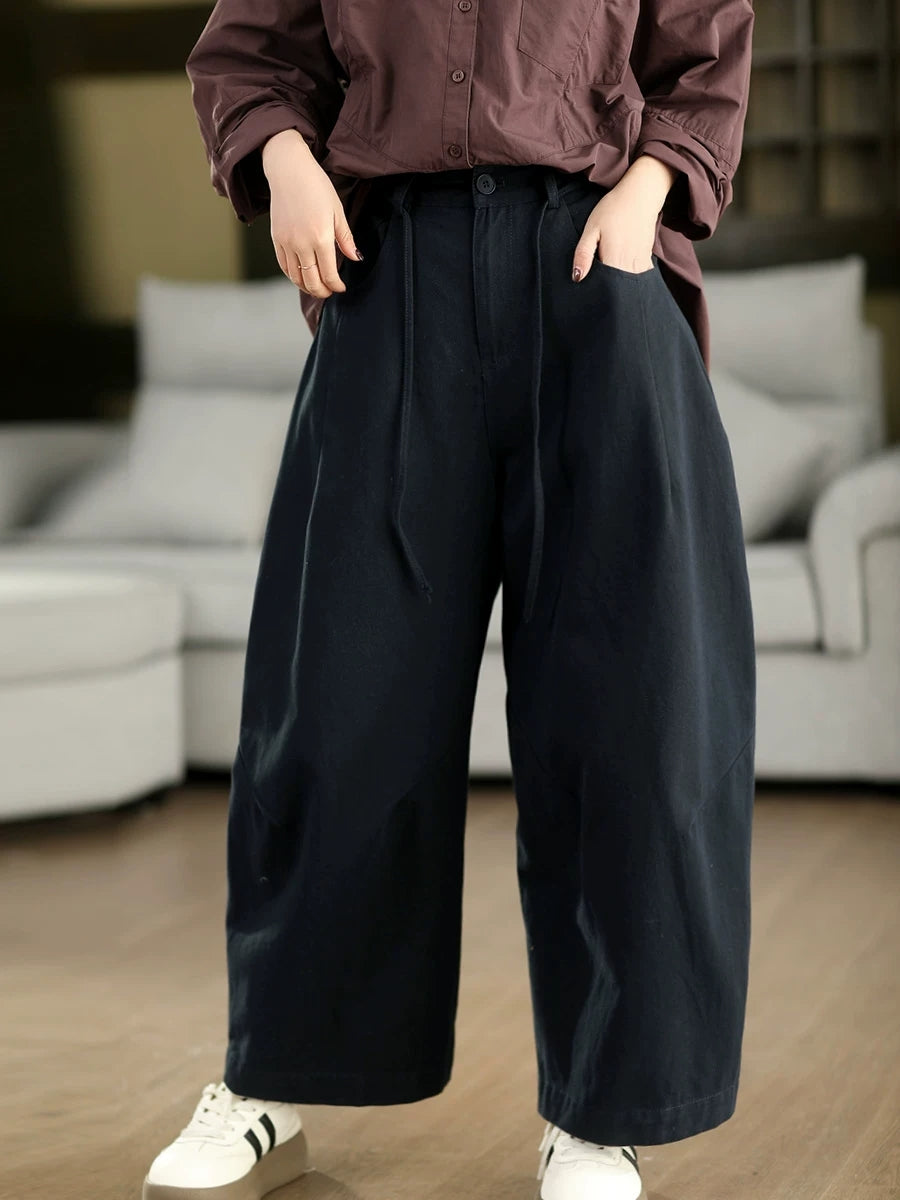Calça feminina casual de primavera, cor lisa, 100% algodão, pernas largas.