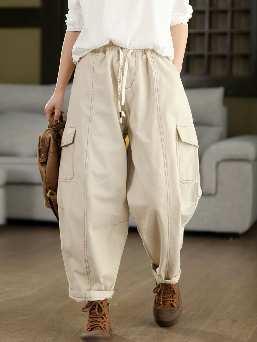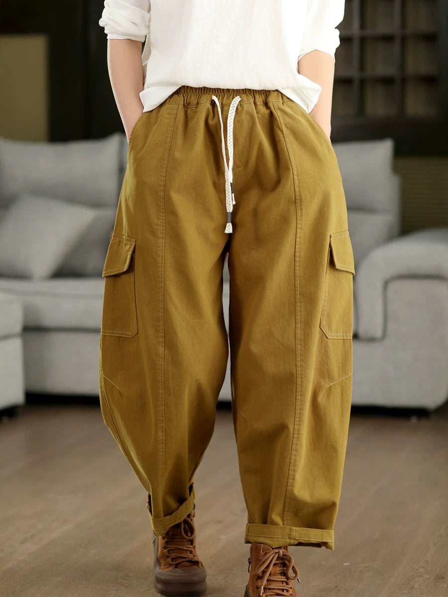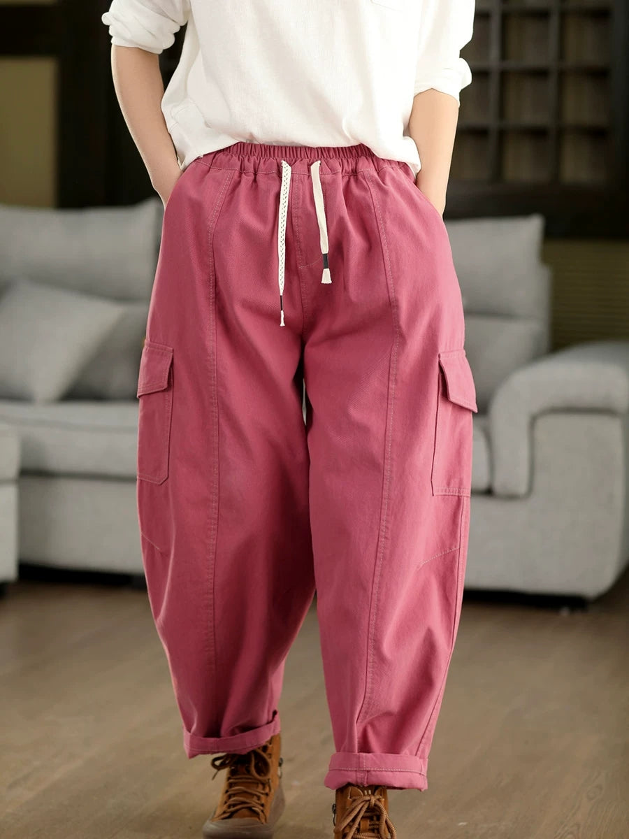 Calça Harem Feminina Casual de Primavera em Algodão Liso