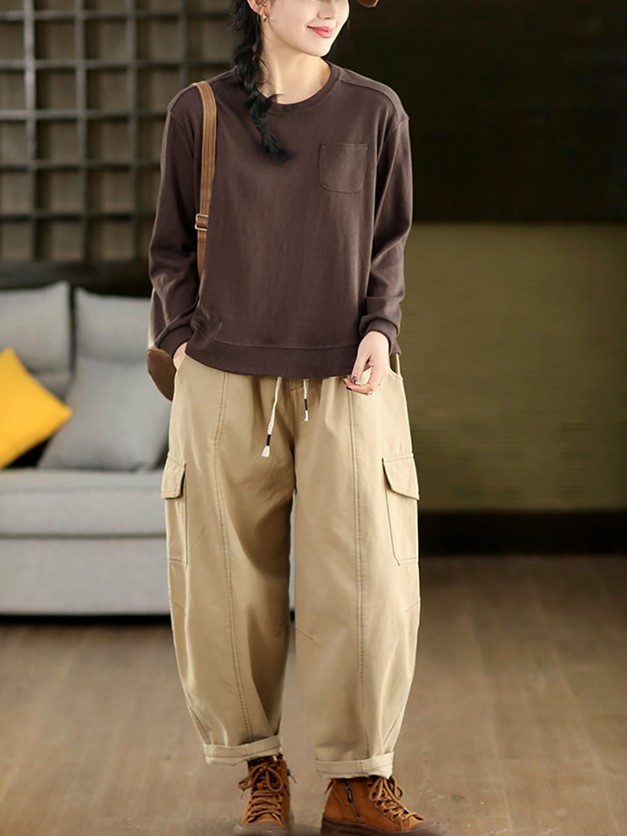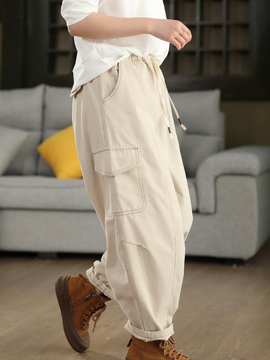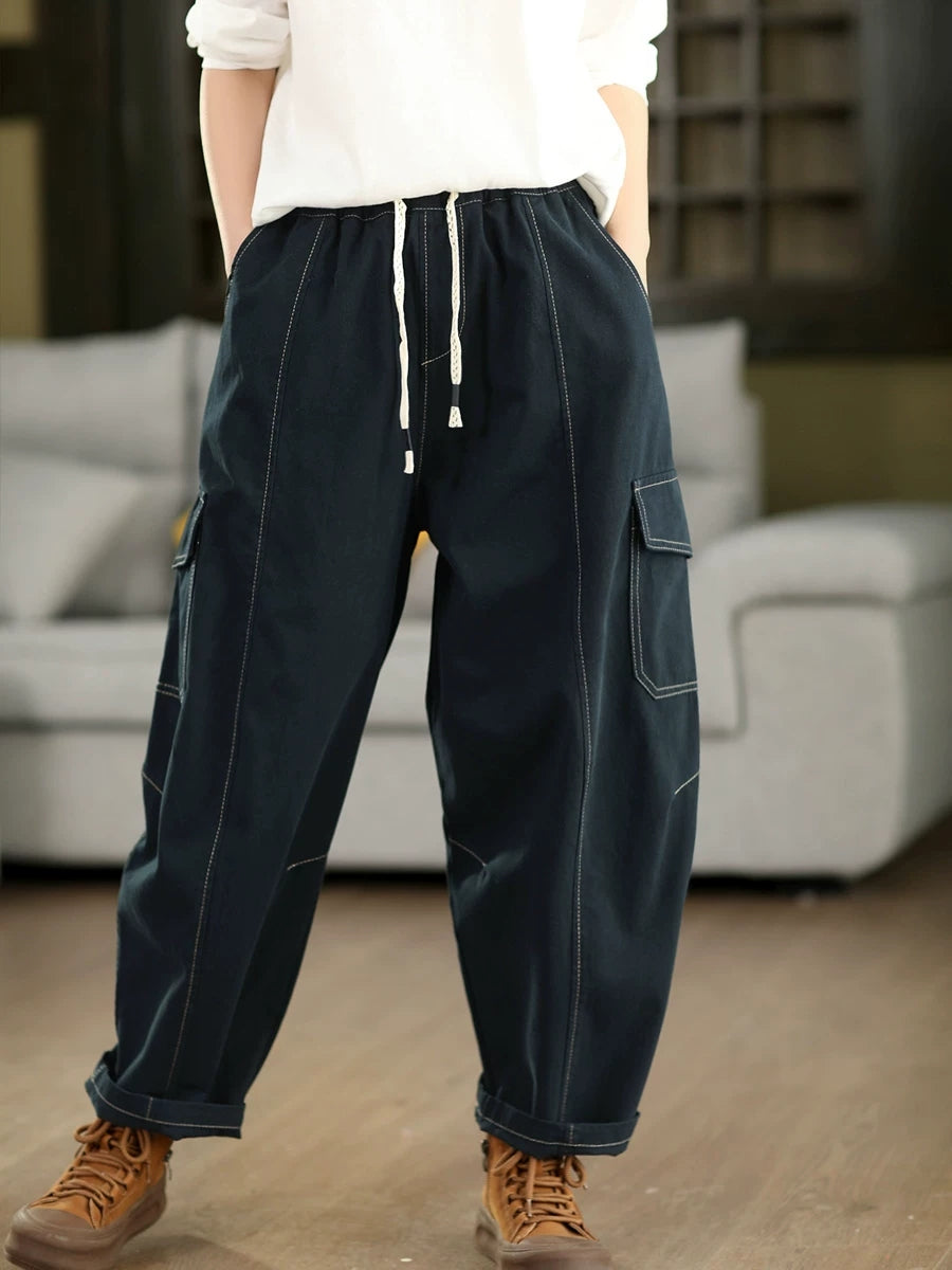 Calça Harem Feminina Casual de Primavera em Algodão Liso