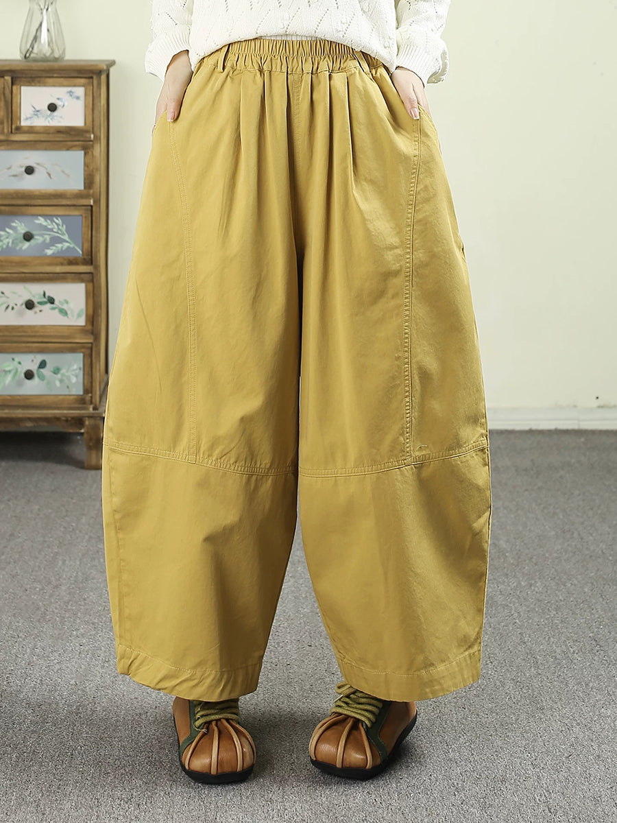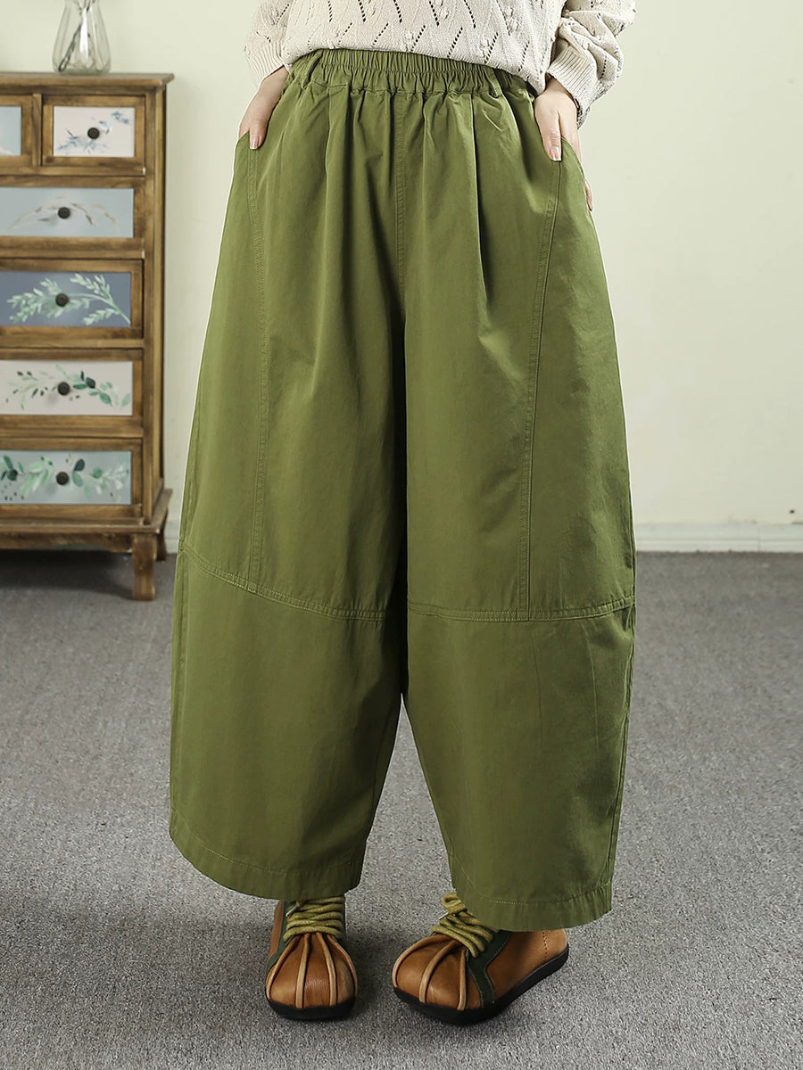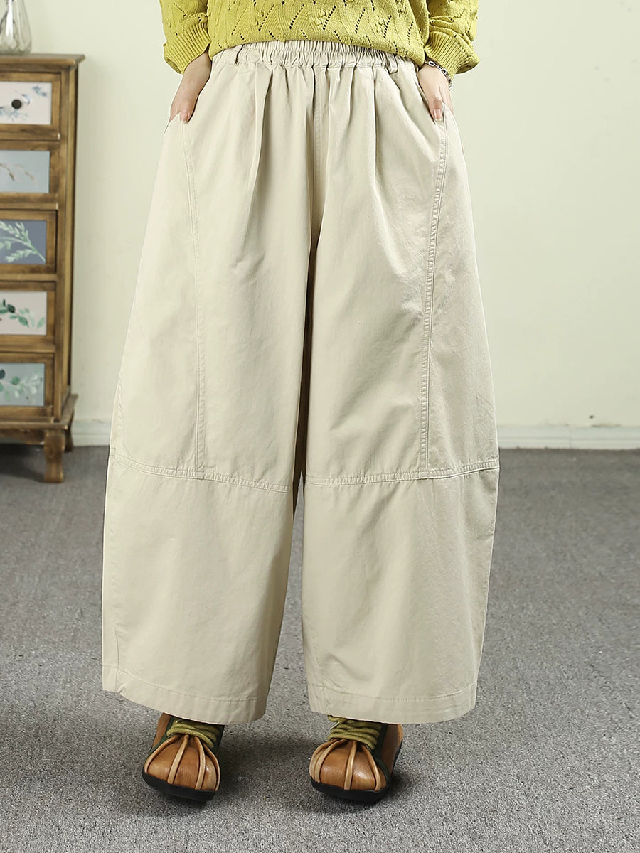 Calça feminina casual de primavera, em algodão liso, com pernas largas.